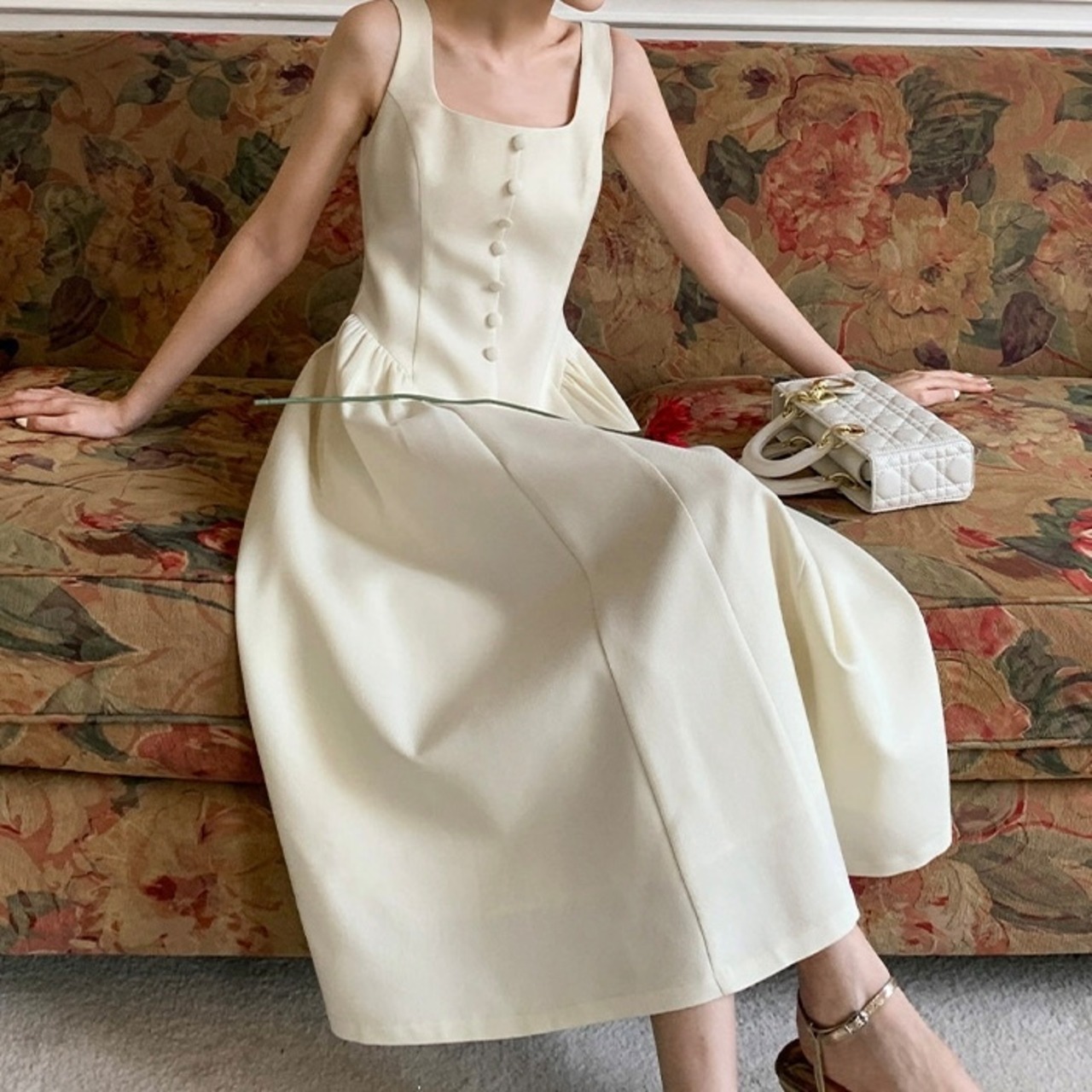 スクエアネックサイドフレアワンピース