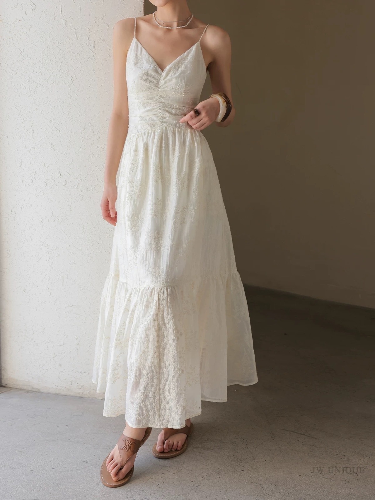 Vネックシャーリングフラワーキャミワンピース