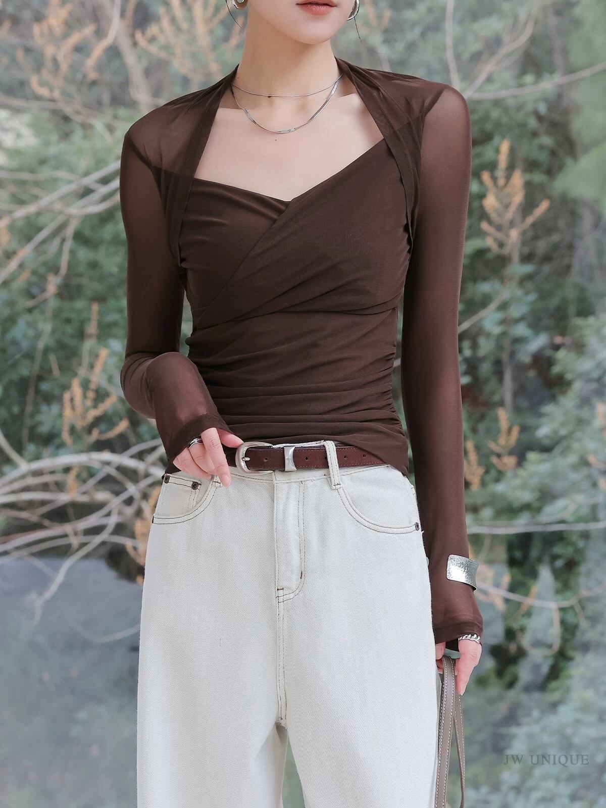 ダイヤモンドネックシースルートップス