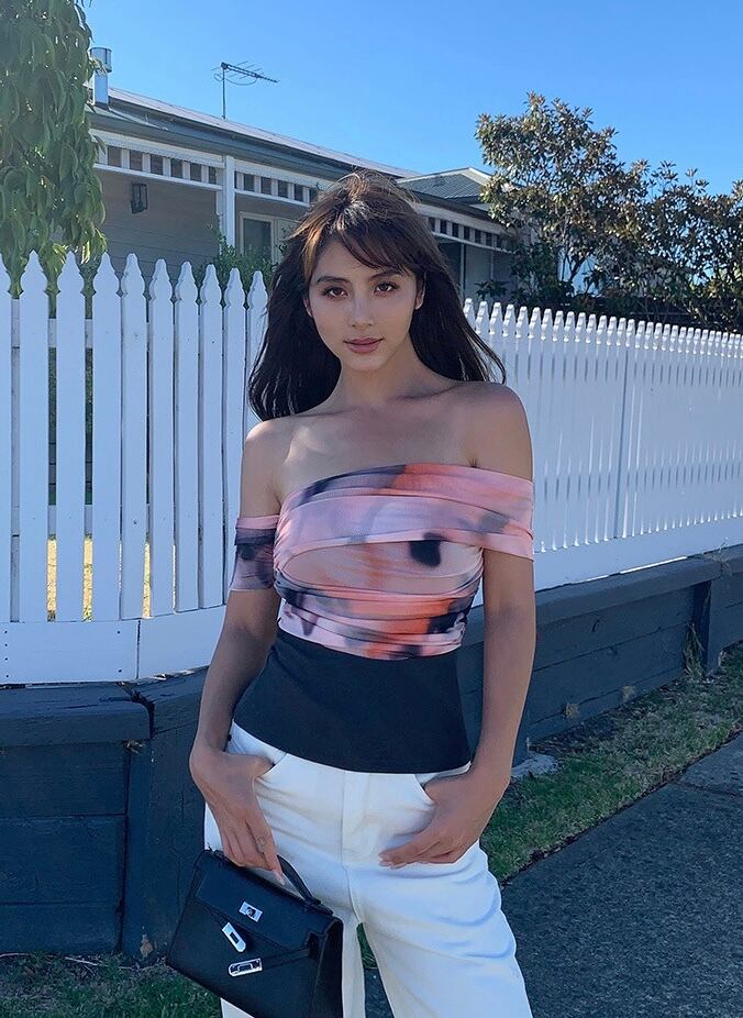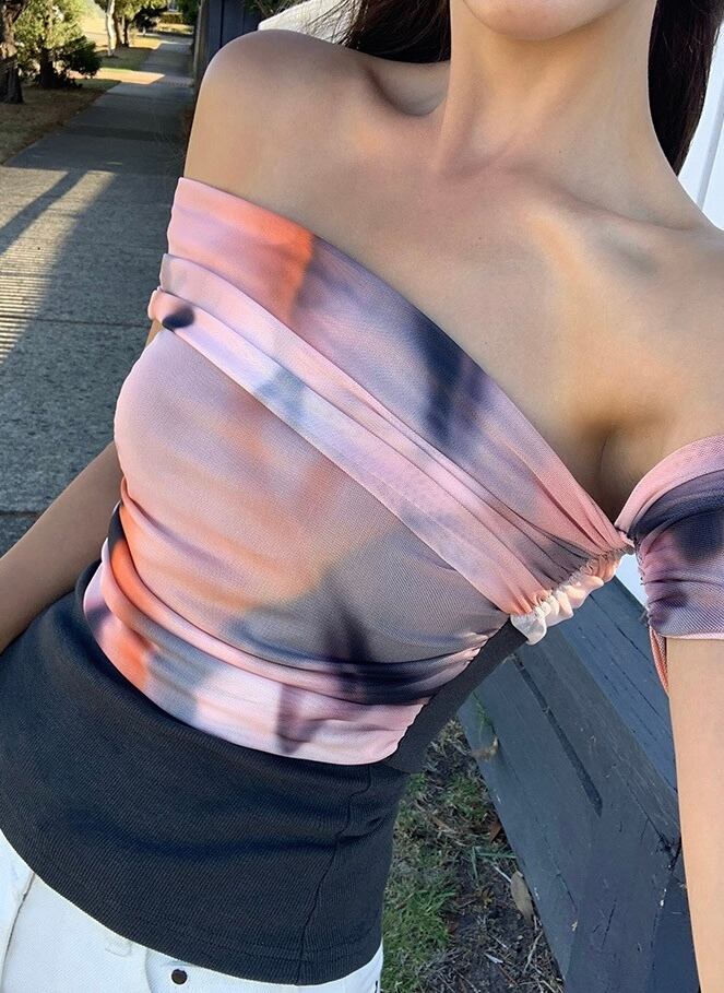 アシメトリーミニ丈トップス