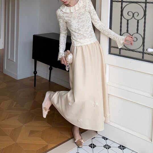 レーシーフラワーフリルトップス