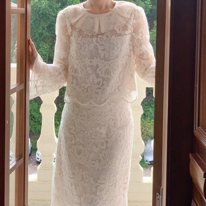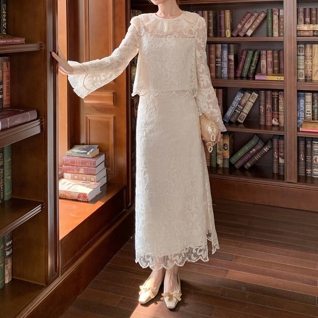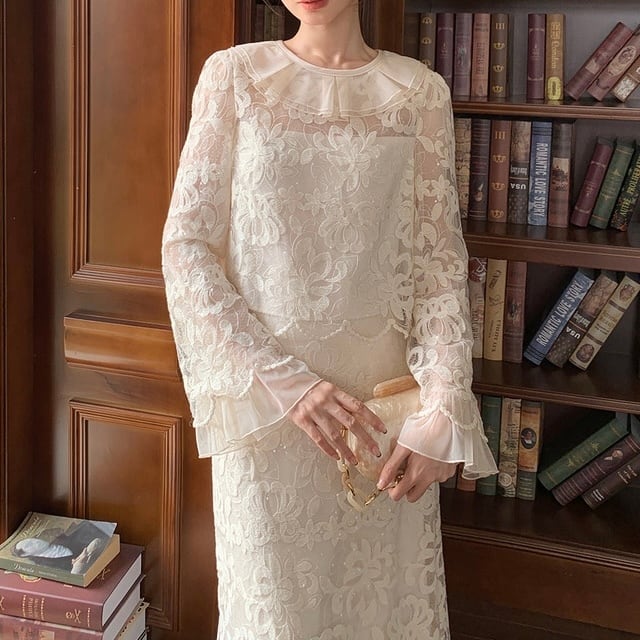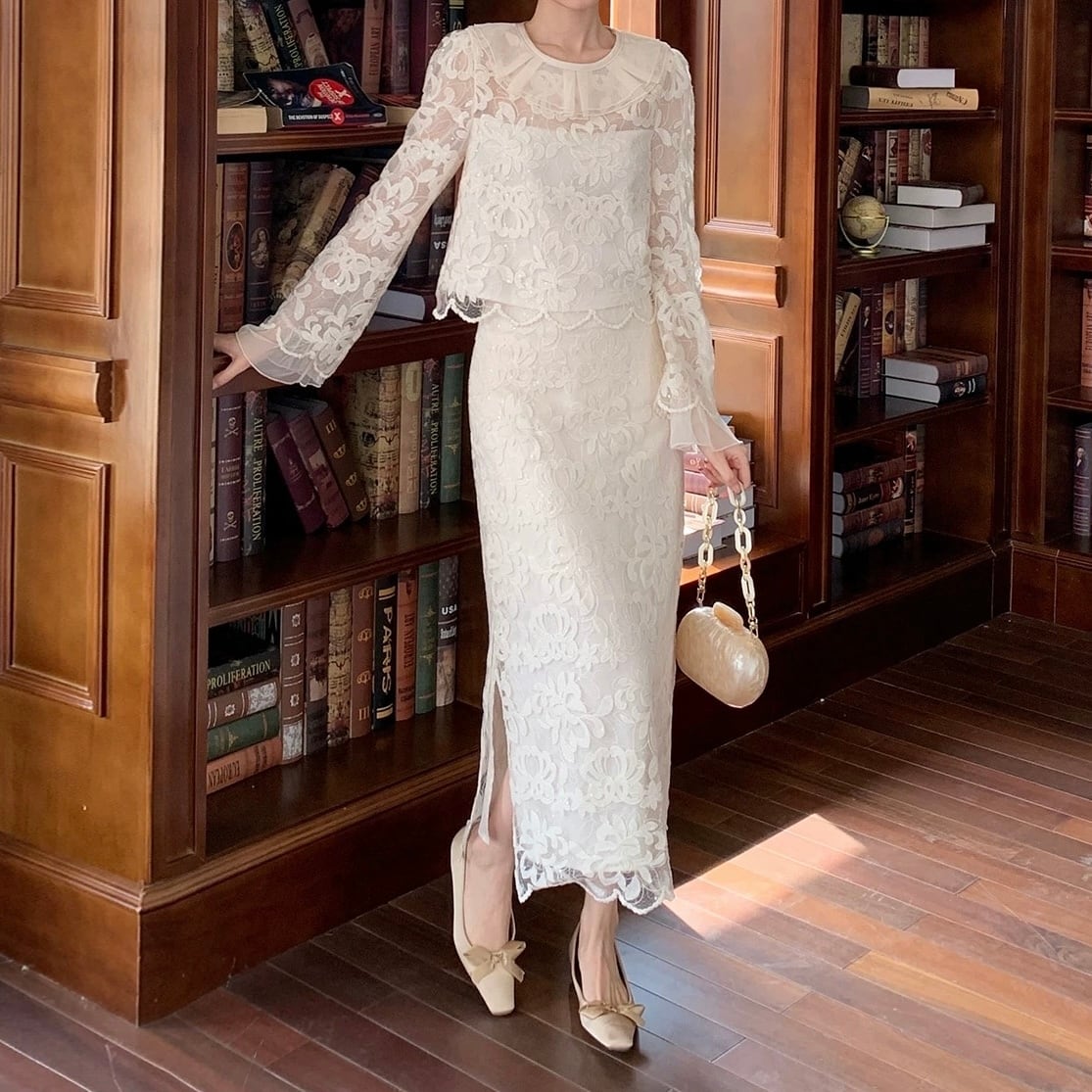 レースフリルスリットスカートセットアップ