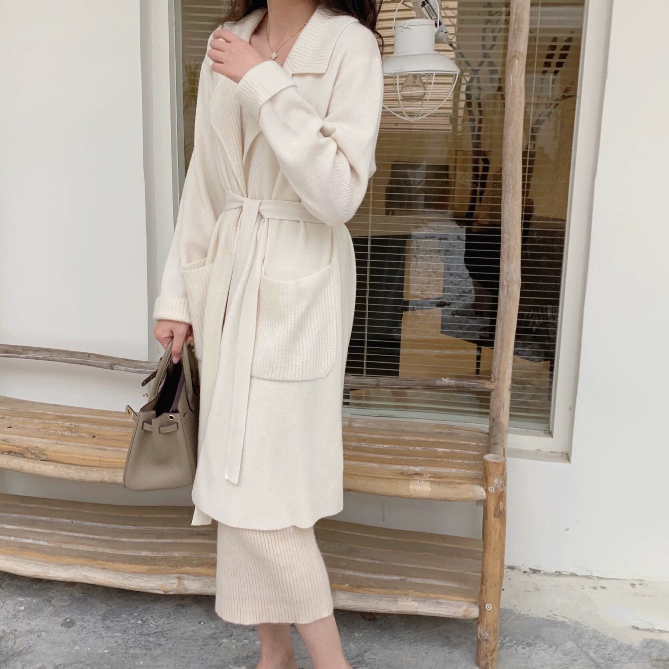 ベルテッドテーラードニットカーディガン