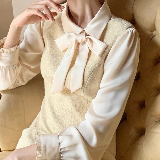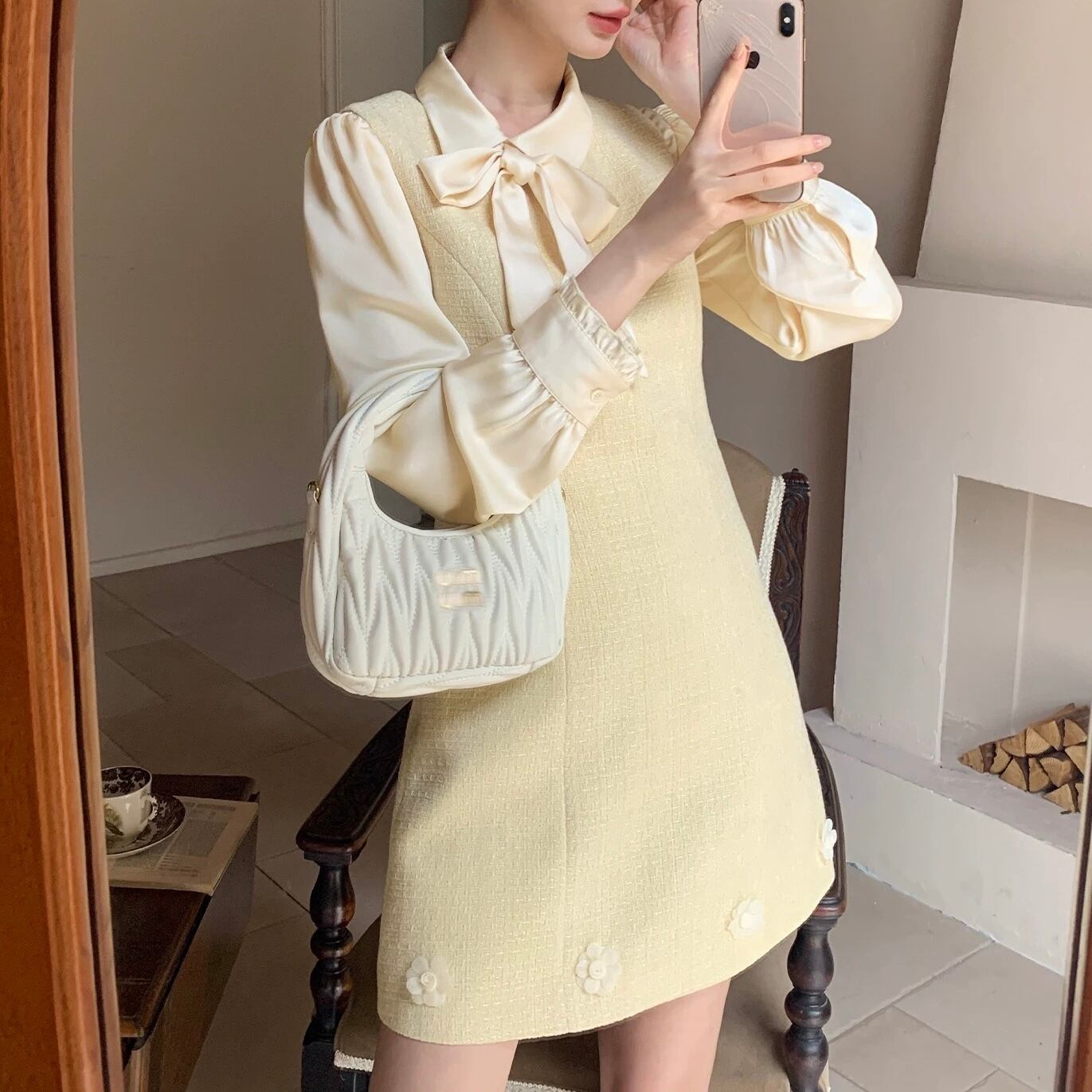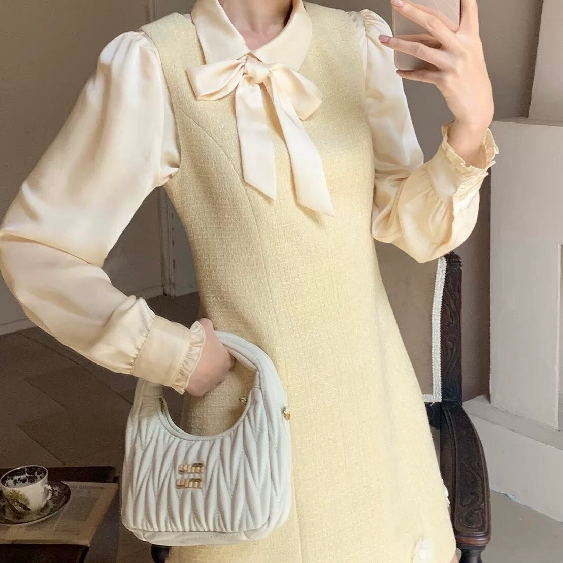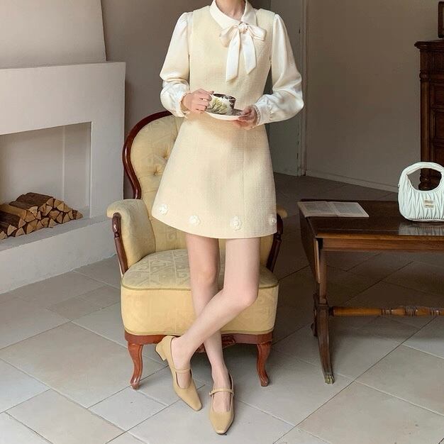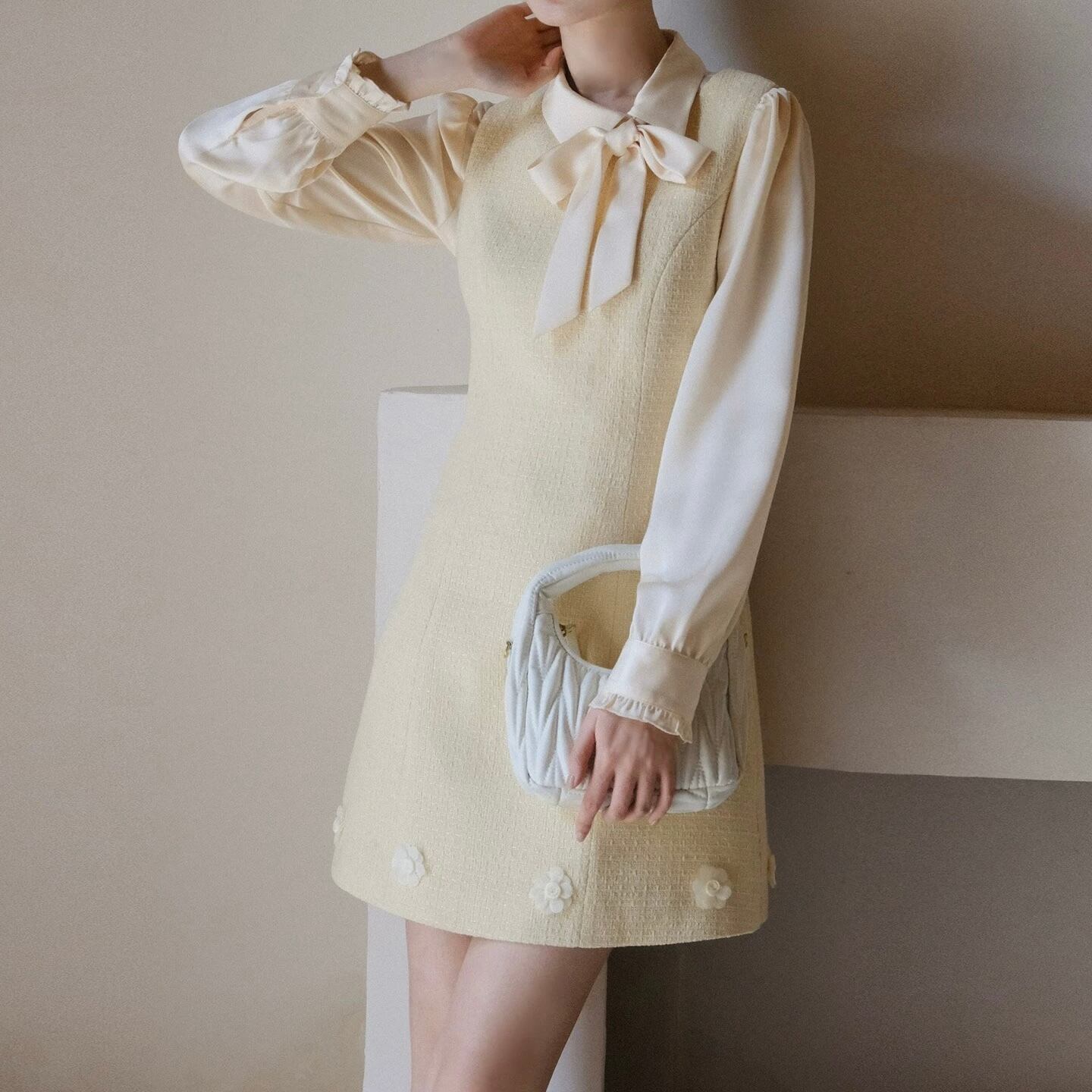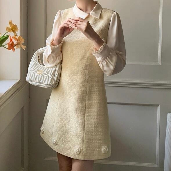 イエローフラワーツイードワンピース
