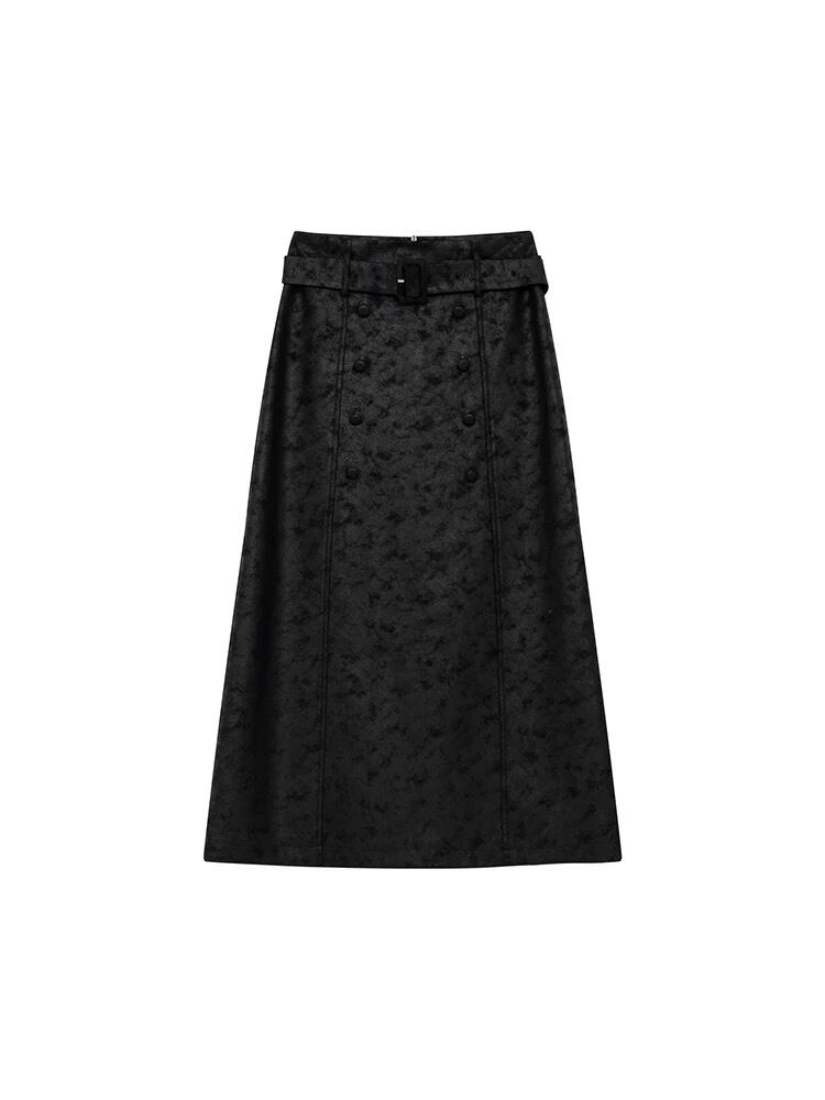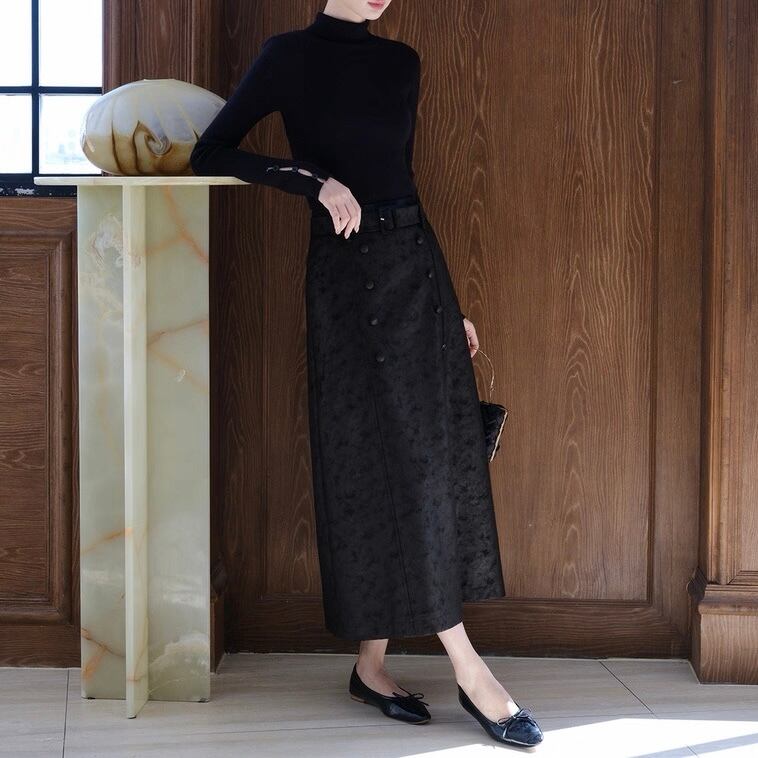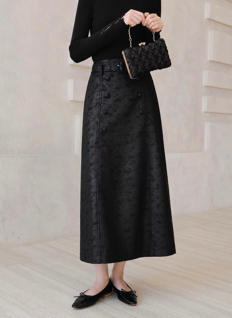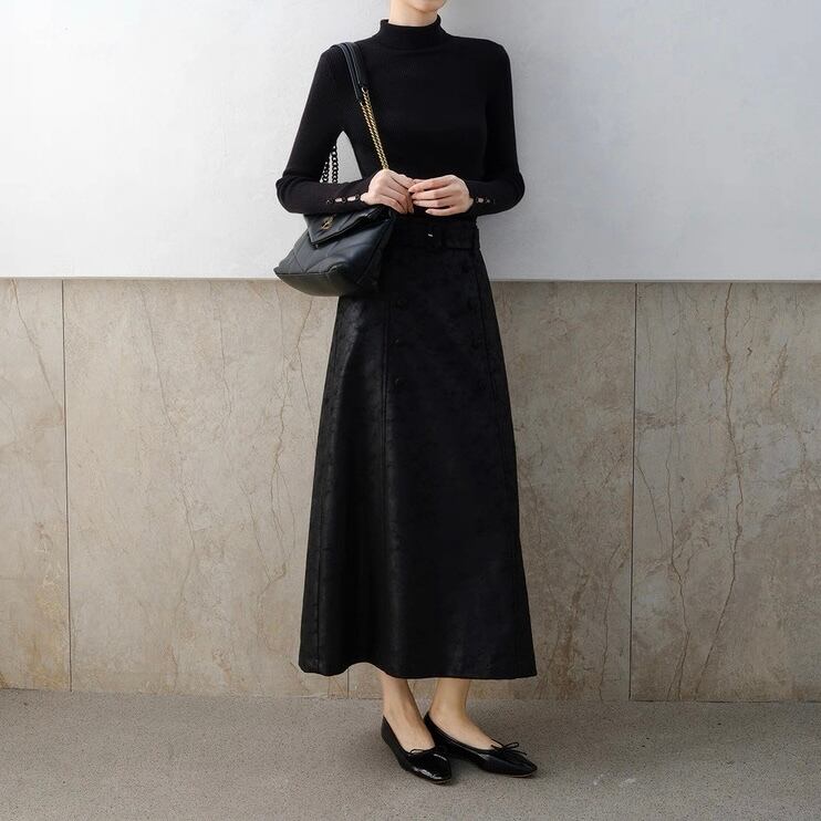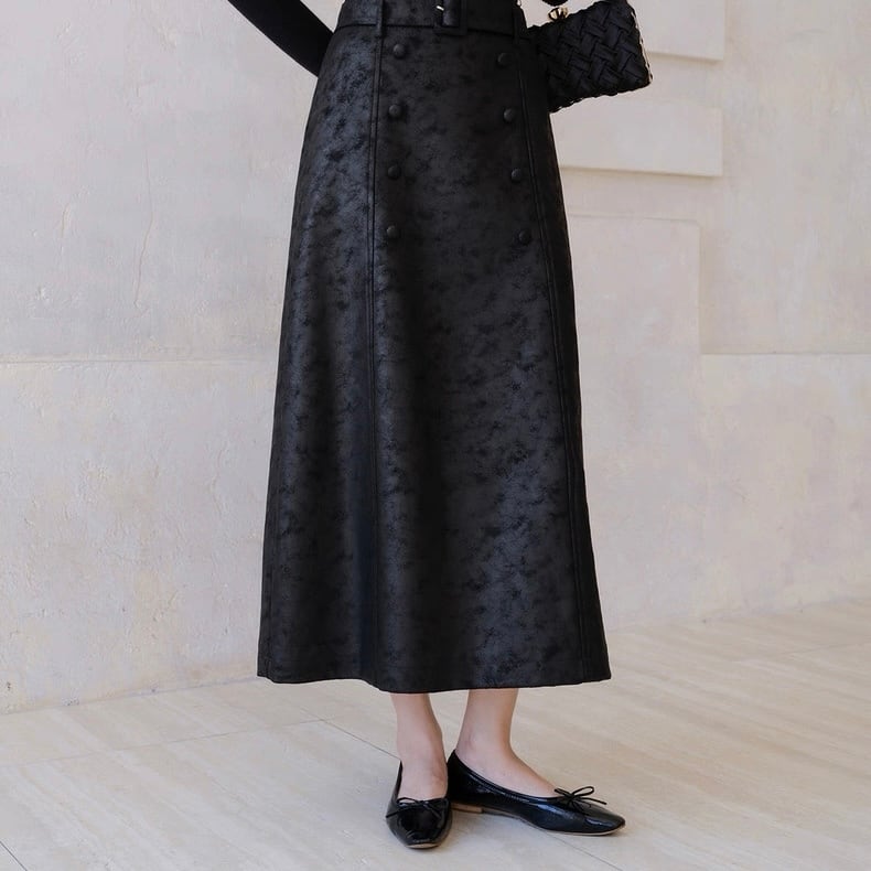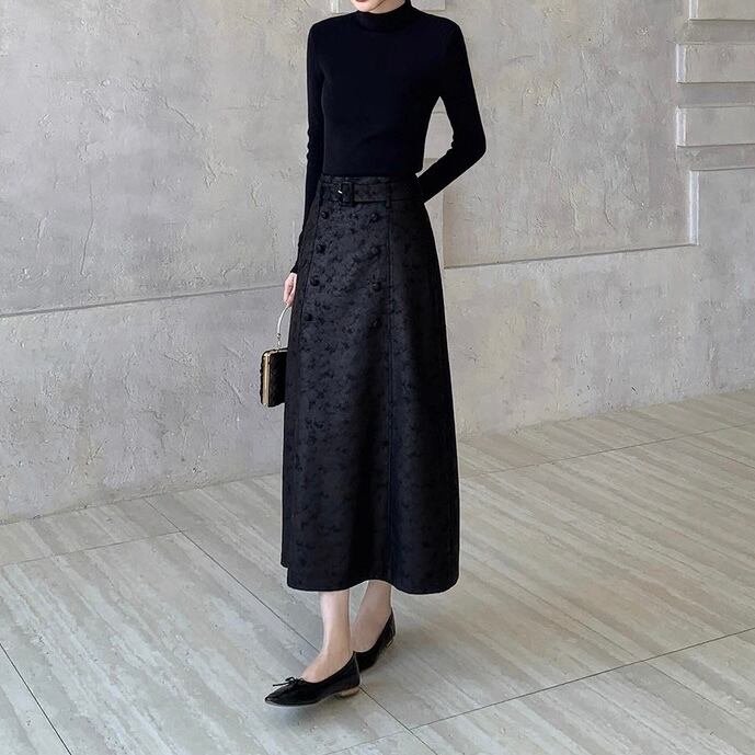 ベルト付きパターンブラックロングスカート