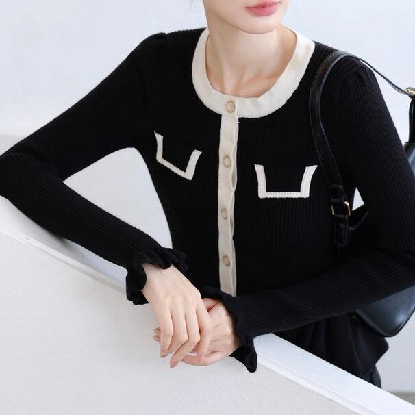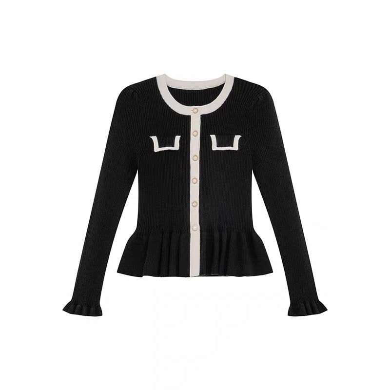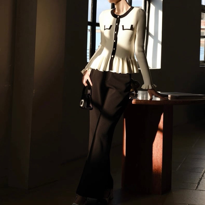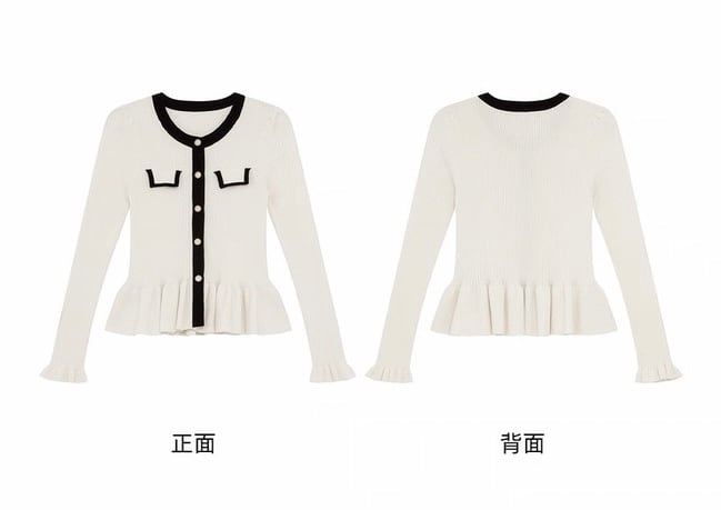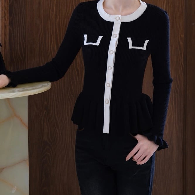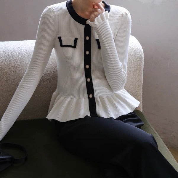 バイカラーラインペプラムニットトップス