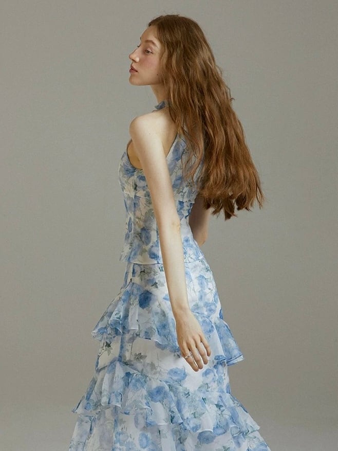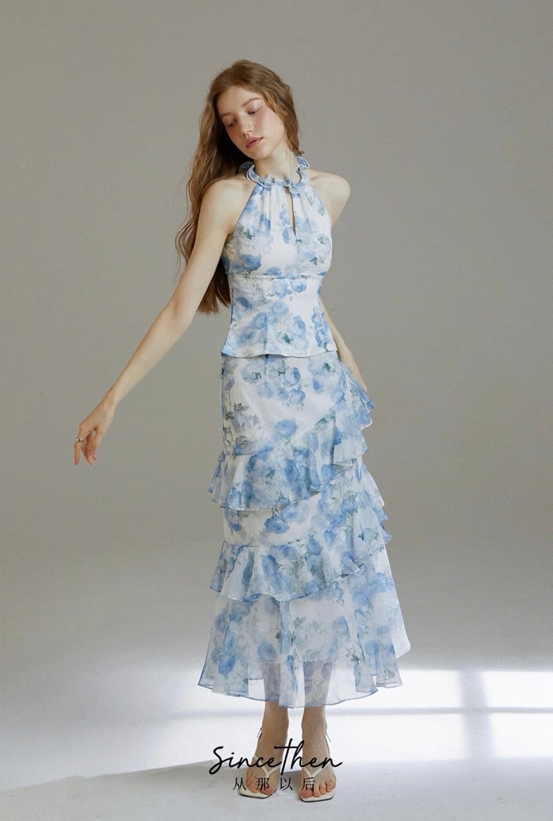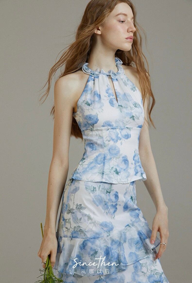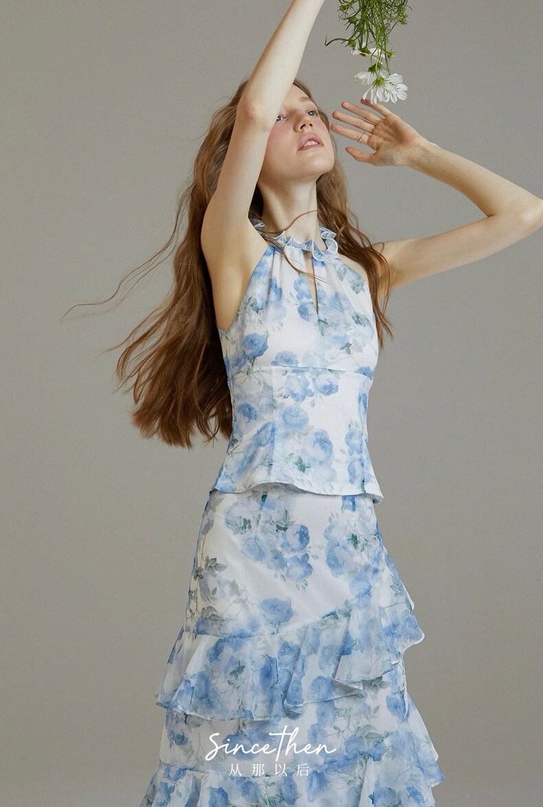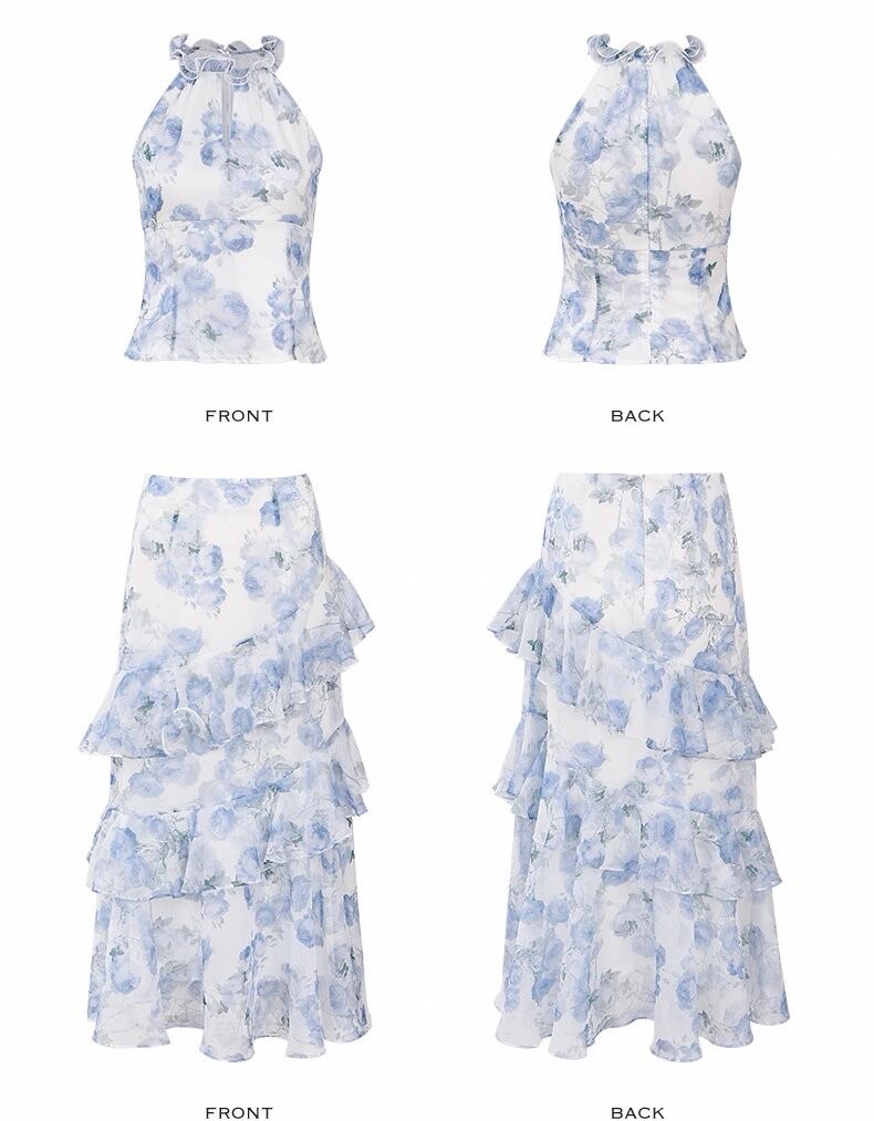【Mのみ】ホルターネックフラワースカートセットアップ