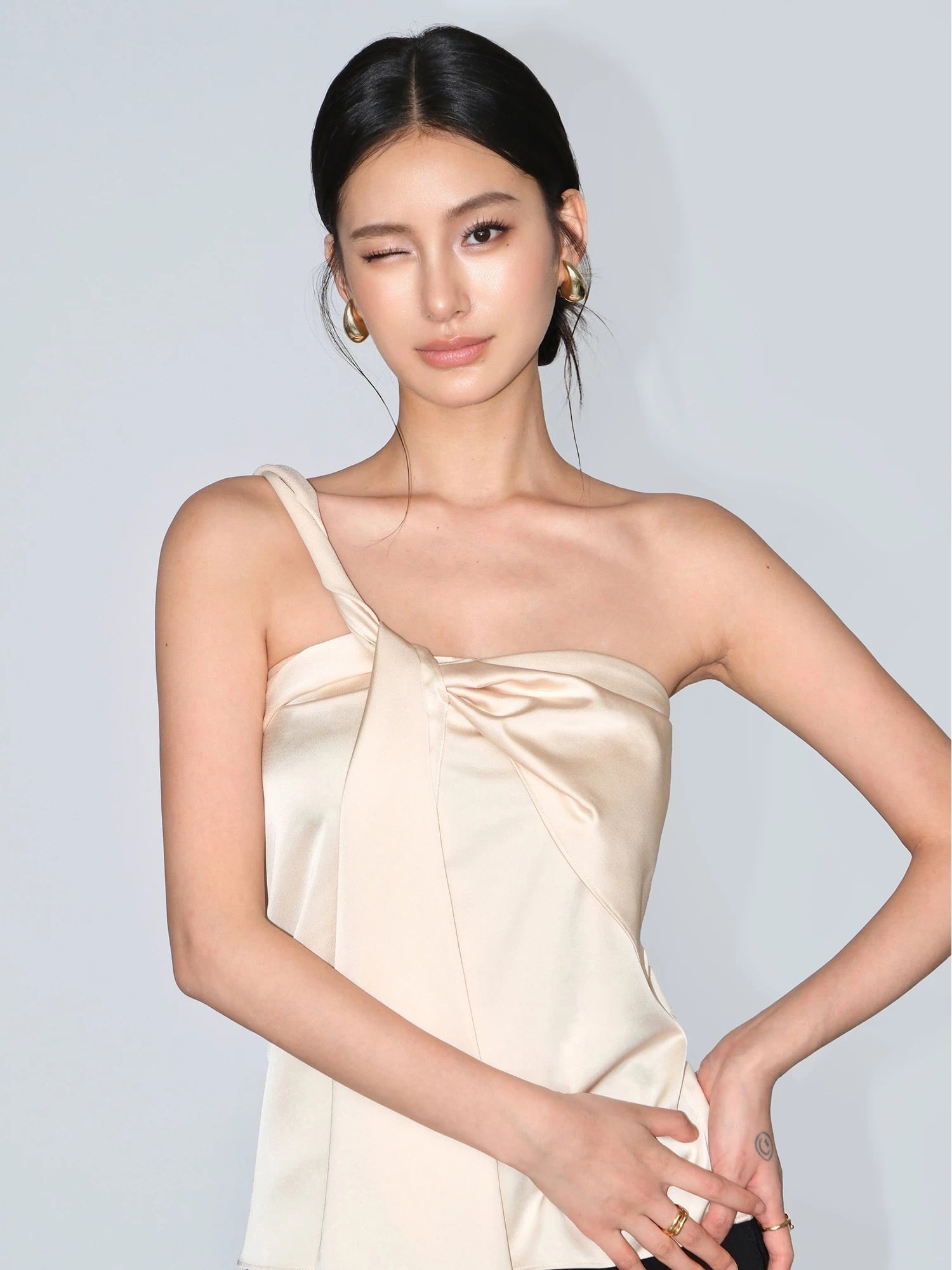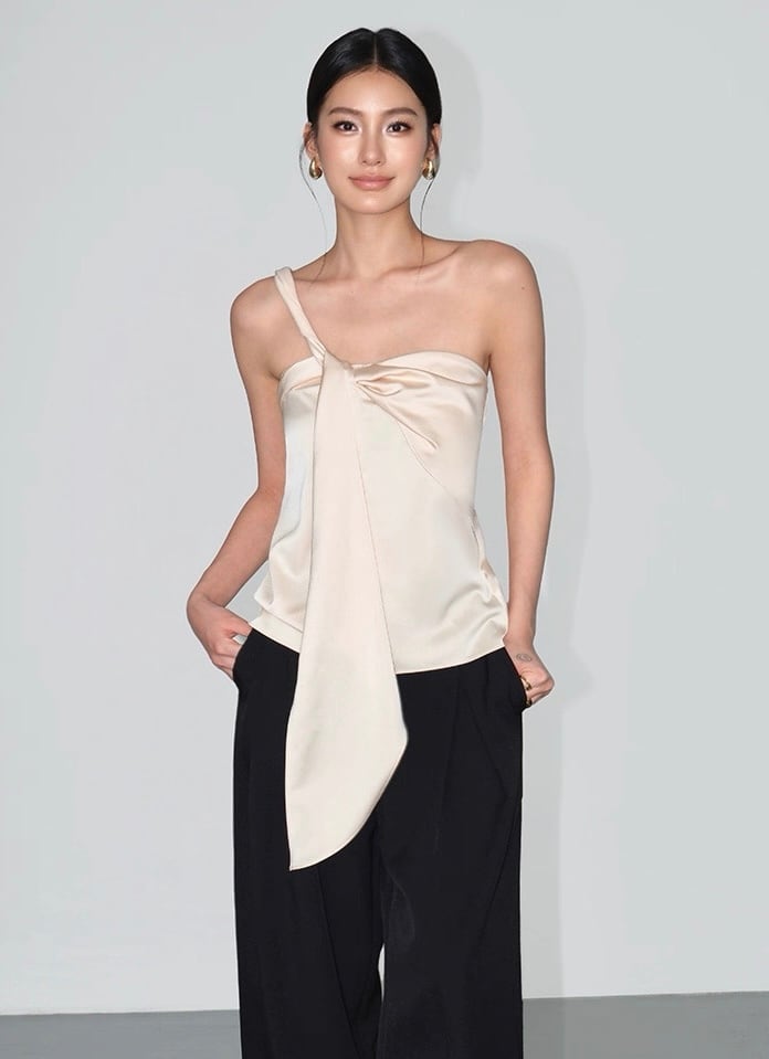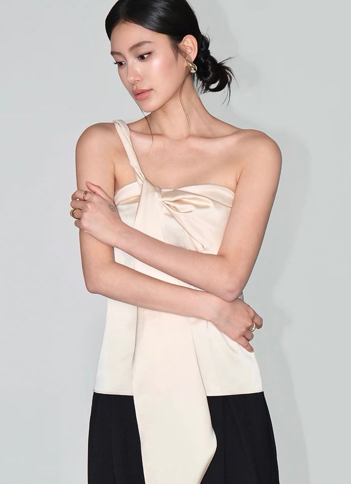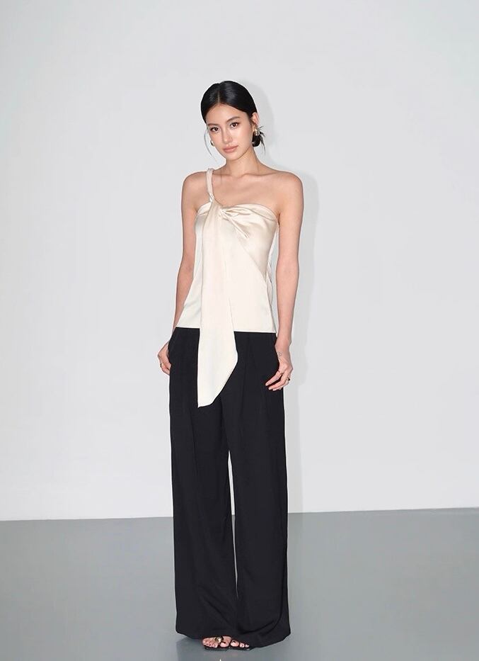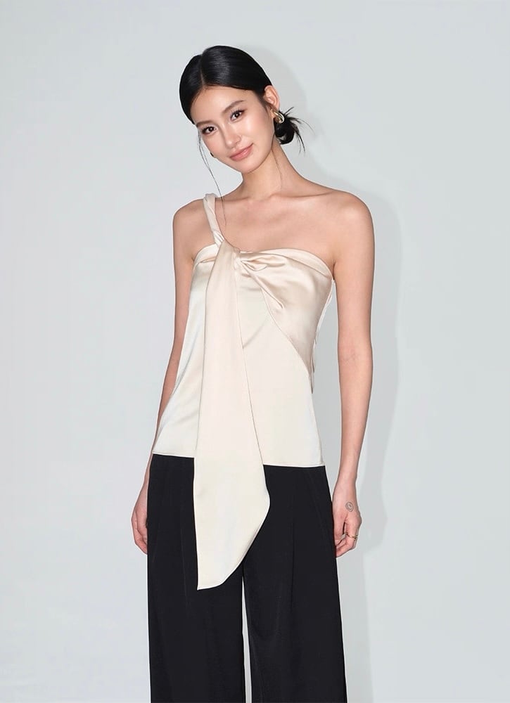 【Blackのみ】ワンショルダーボウタイトップス