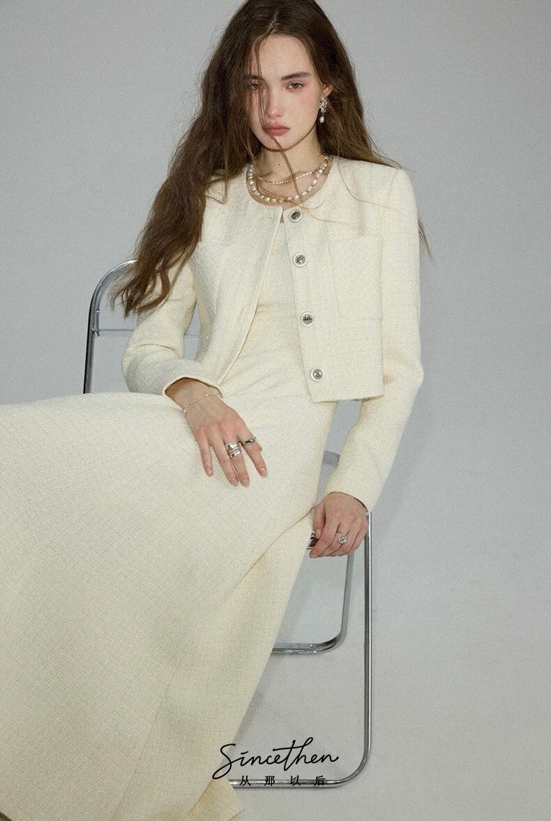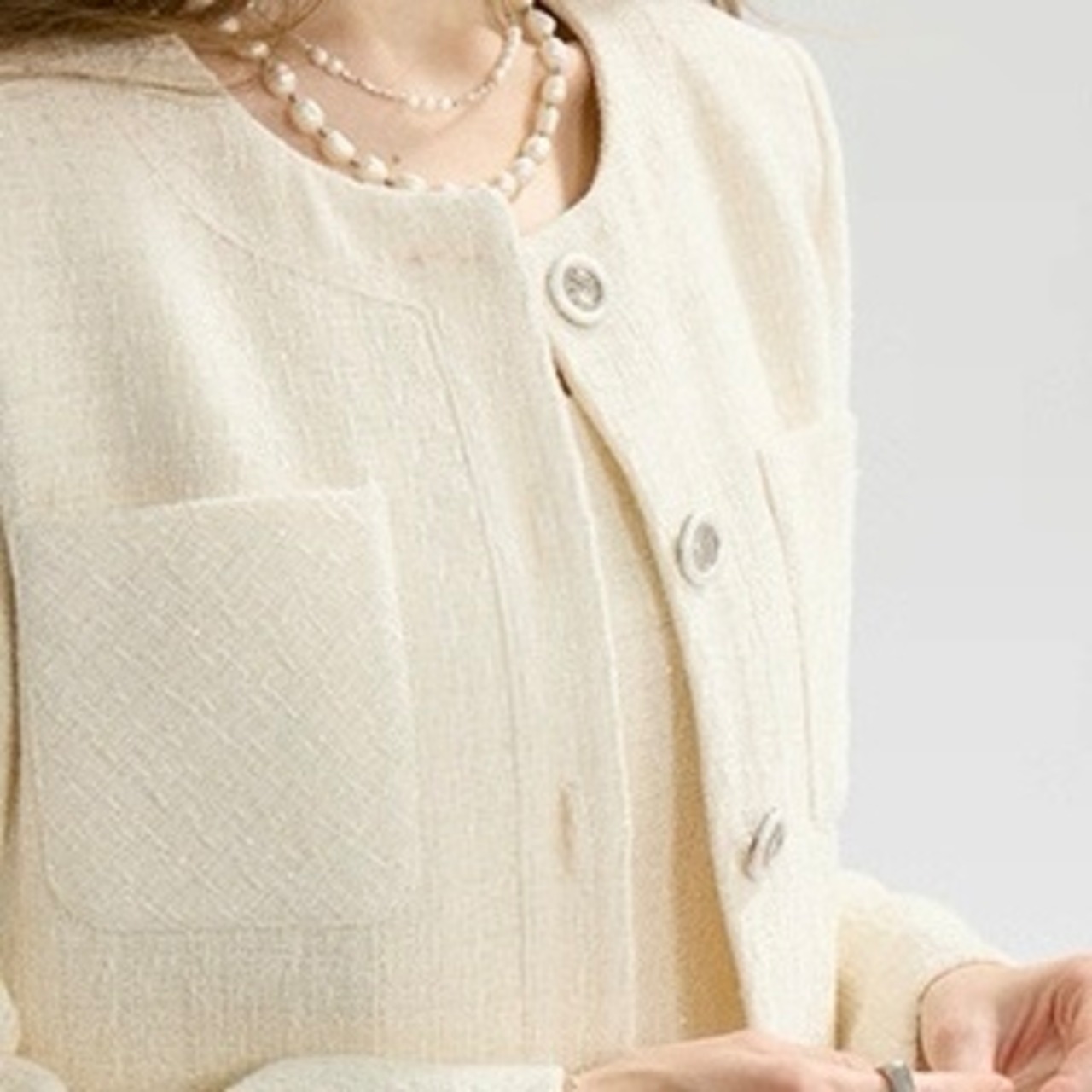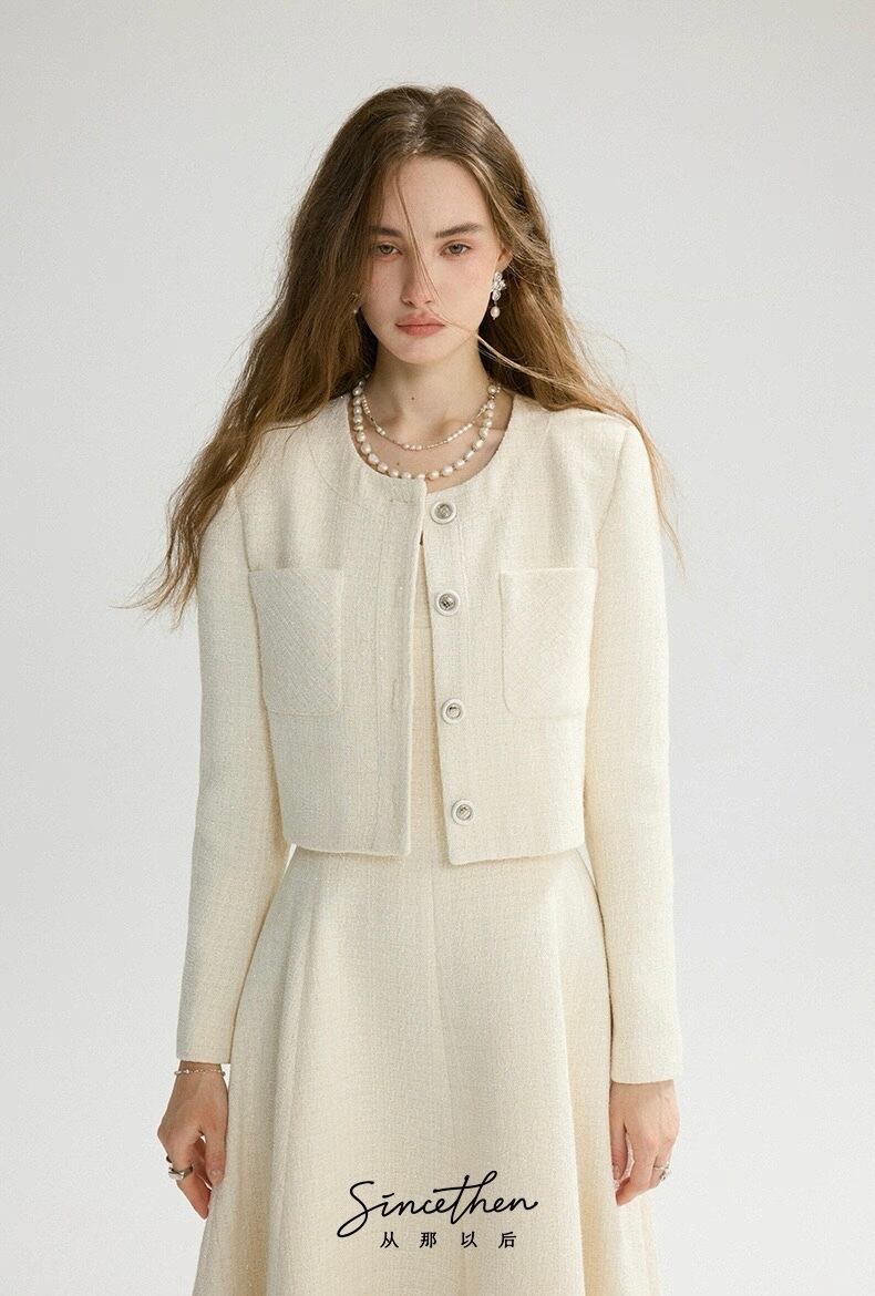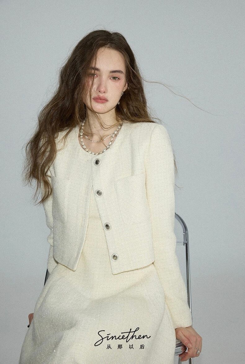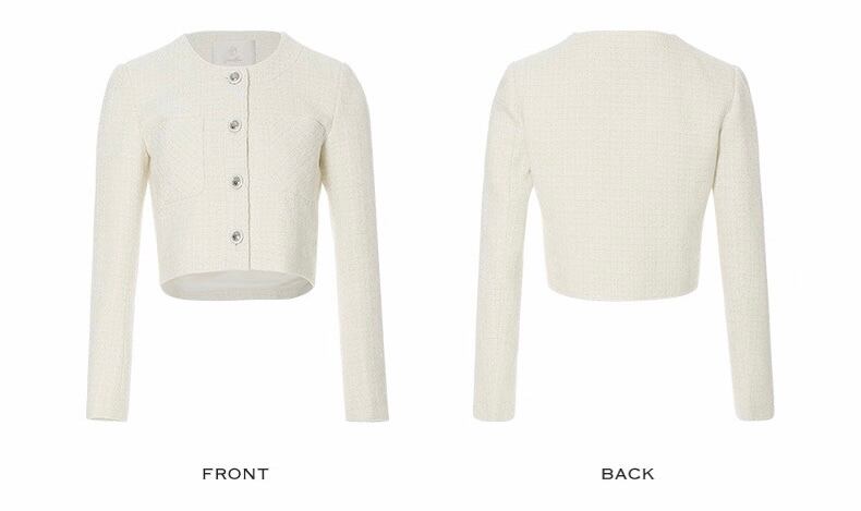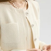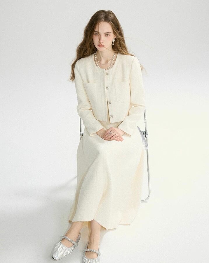 ノーカラーツイードホワイトジャケット
