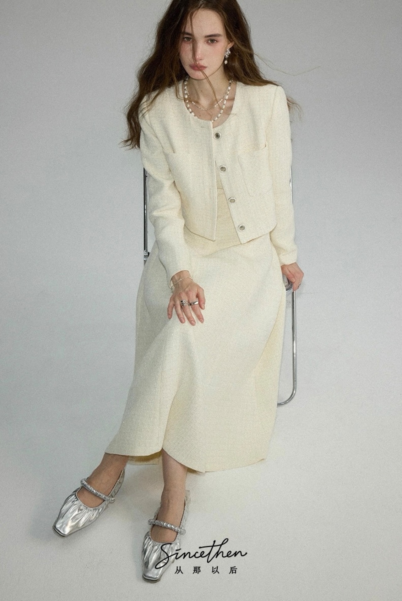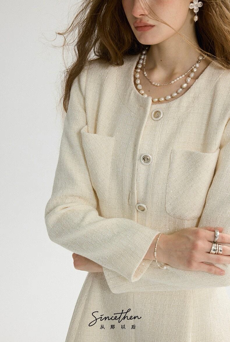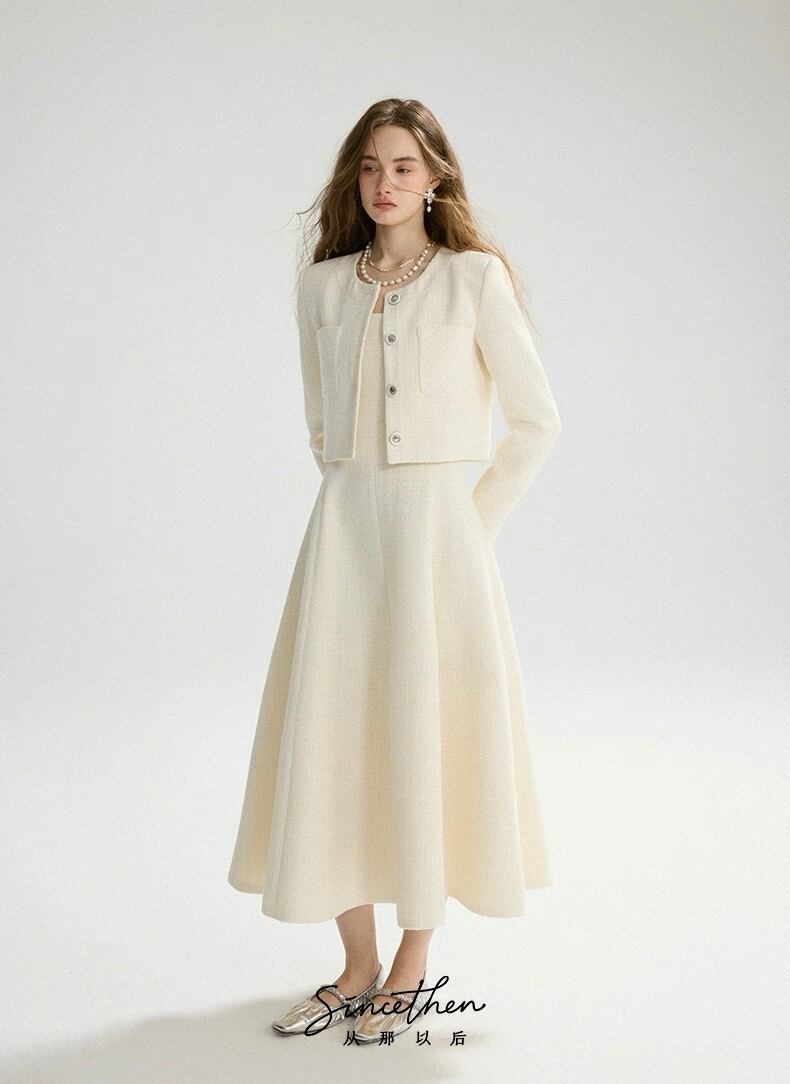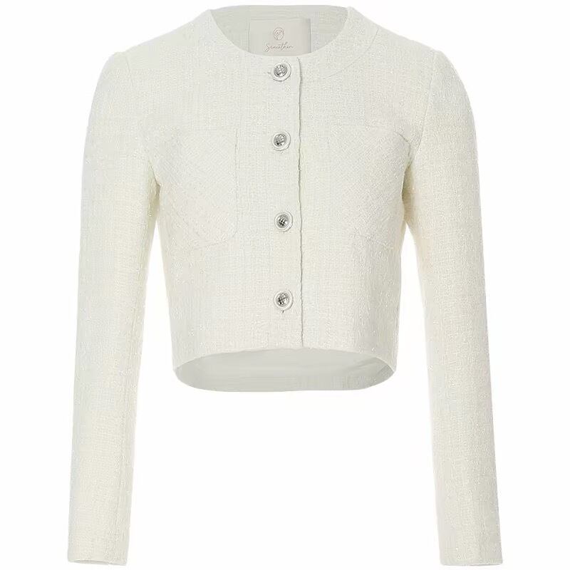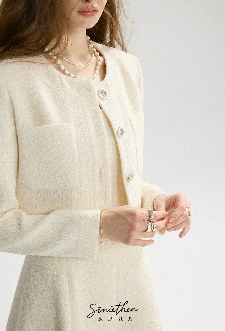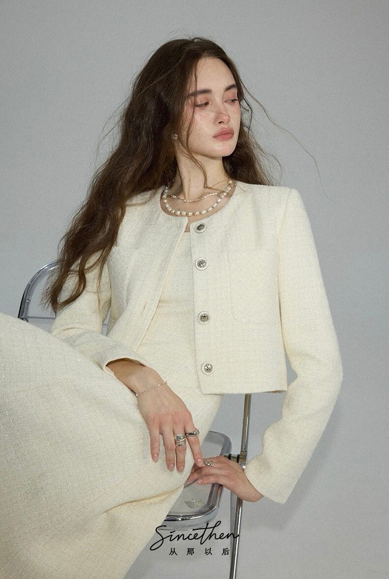 ノーカラーツイードホワイトジャケット