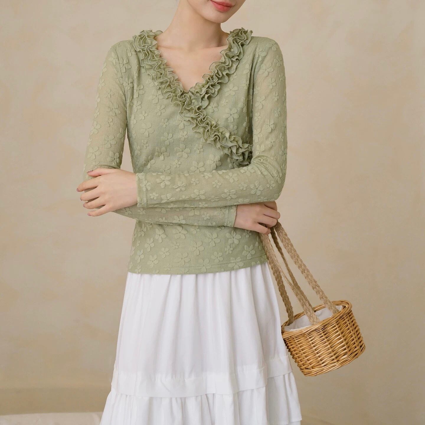 フラワーフリルカシュクールトップス