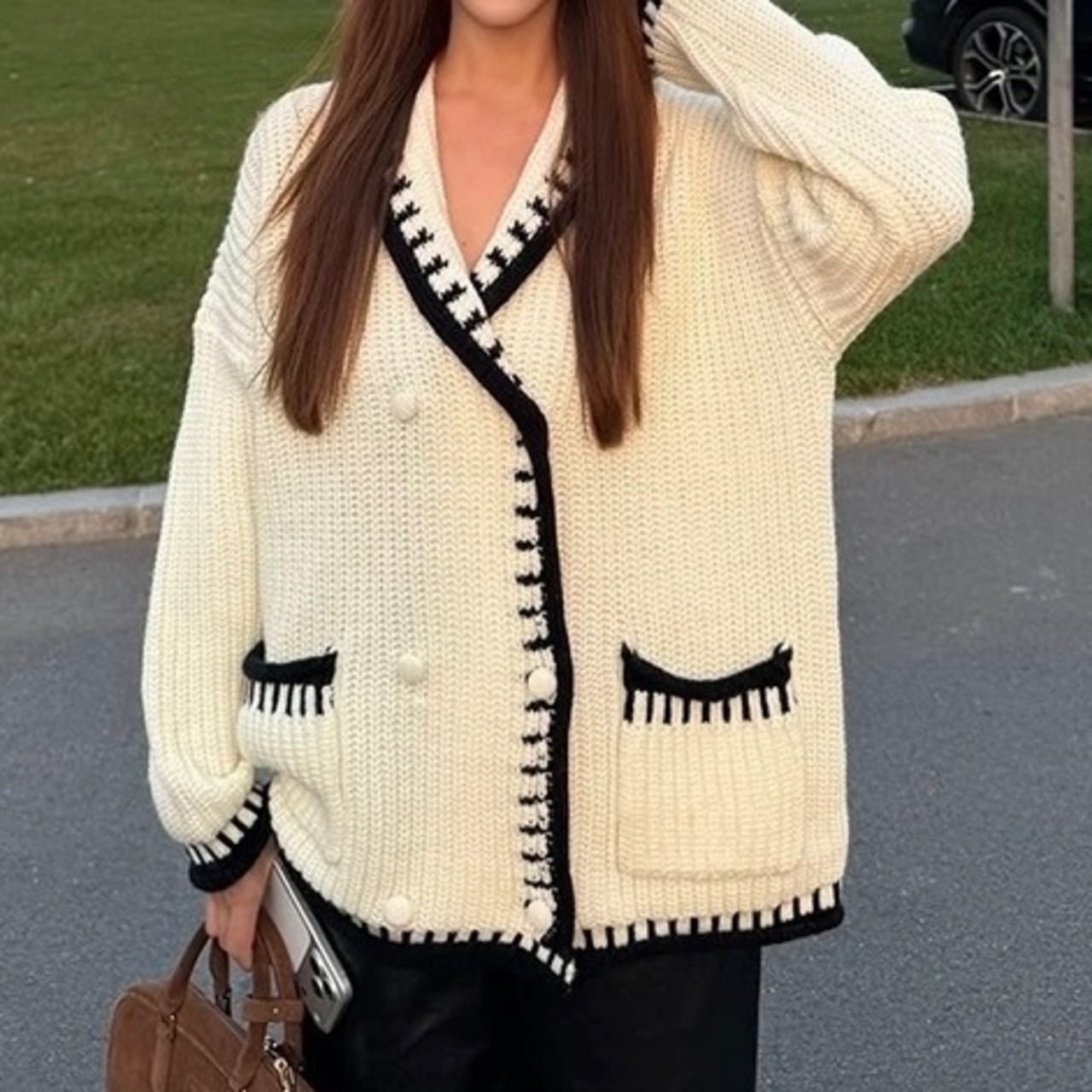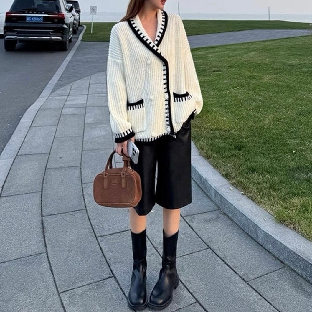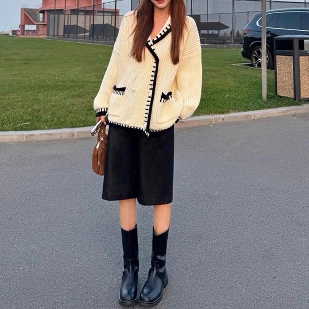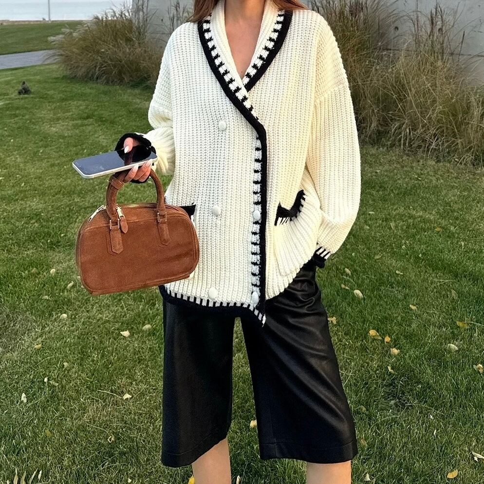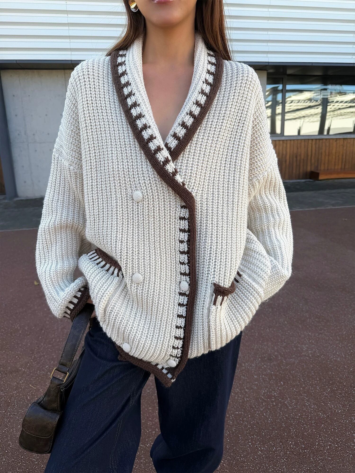 ショールカラーダブルボタンカーディガン
