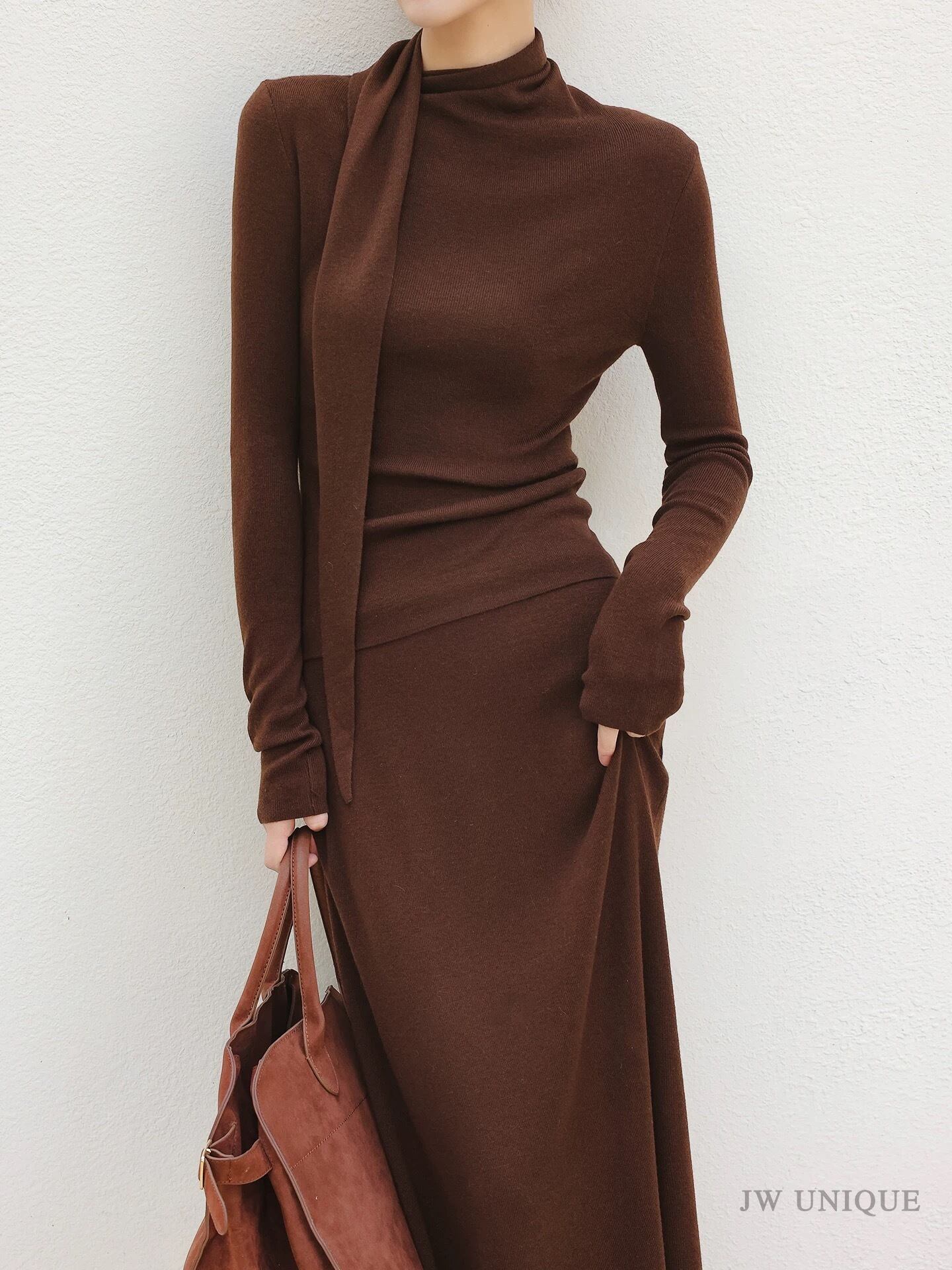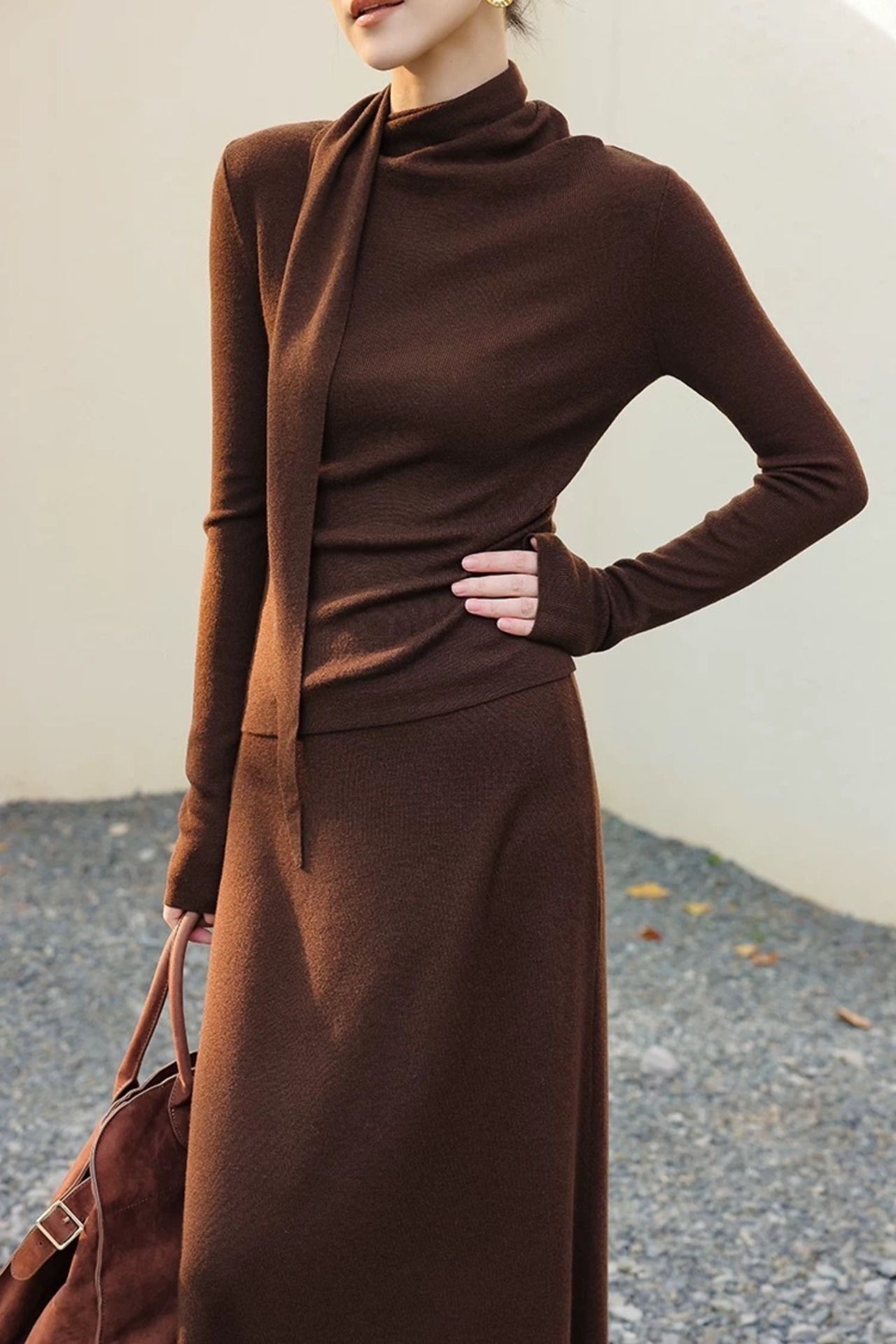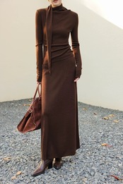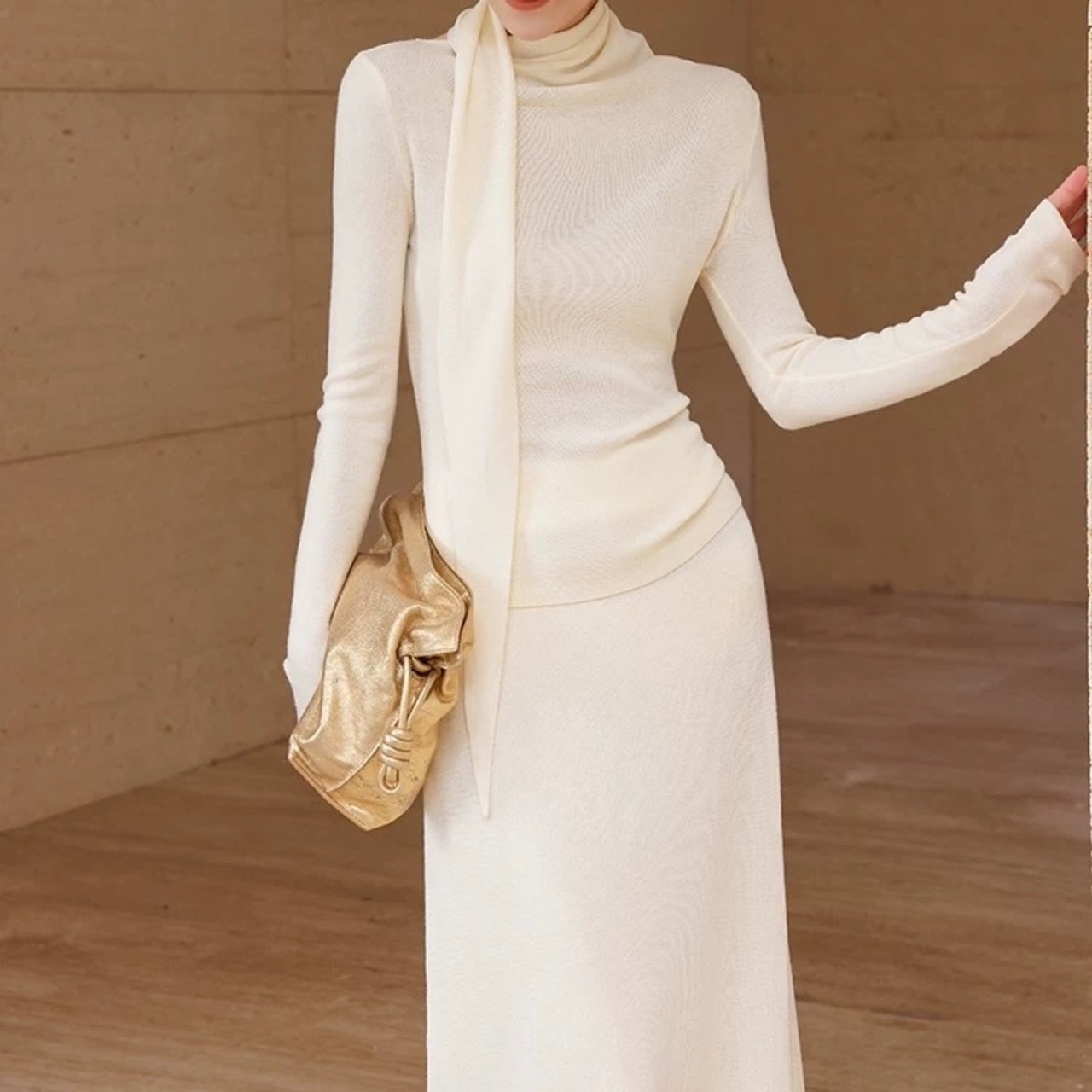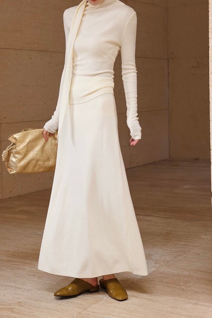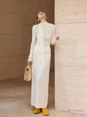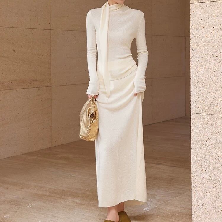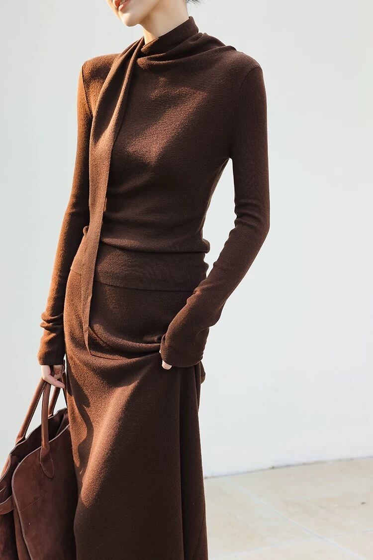 ドレープボウタイ風カラートップススカートセットアップ