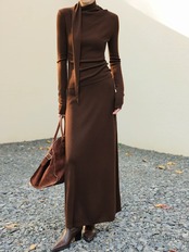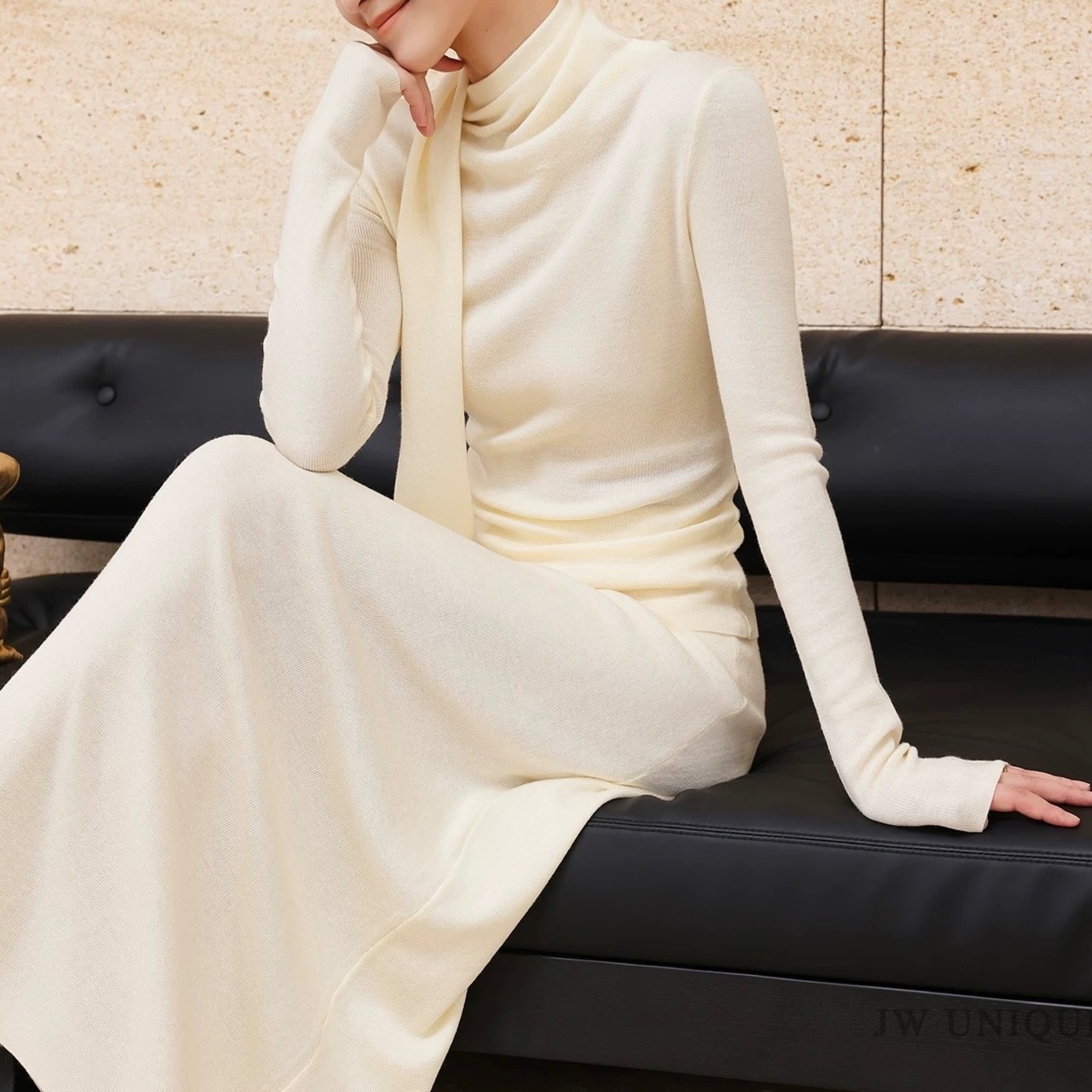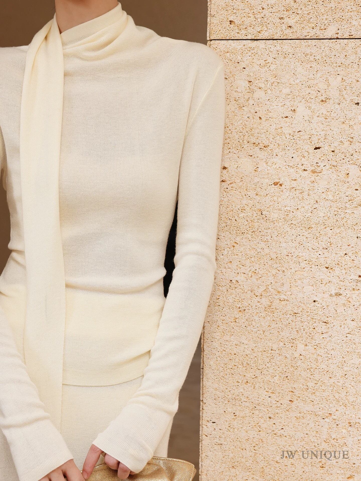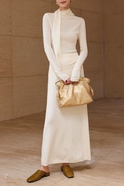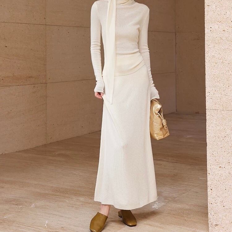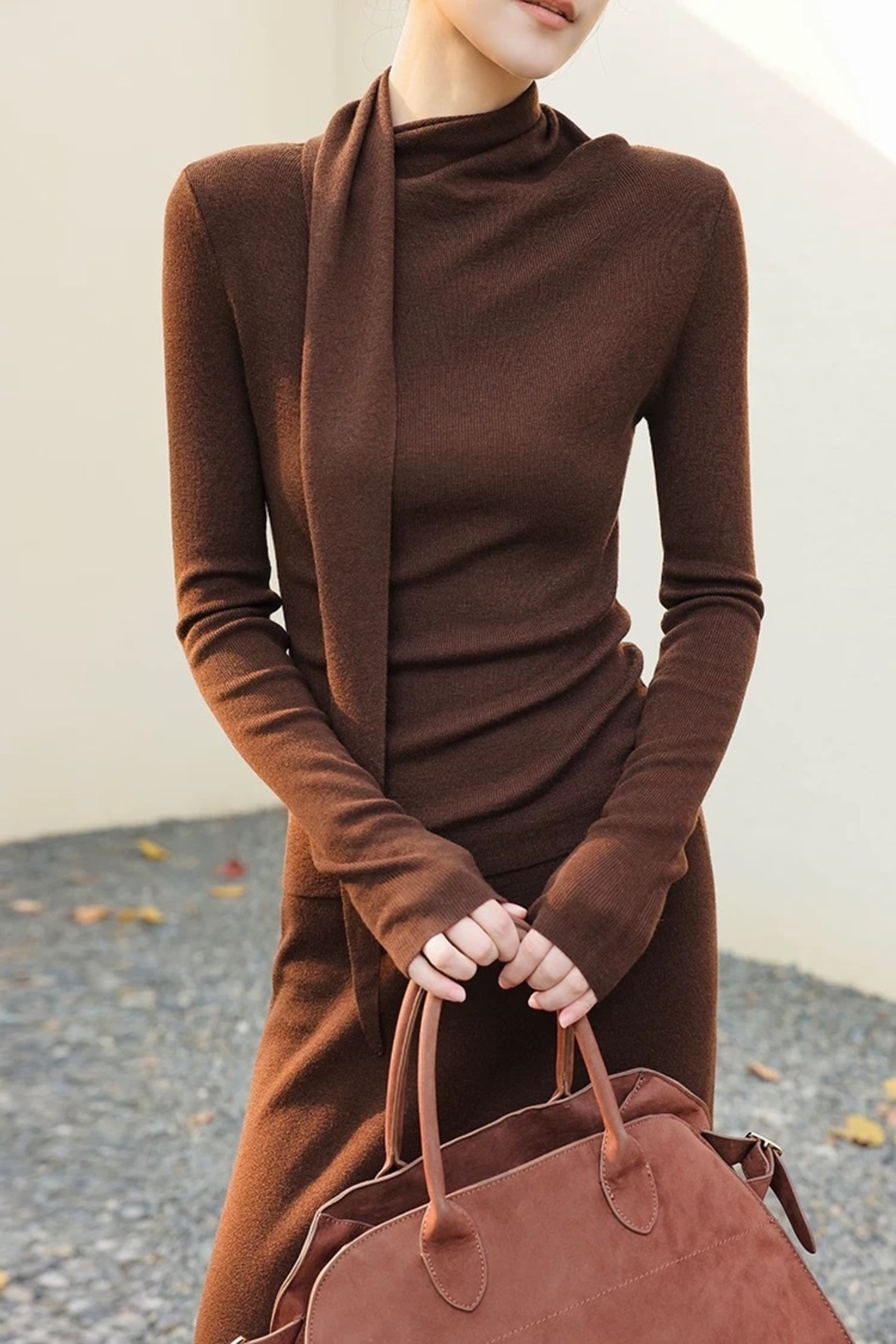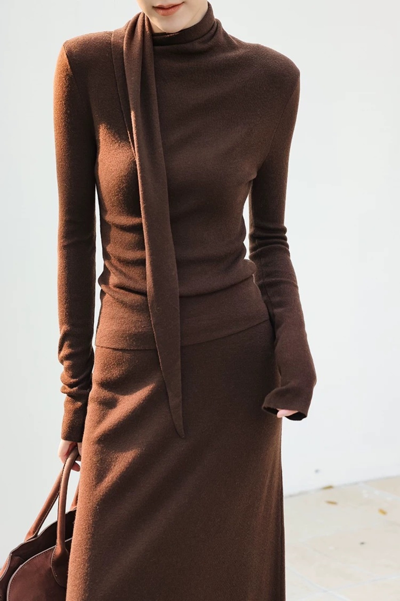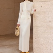 ドレープボウタイ風カラートップススカートセットアップ