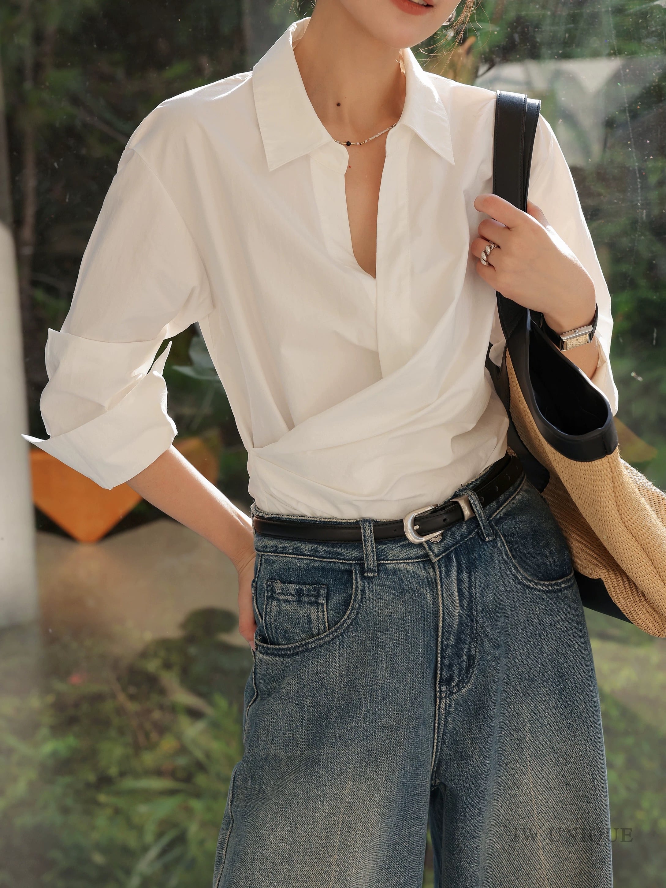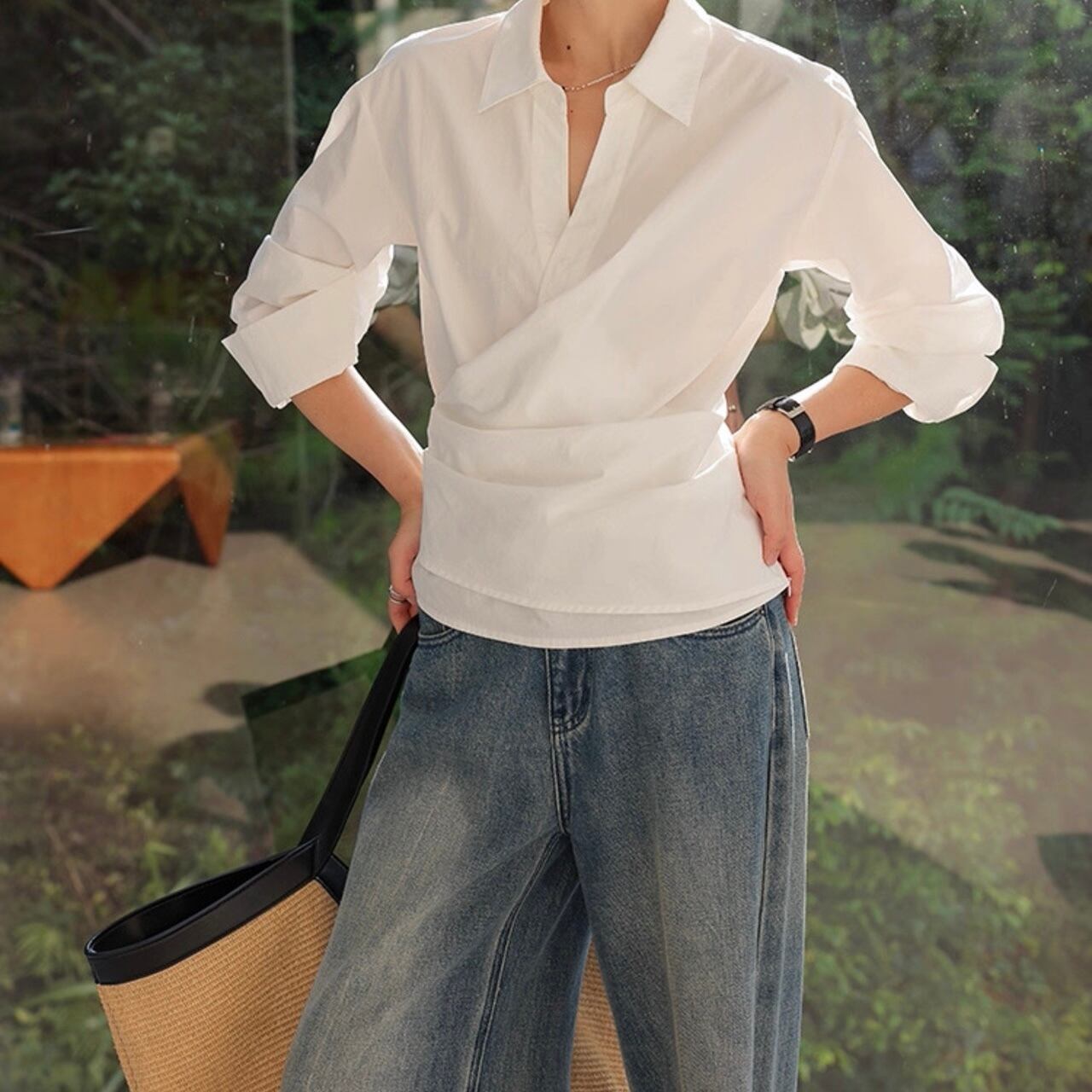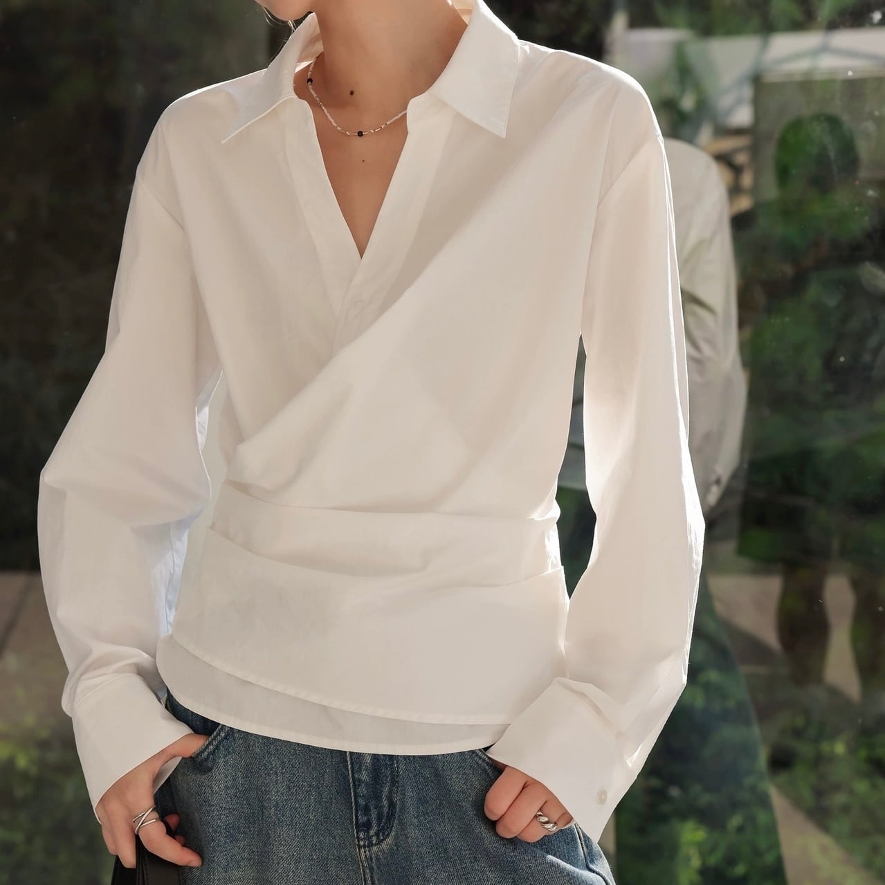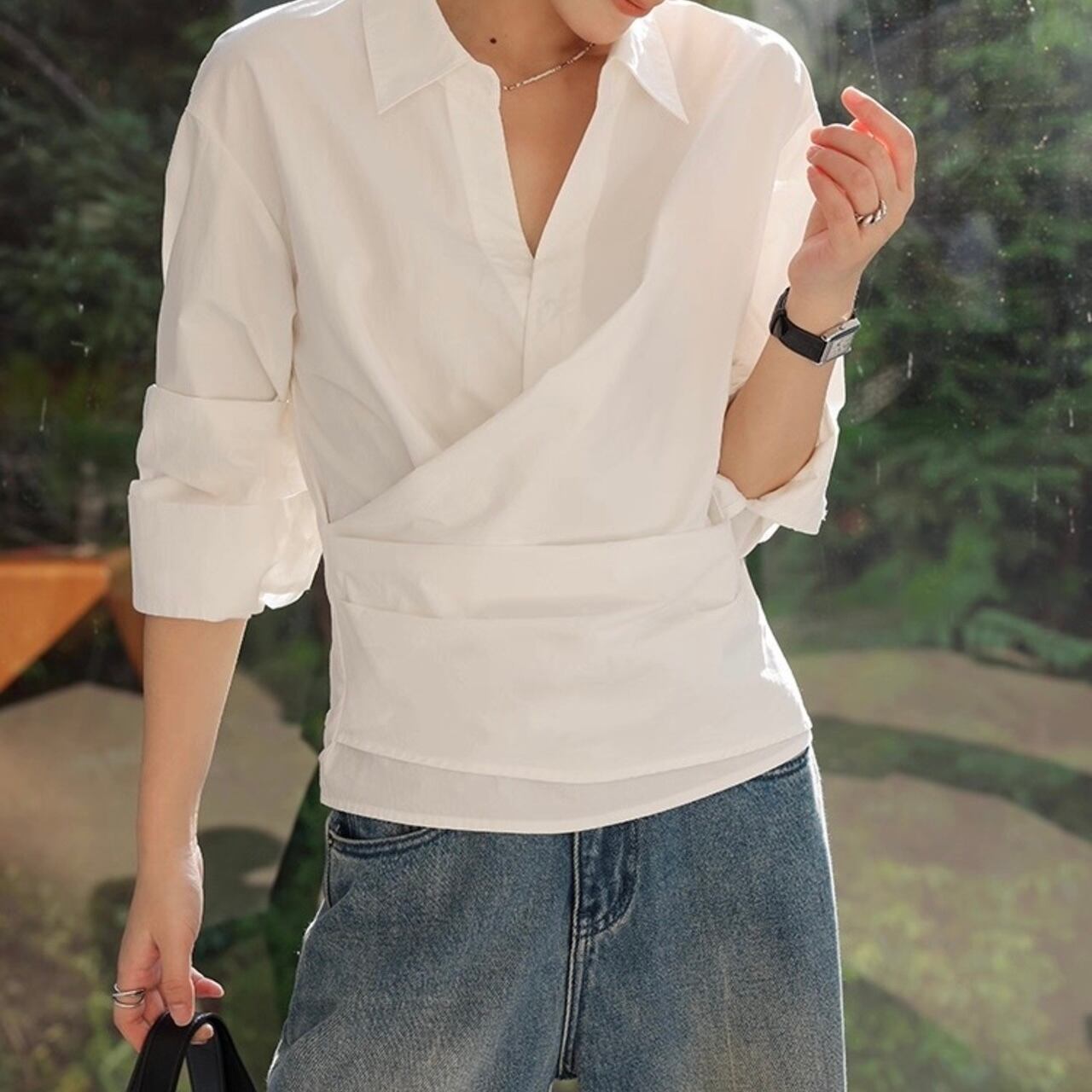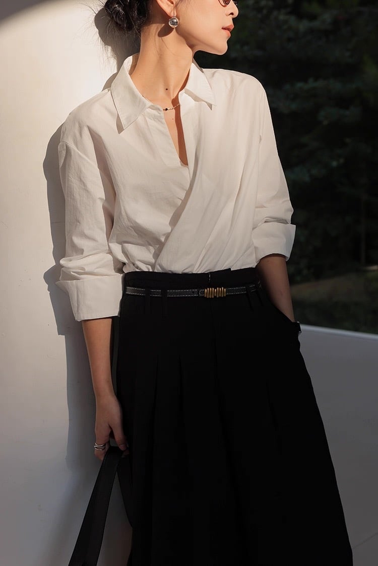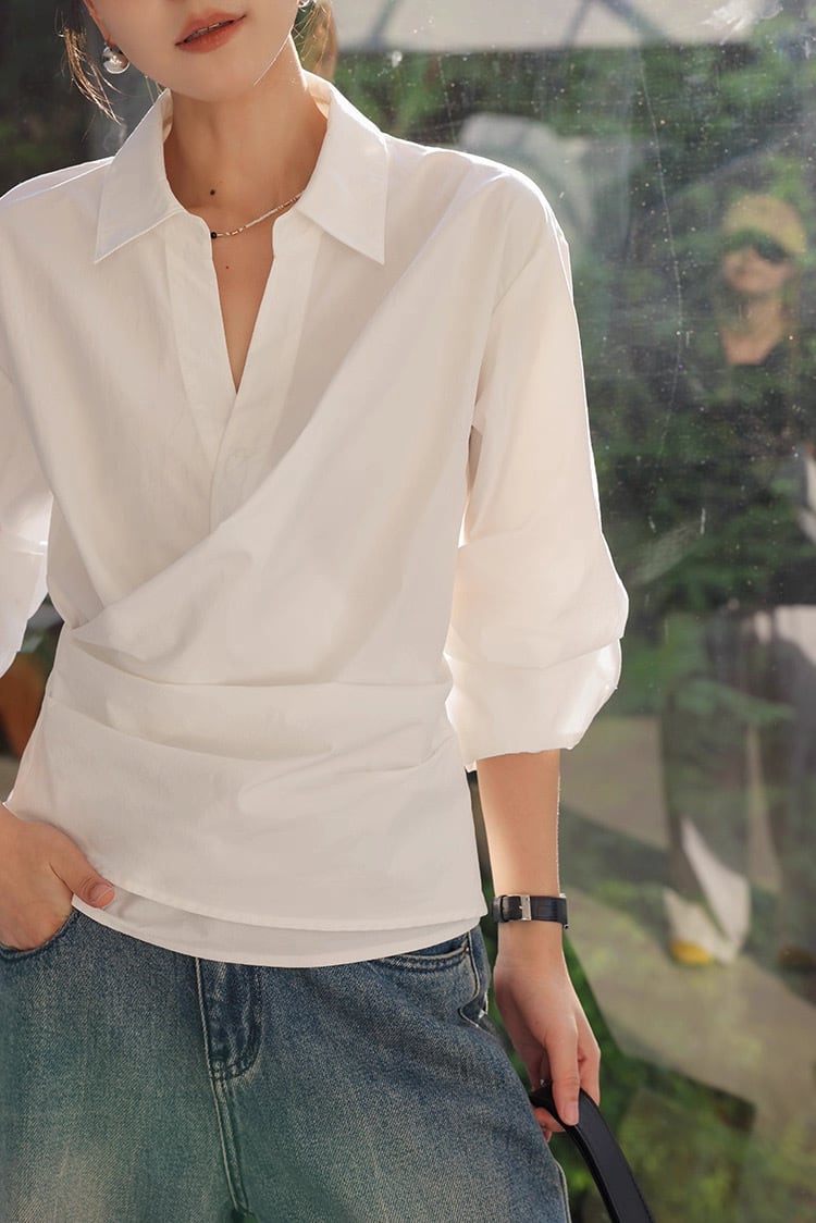 カシュクール襟ラップブラウス