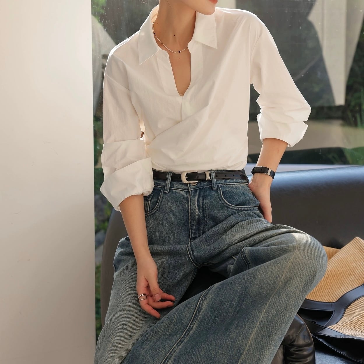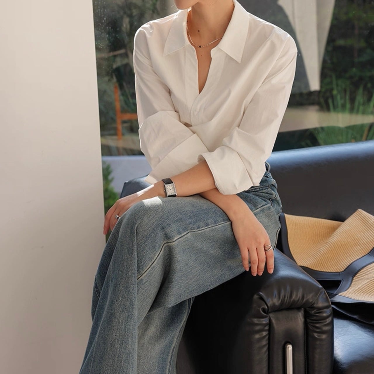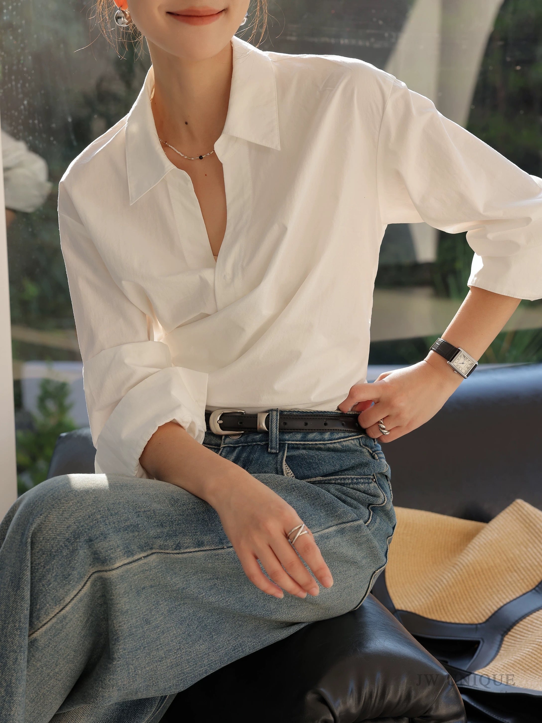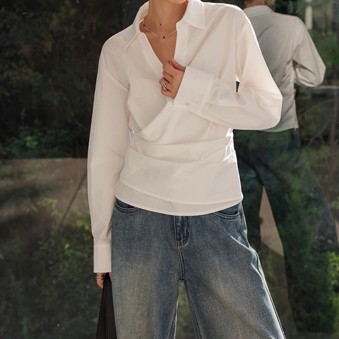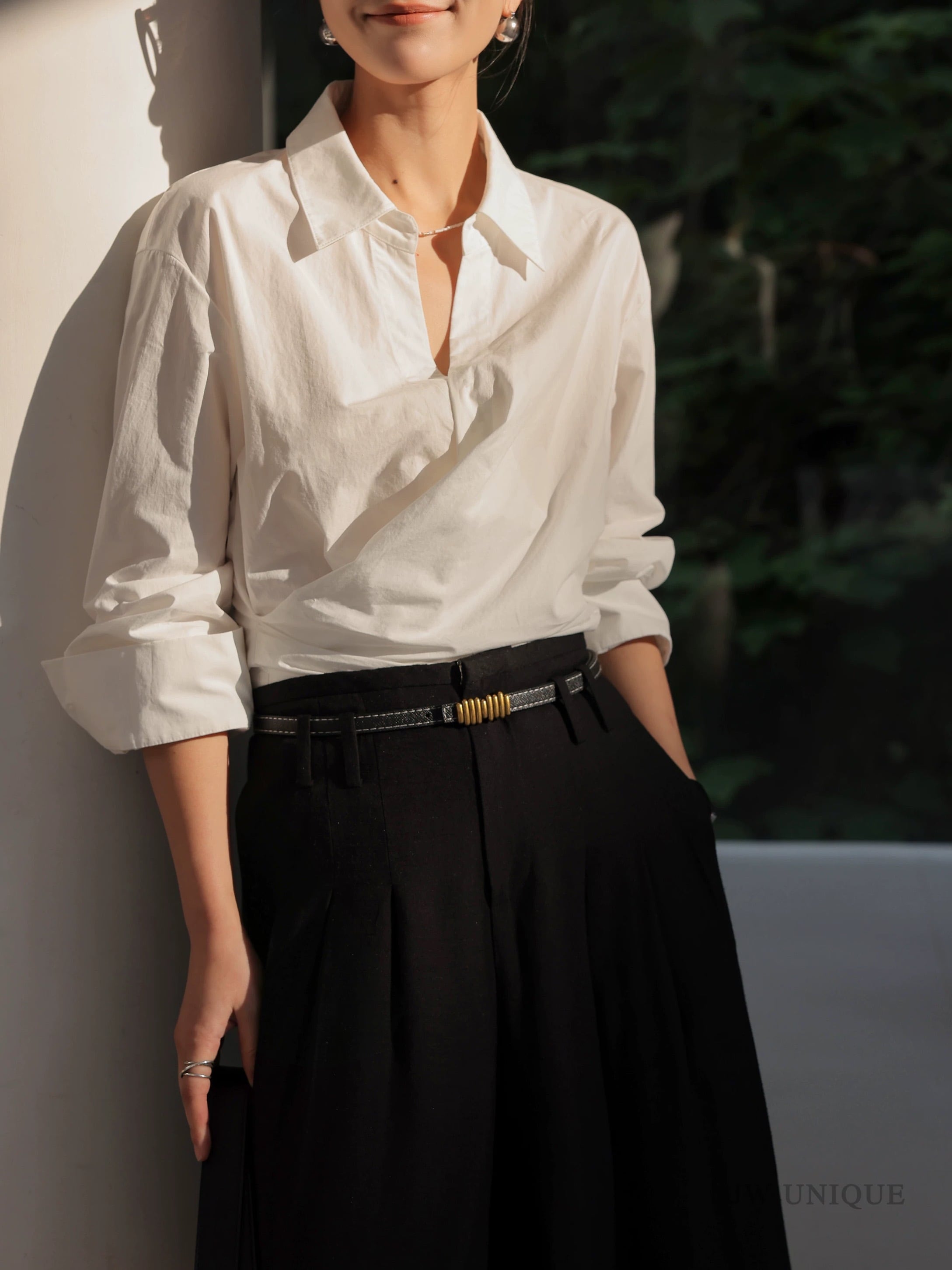 カシュクール襟ラップブラウス