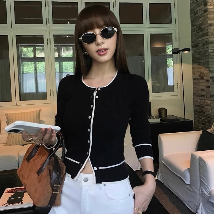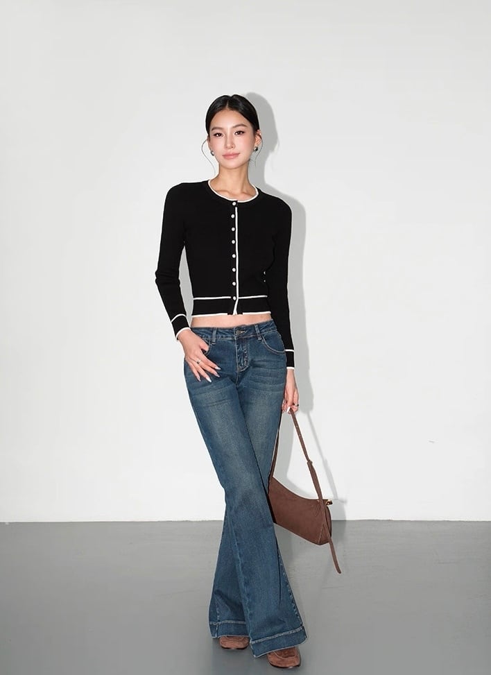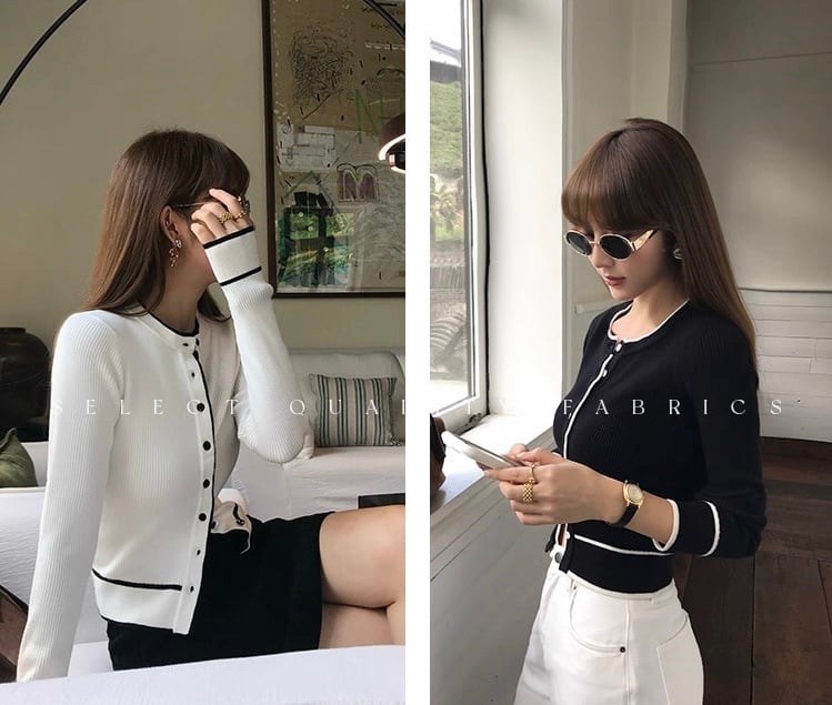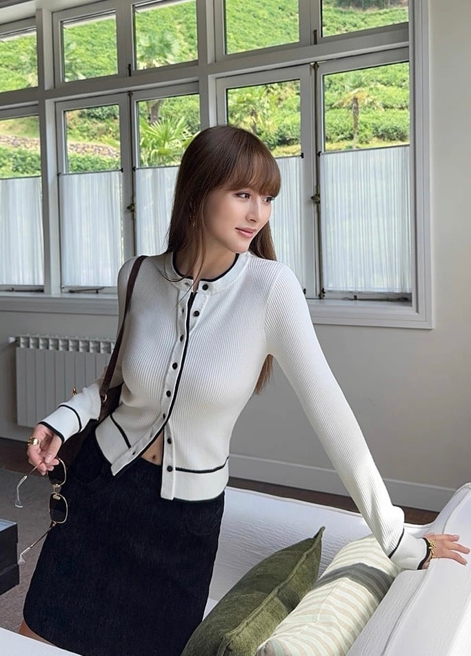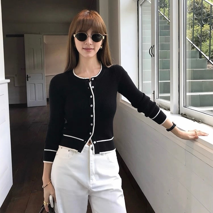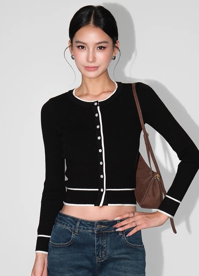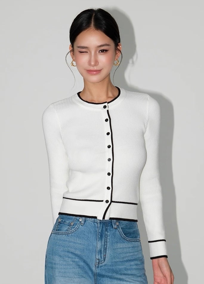 バイカラーラインカーディガン