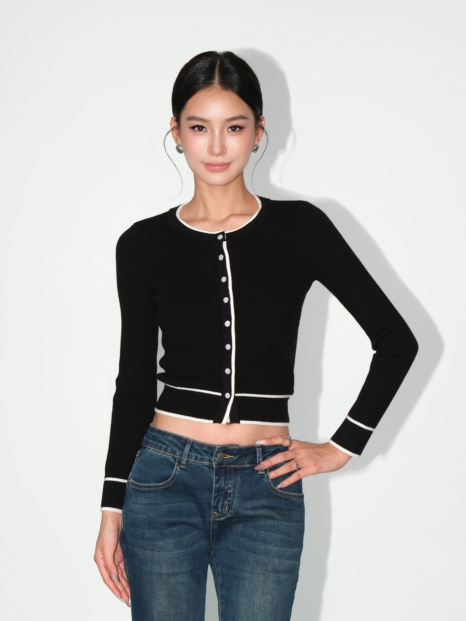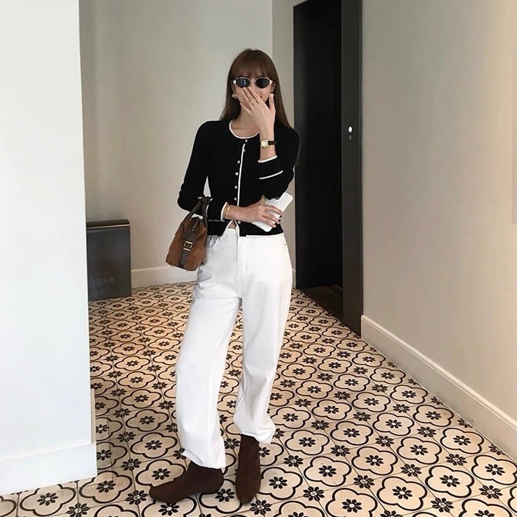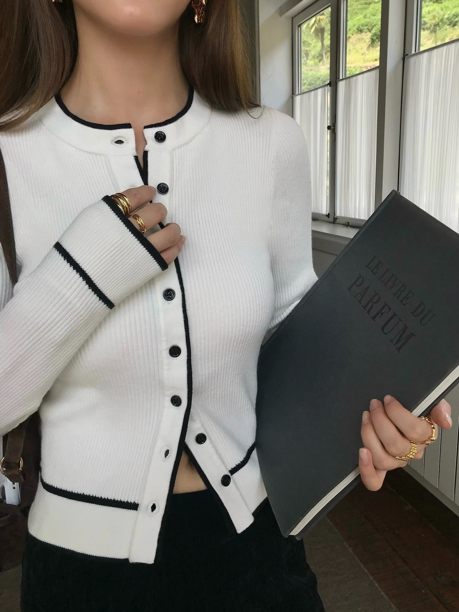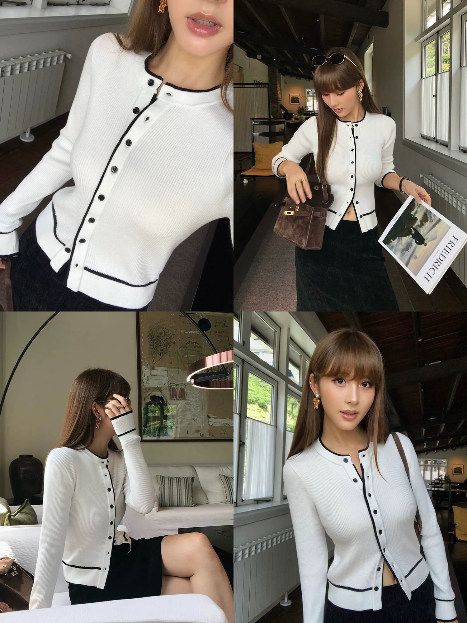 バイカラーラインカーディガン