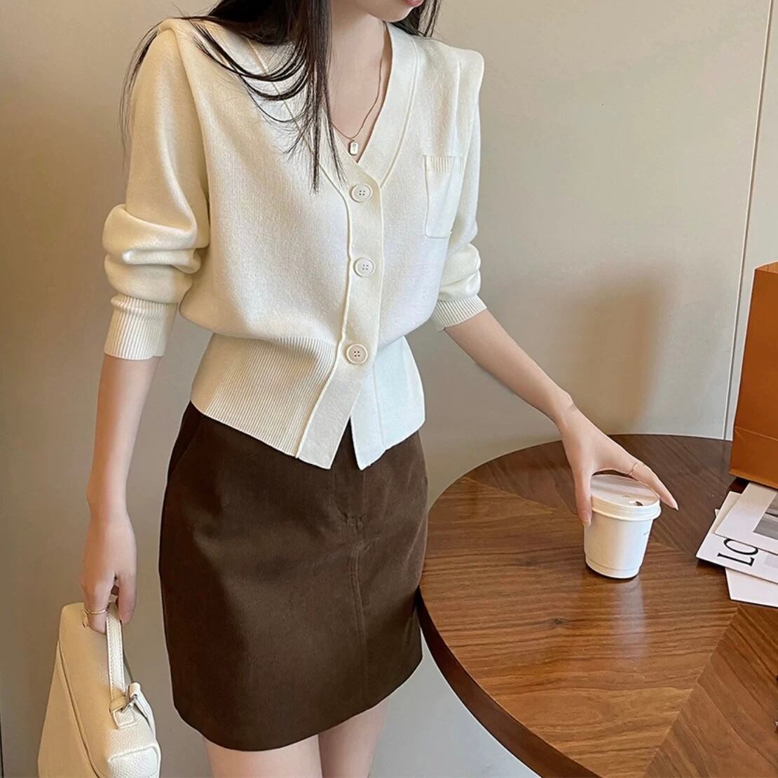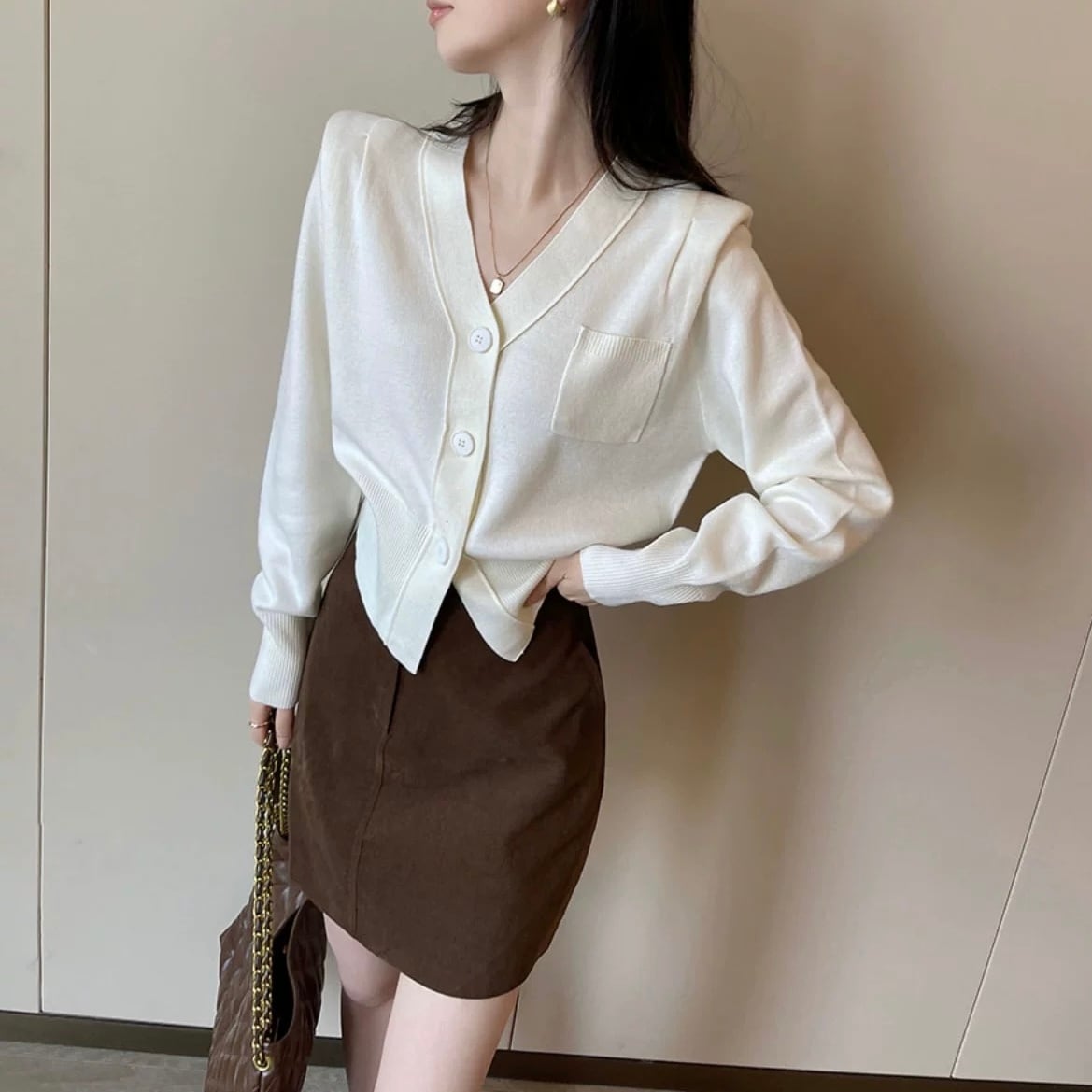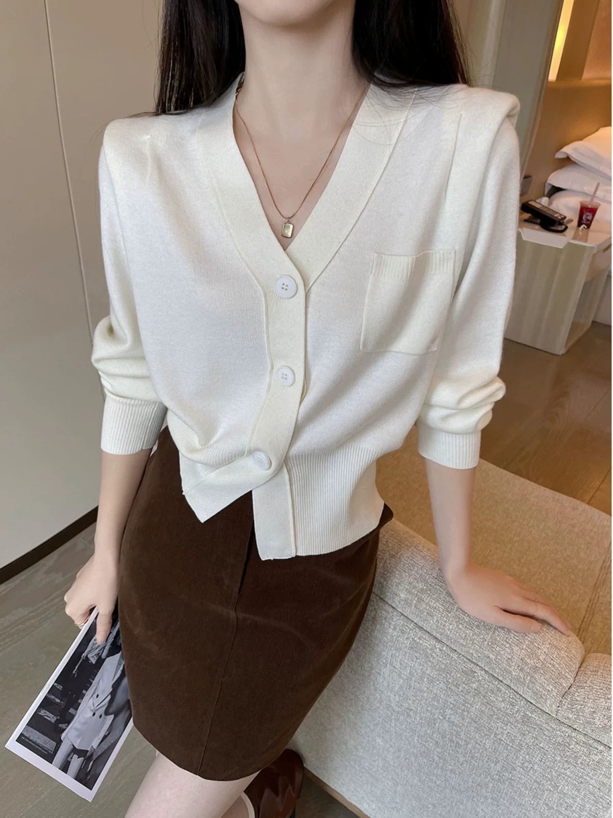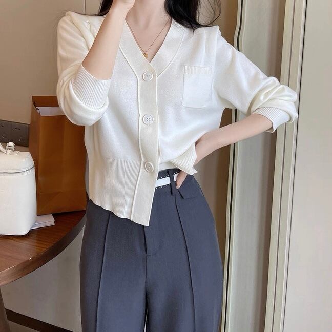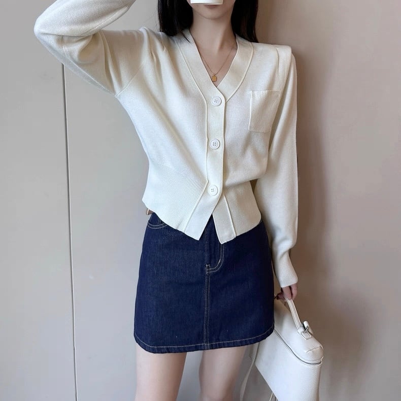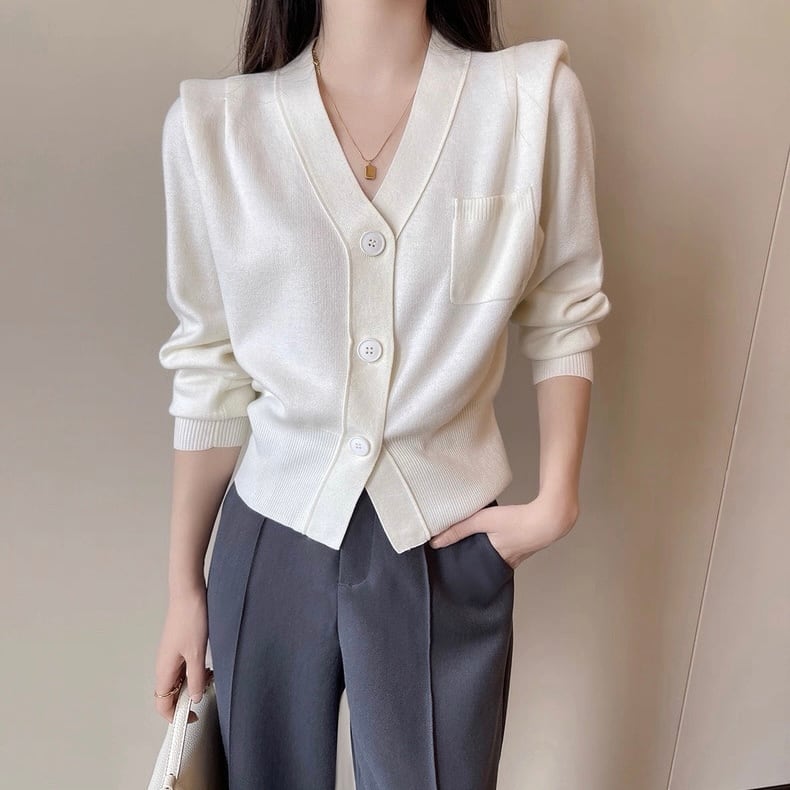 ホワイトラインポケットVネックトップス