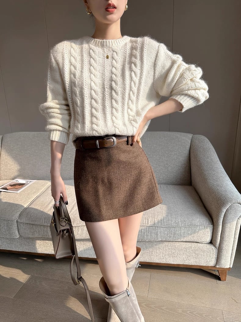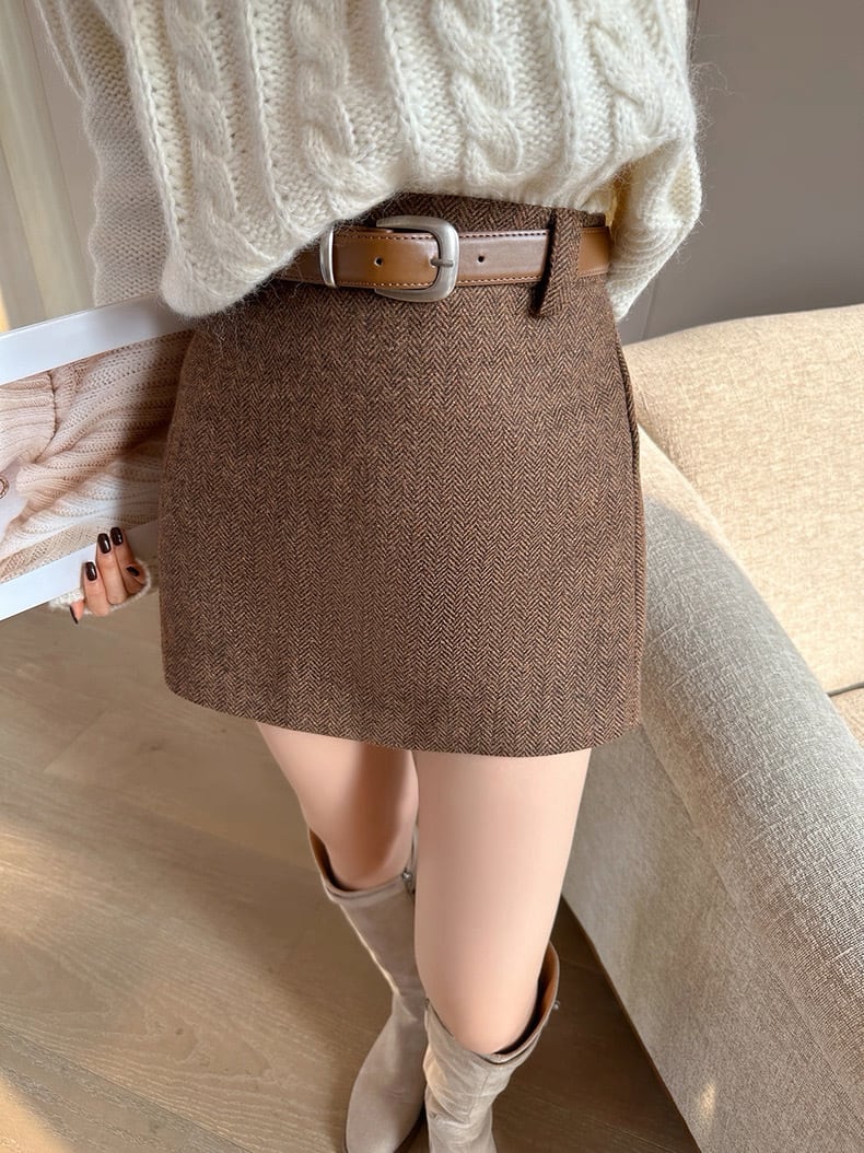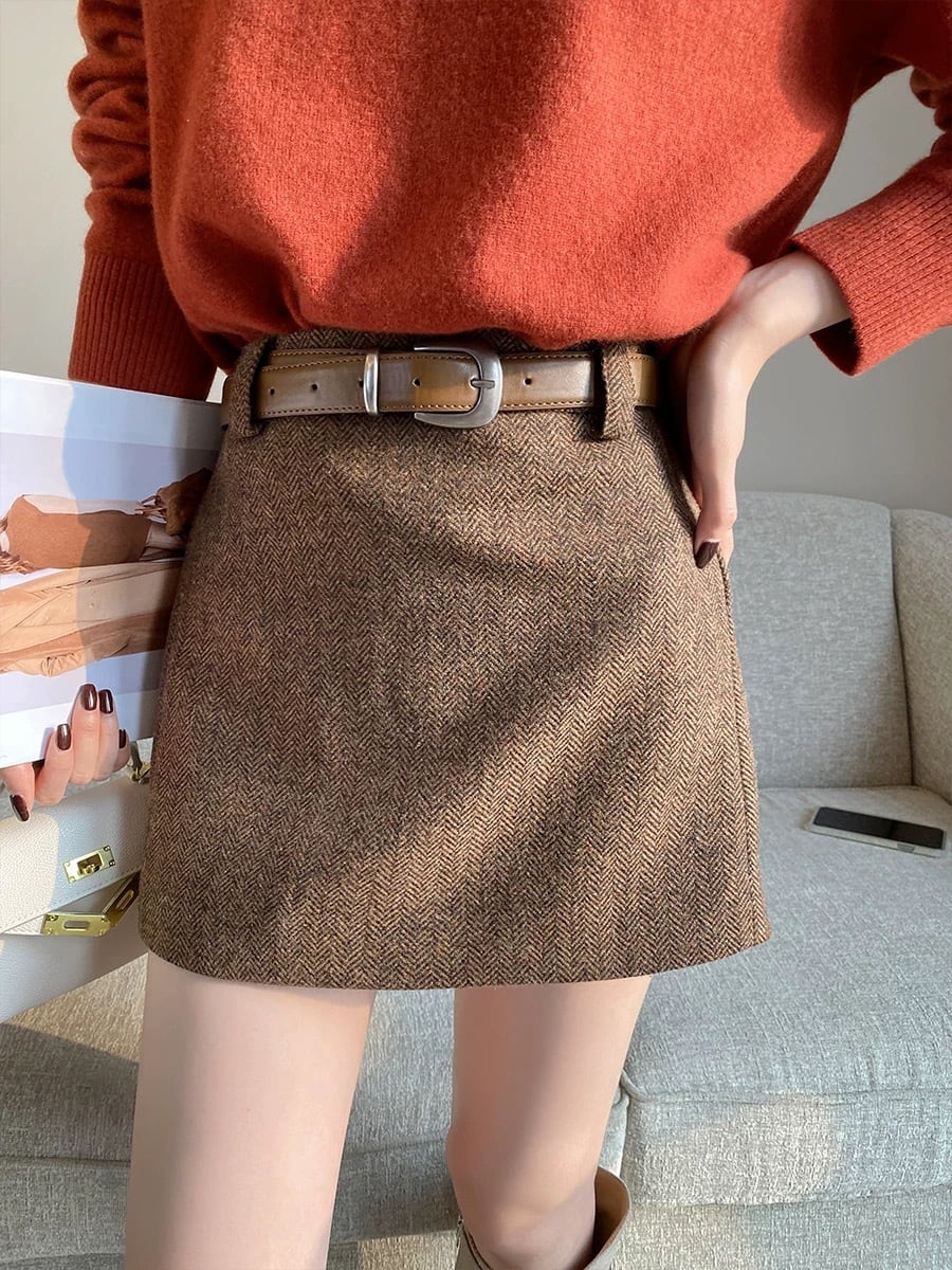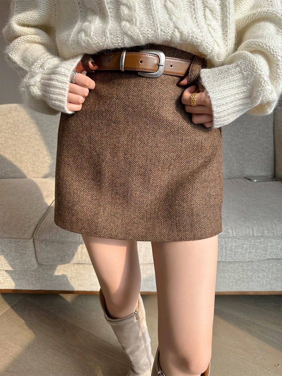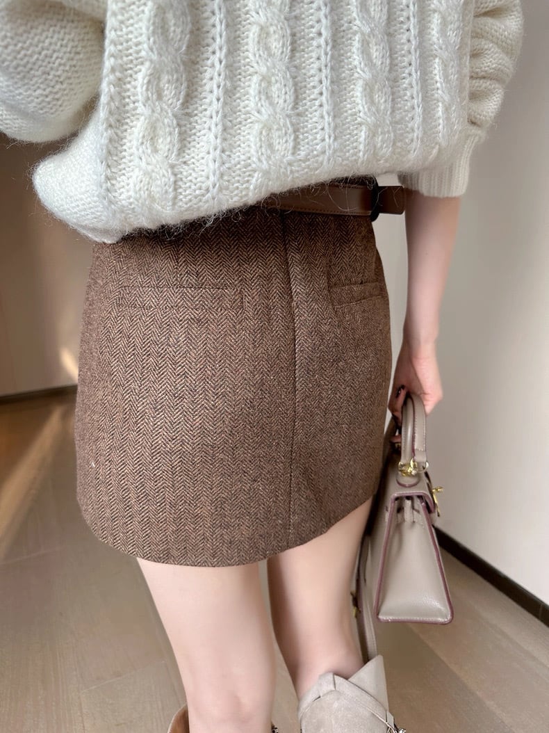 ヘリンボーンブラウンミニスカート