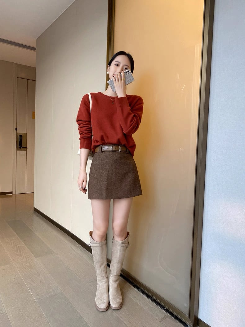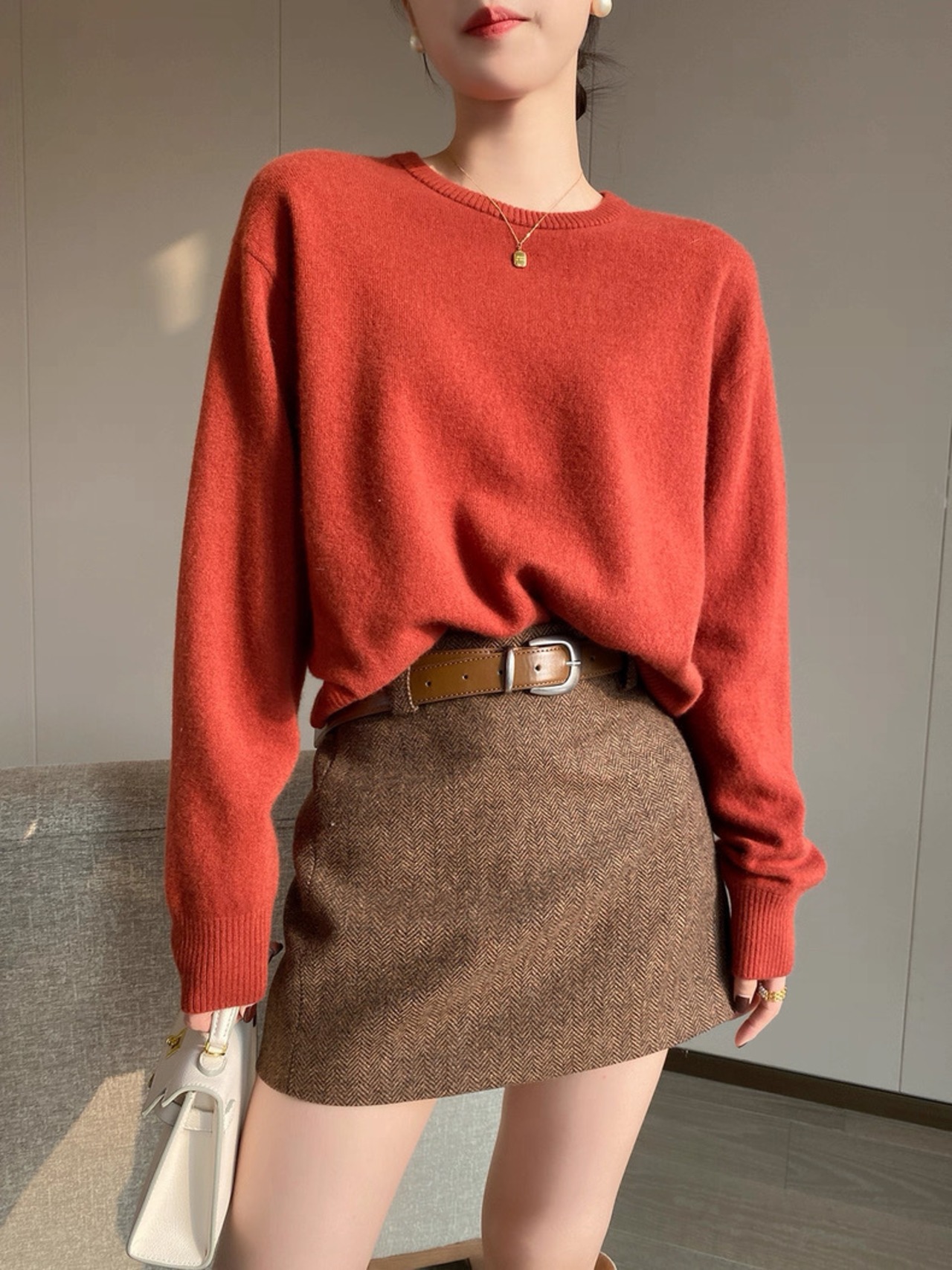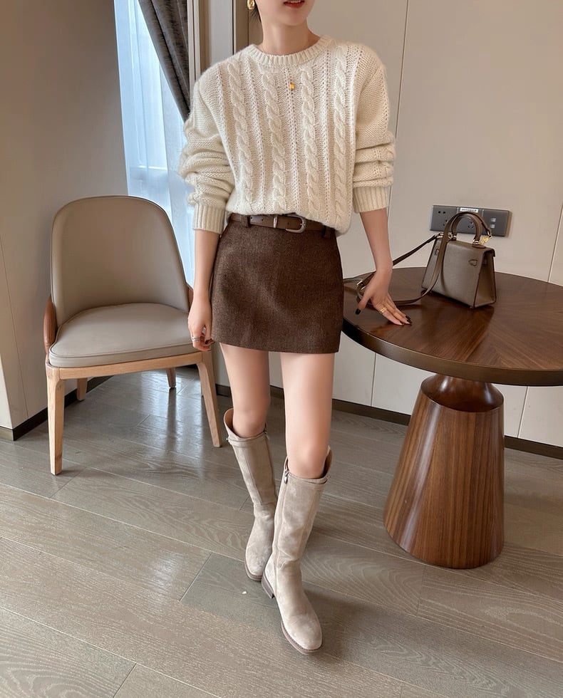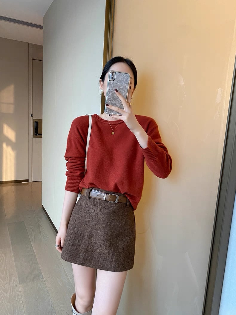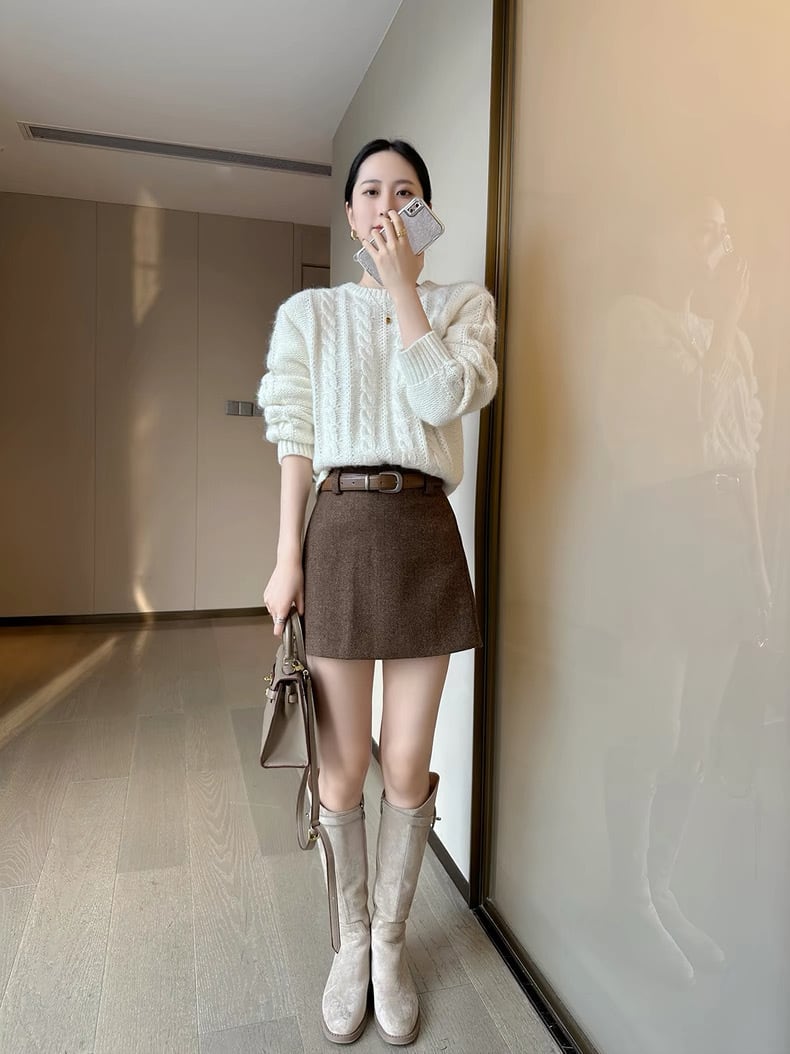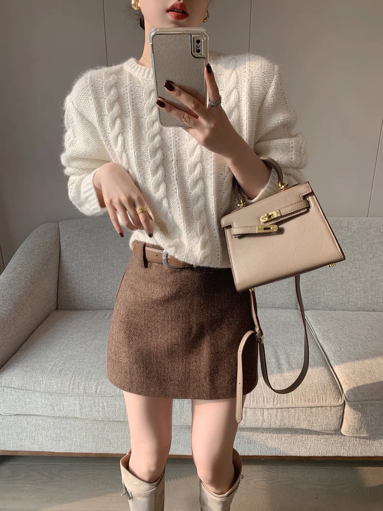 ヘリンボーンブラウンミニスカート