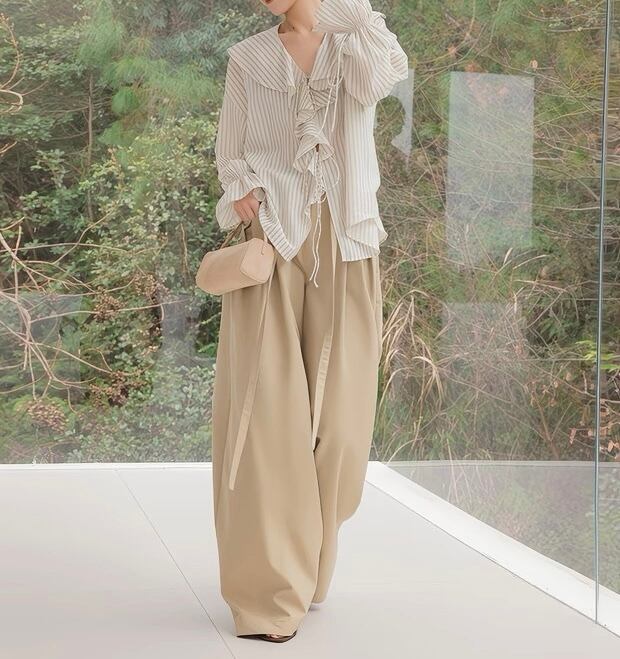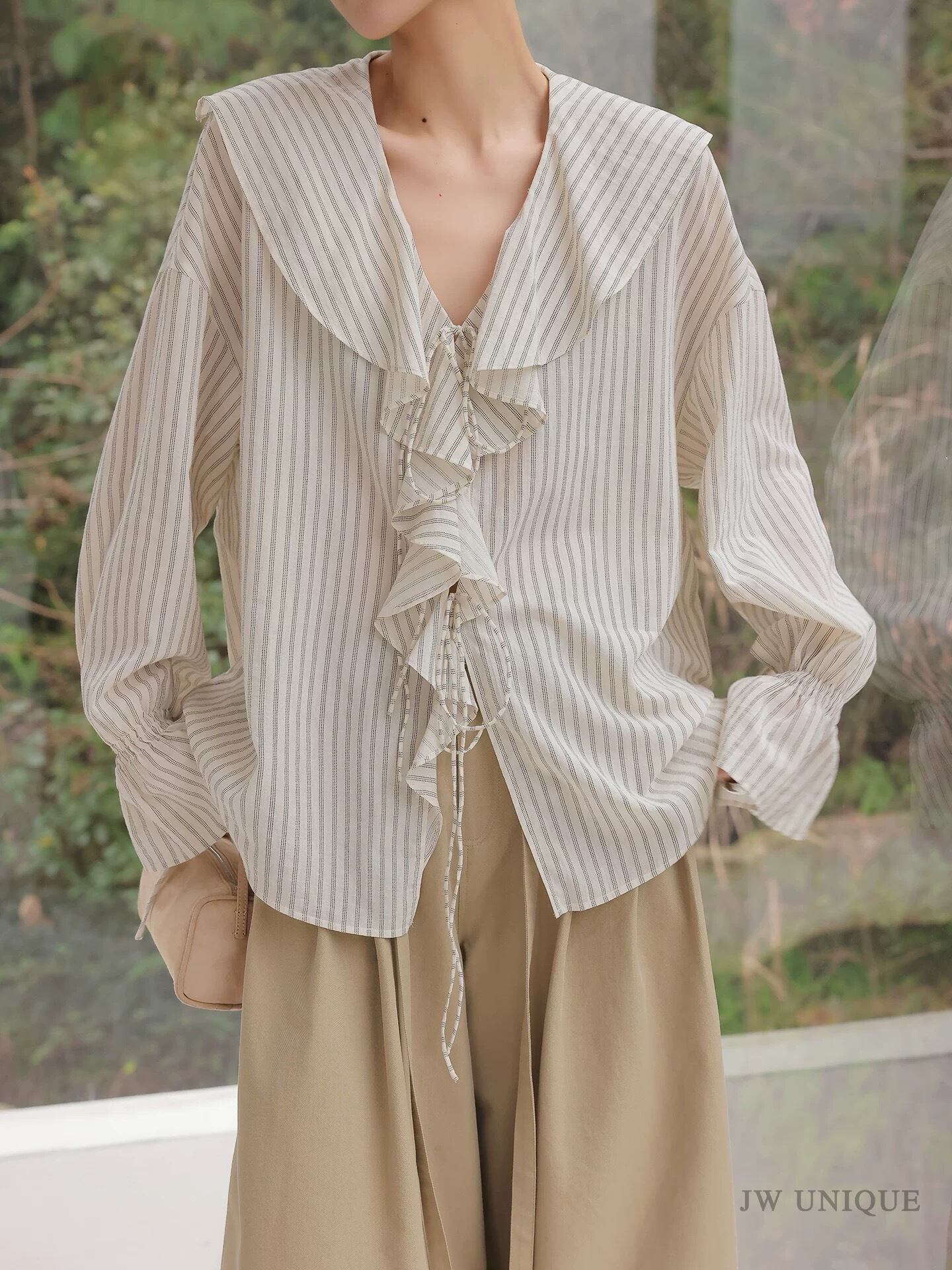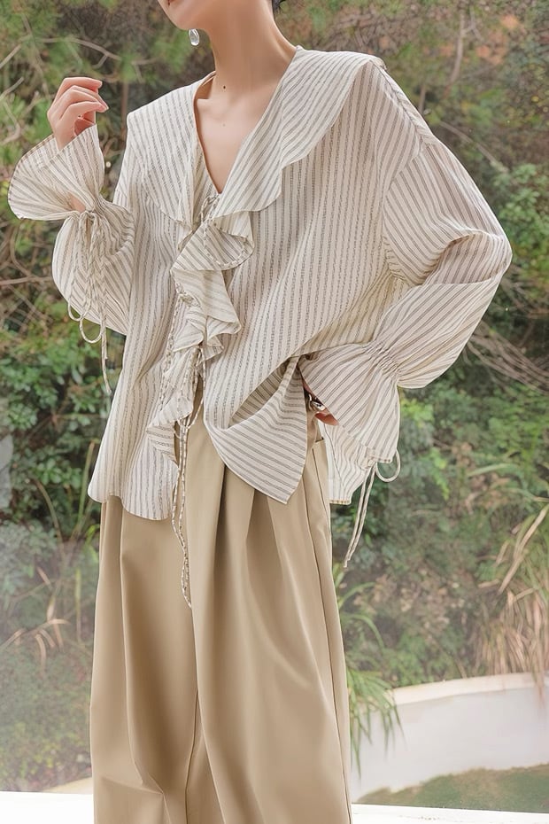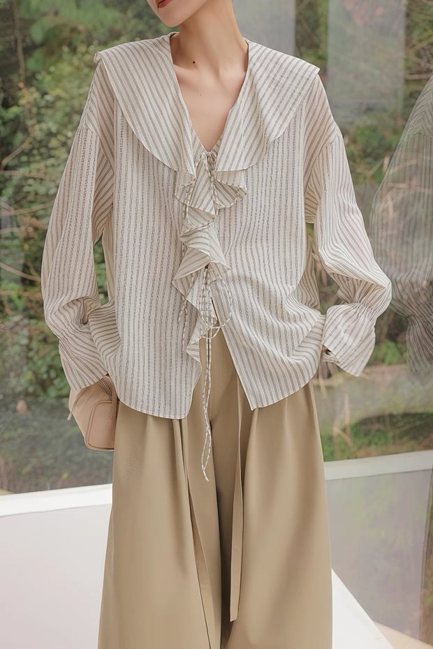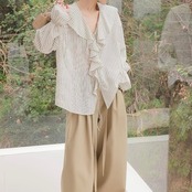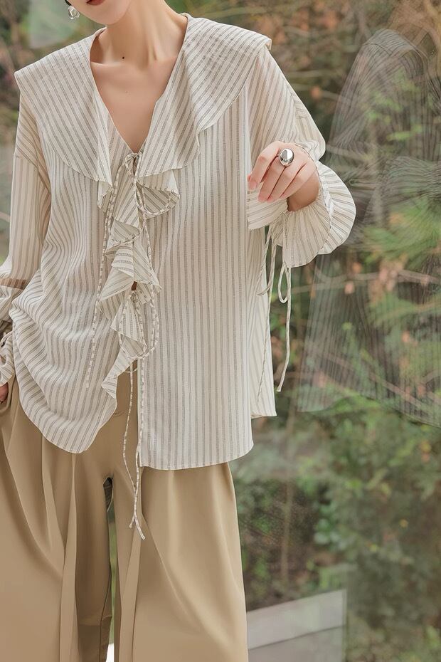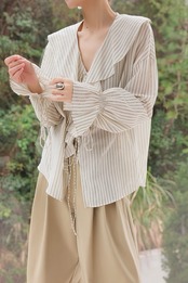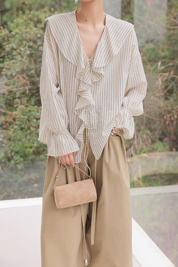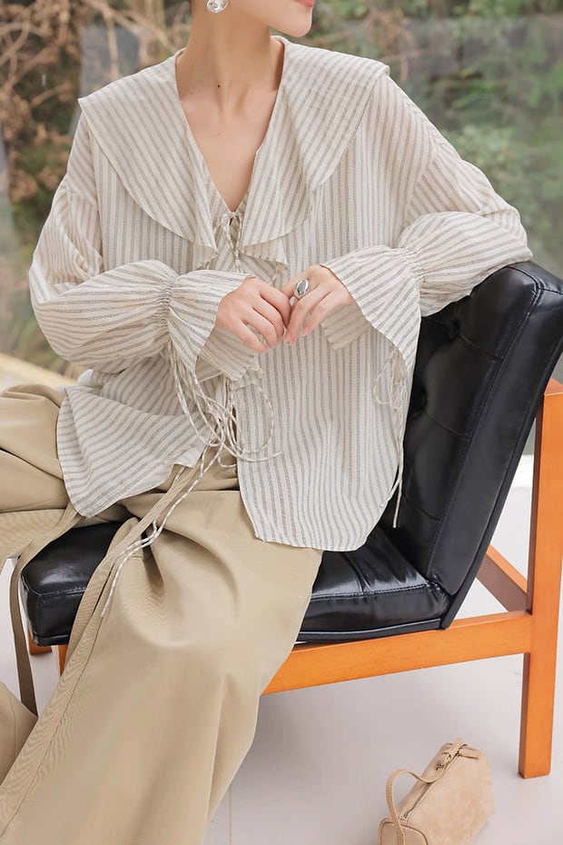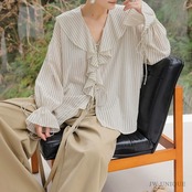 フレンチストライプフリルブラウス
