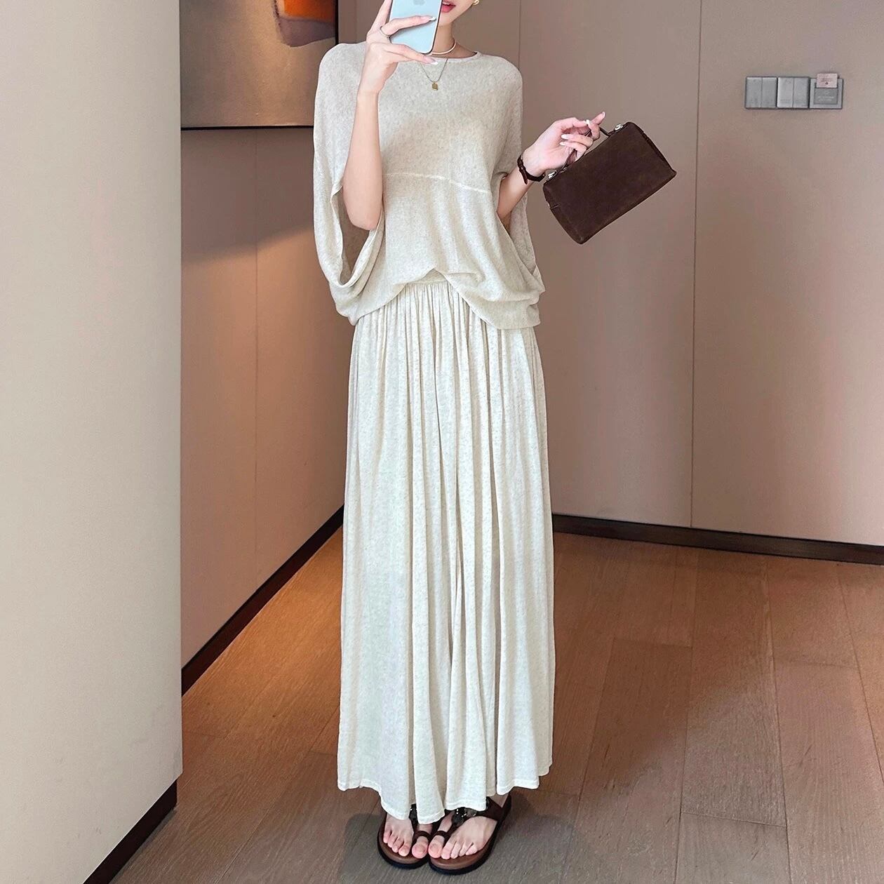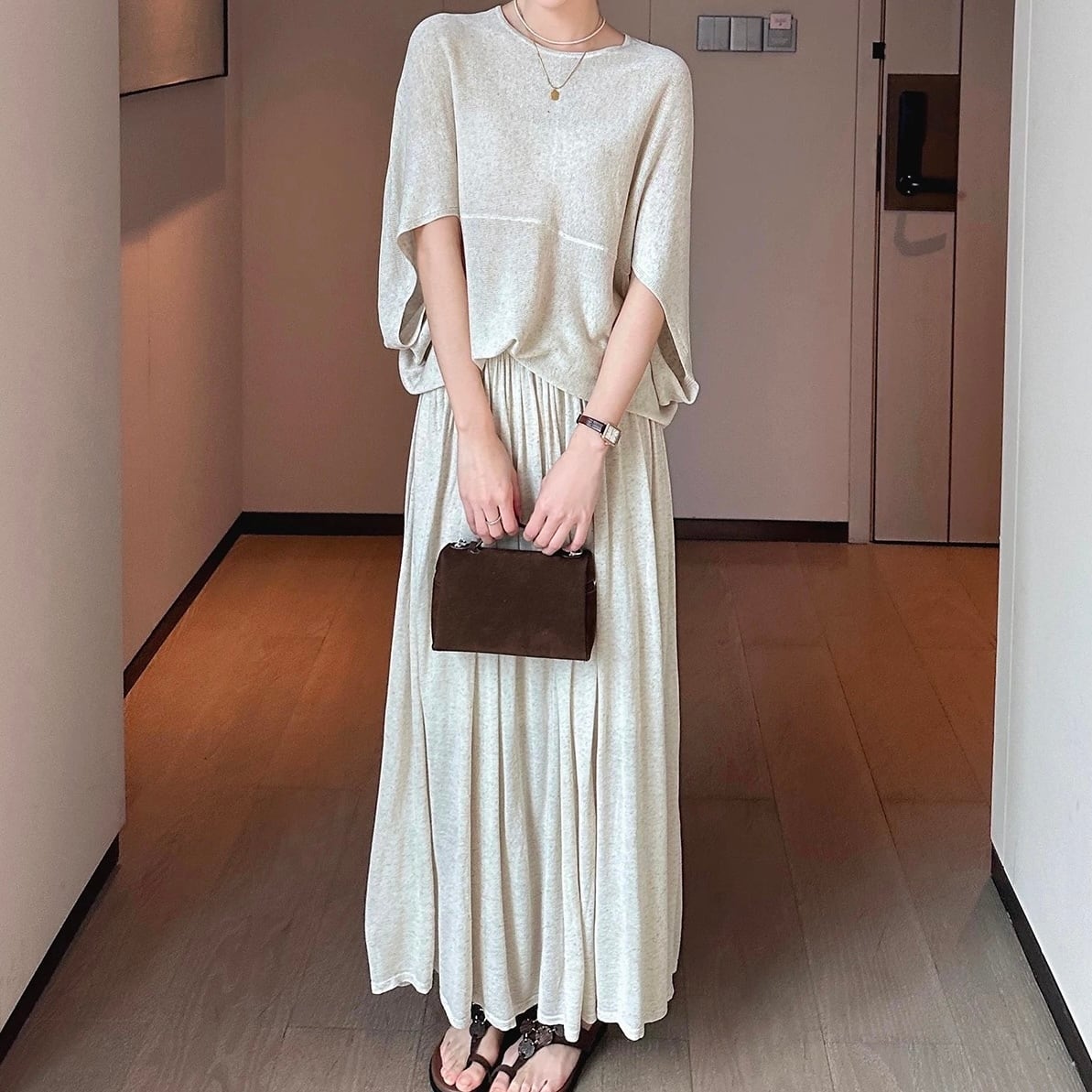 ポンチョケープスカートニットセットアップ