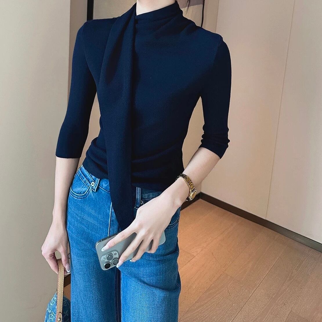 ドレープスカーフカラートップス