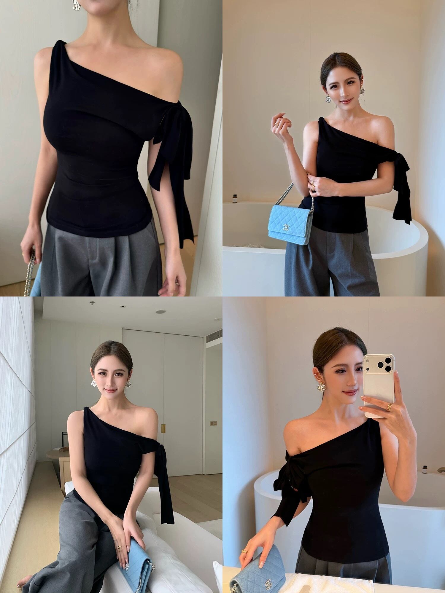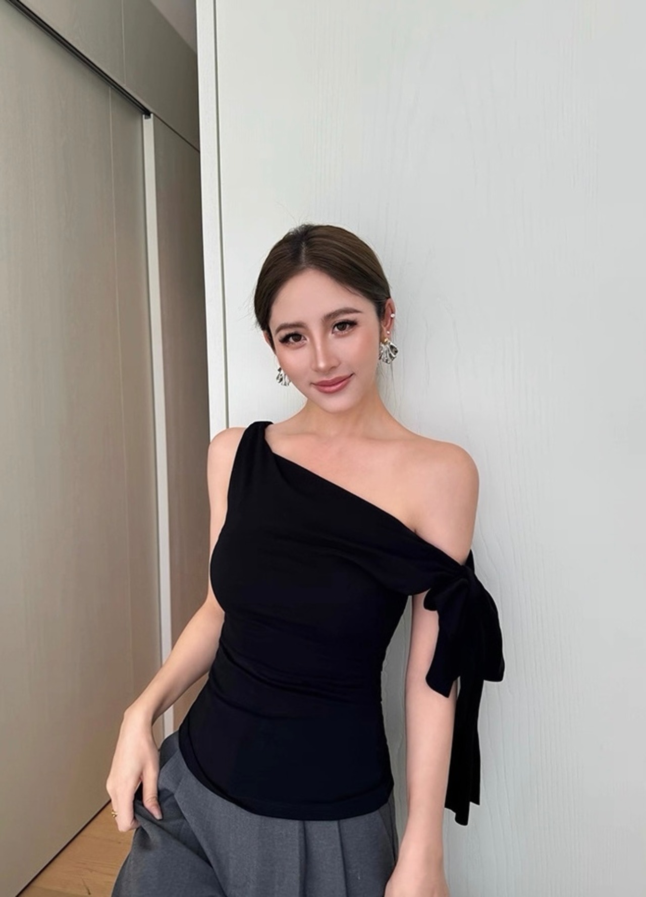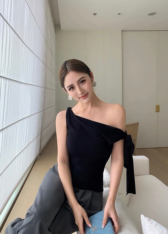 ワンショルダーサイドリボントップス