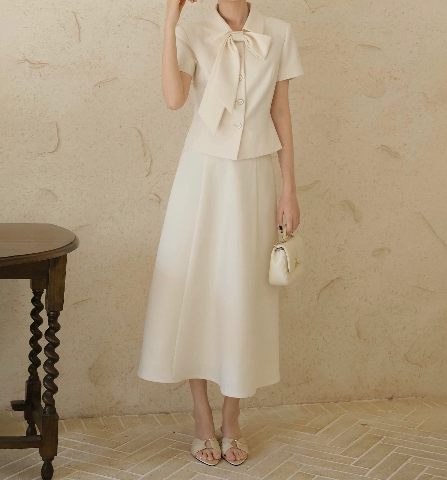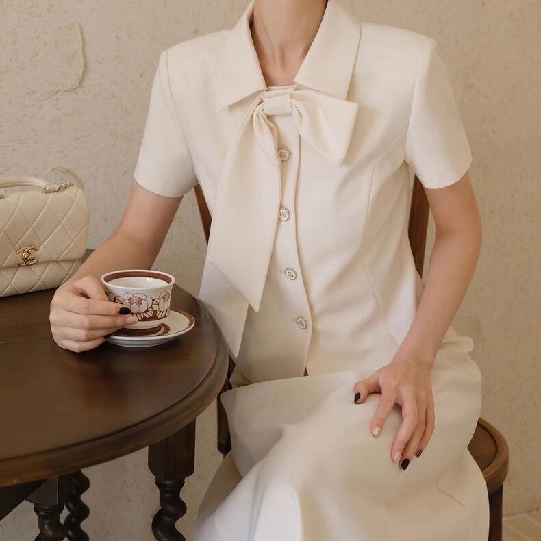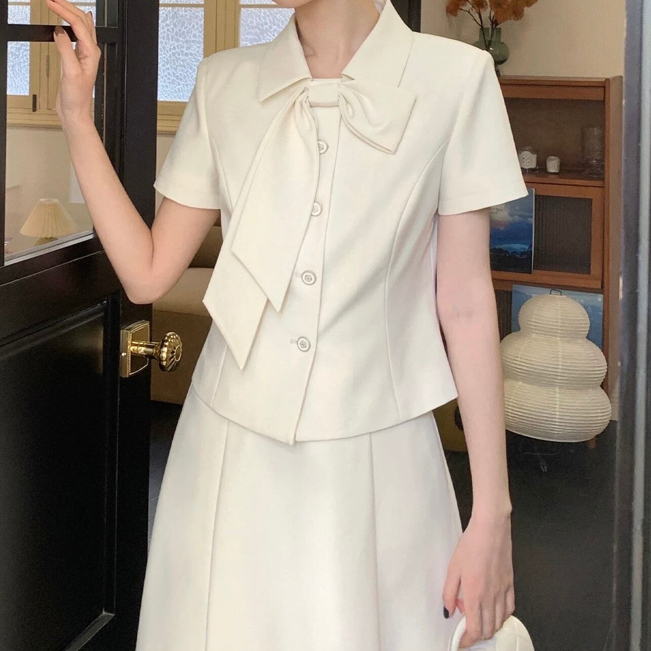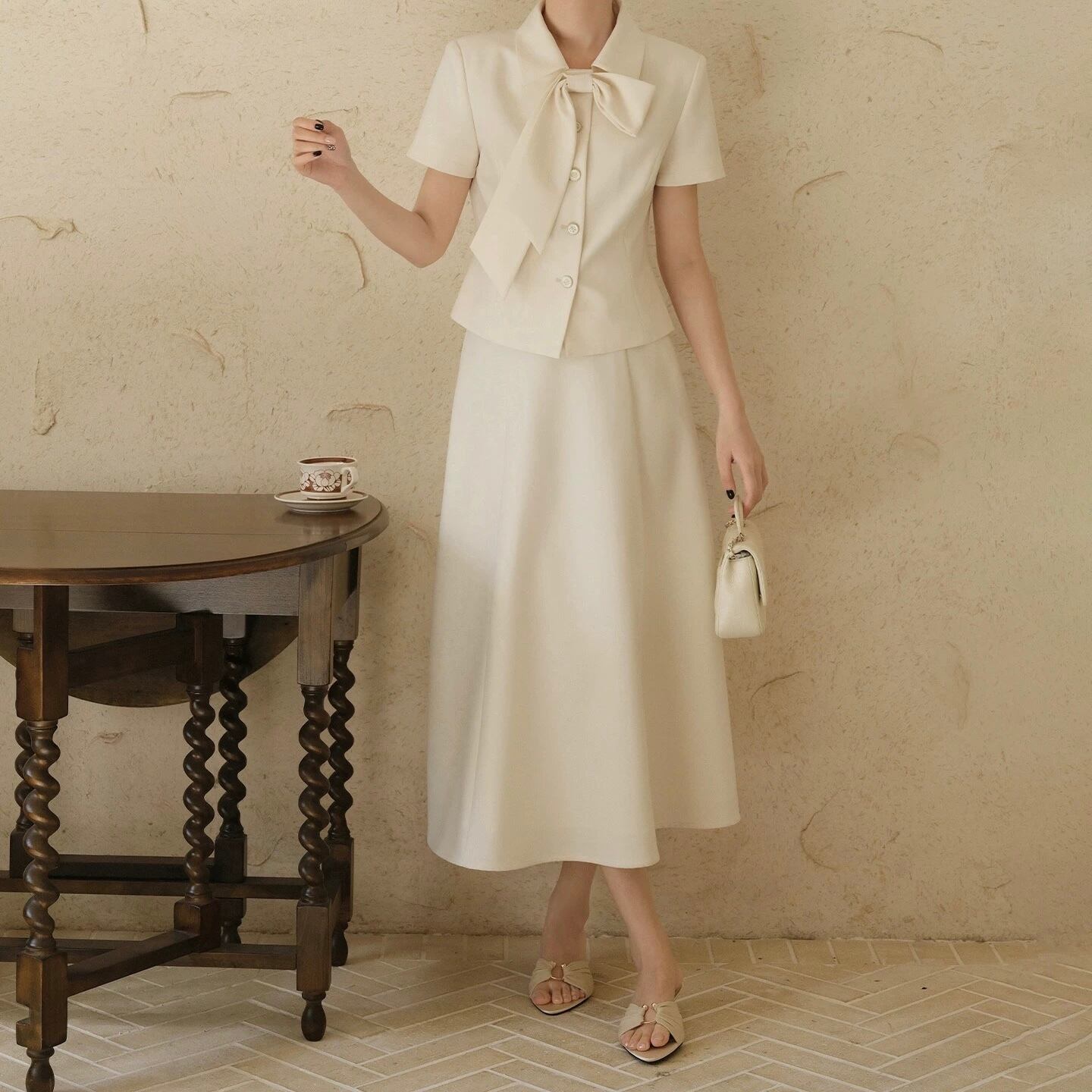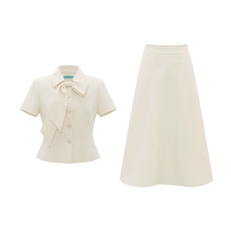 襟リボンスカートセットアップ