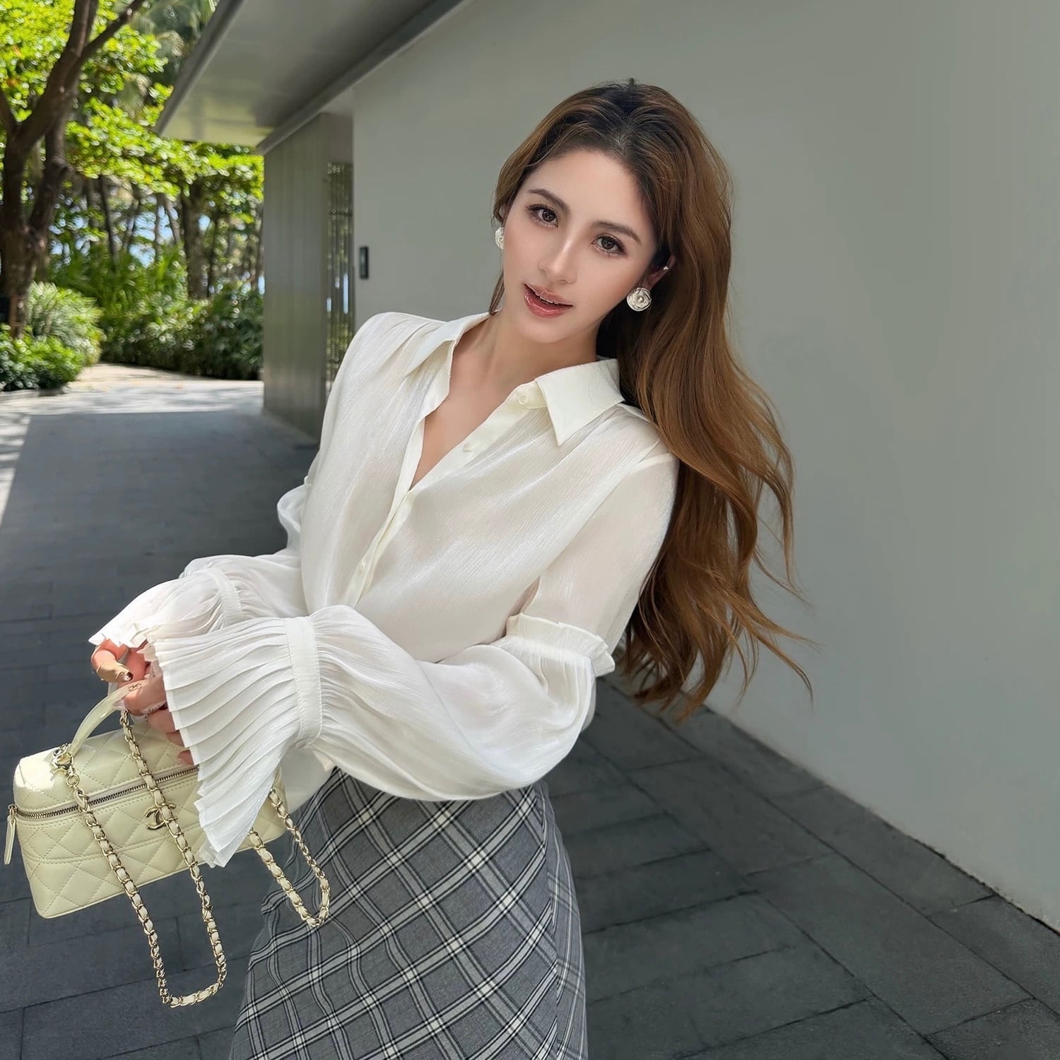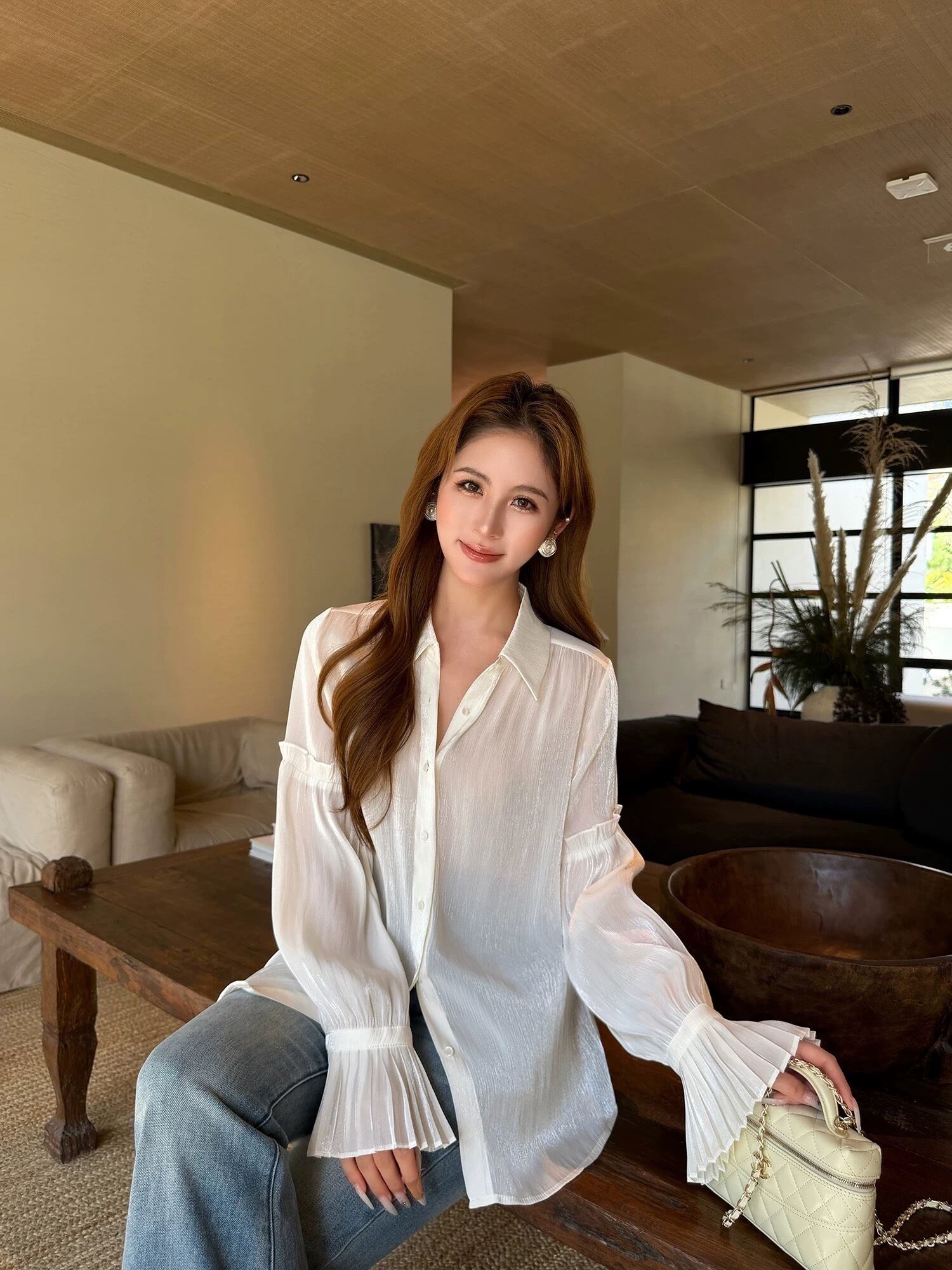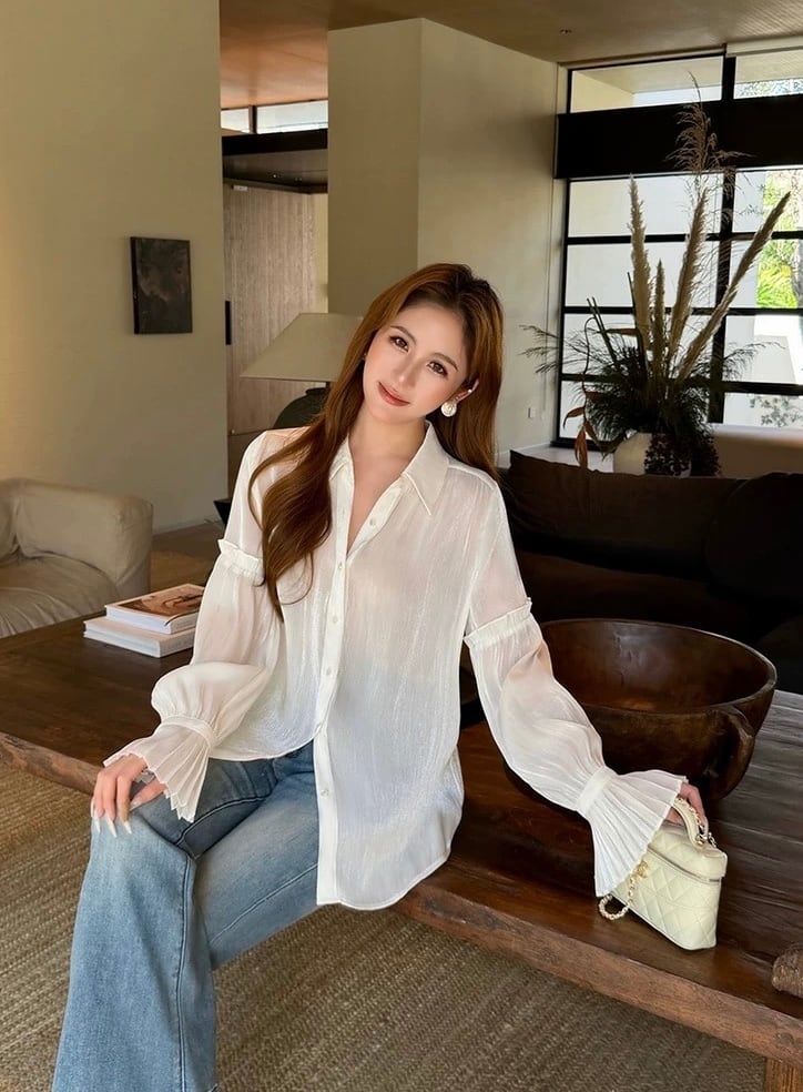 ランタンスリーブプリーツブラウス