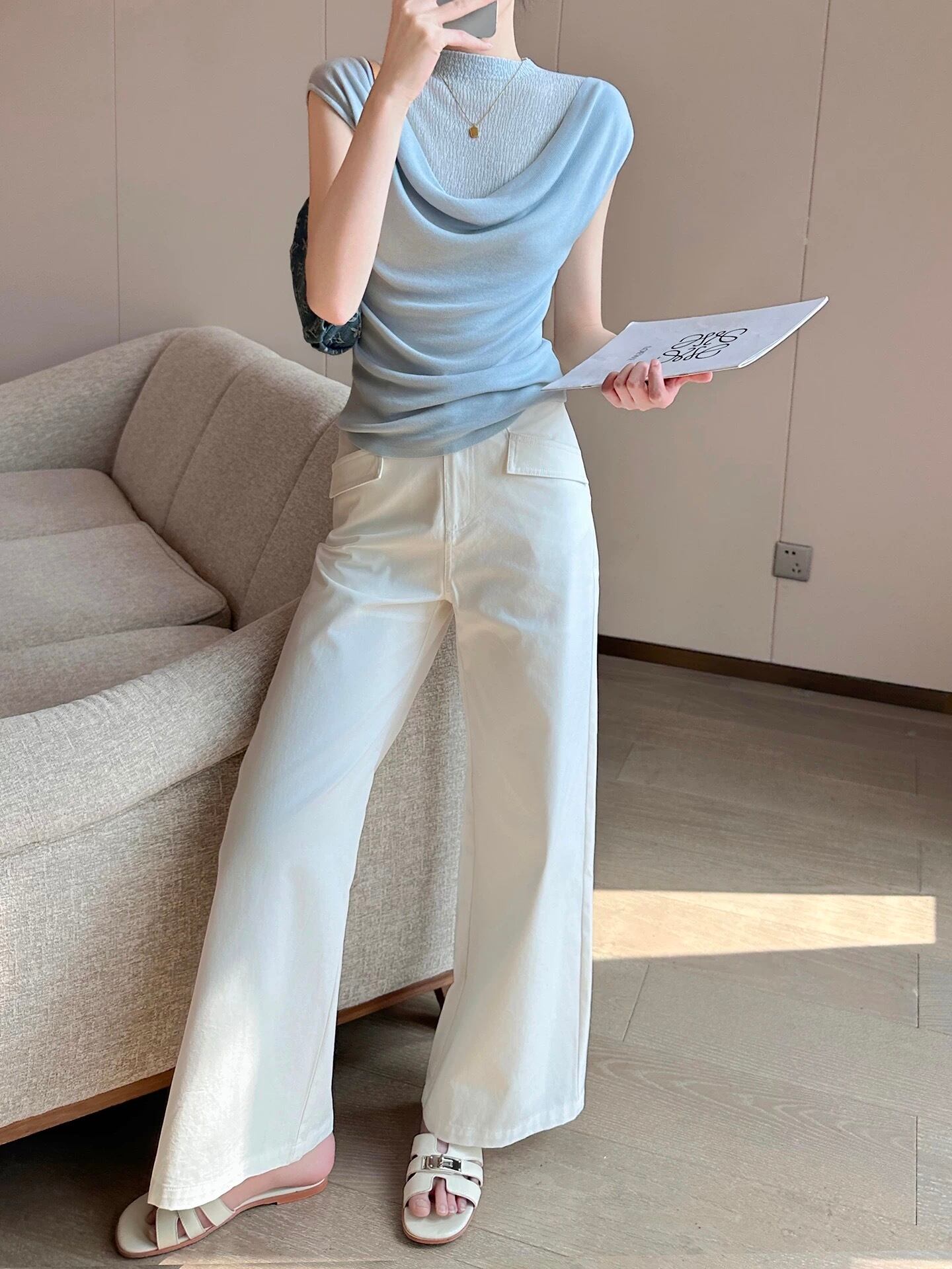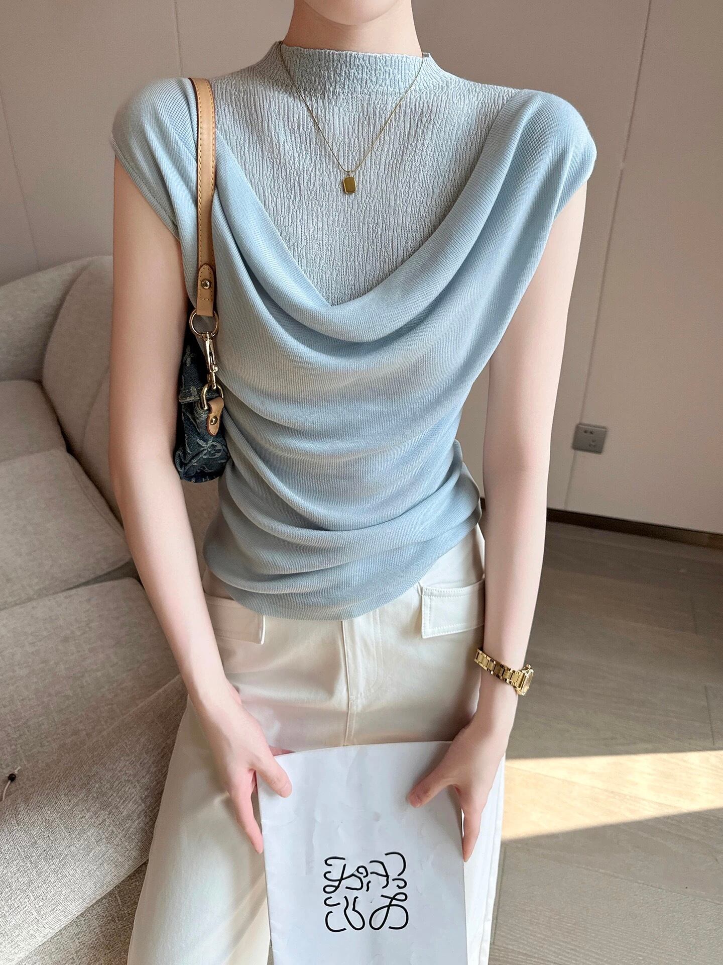 ドレープクラシックブルートップス