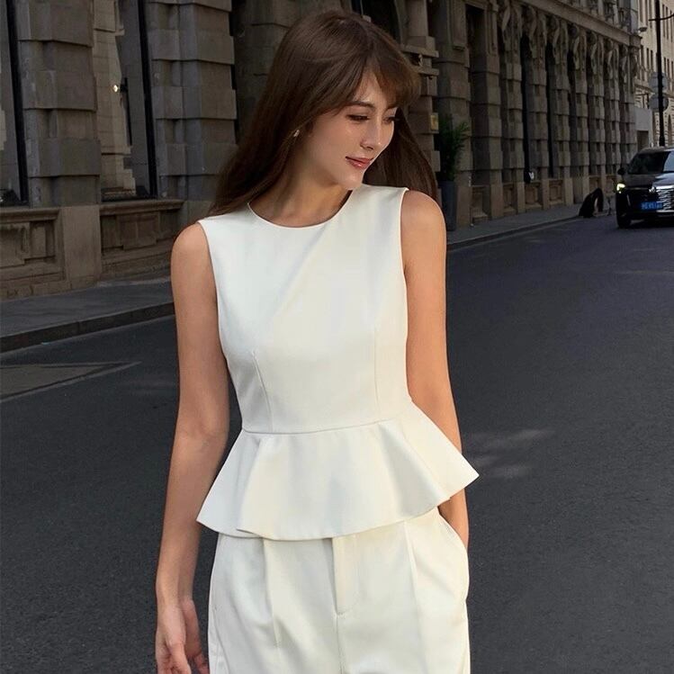 ペプラムトップス&トラウザーセットアップ