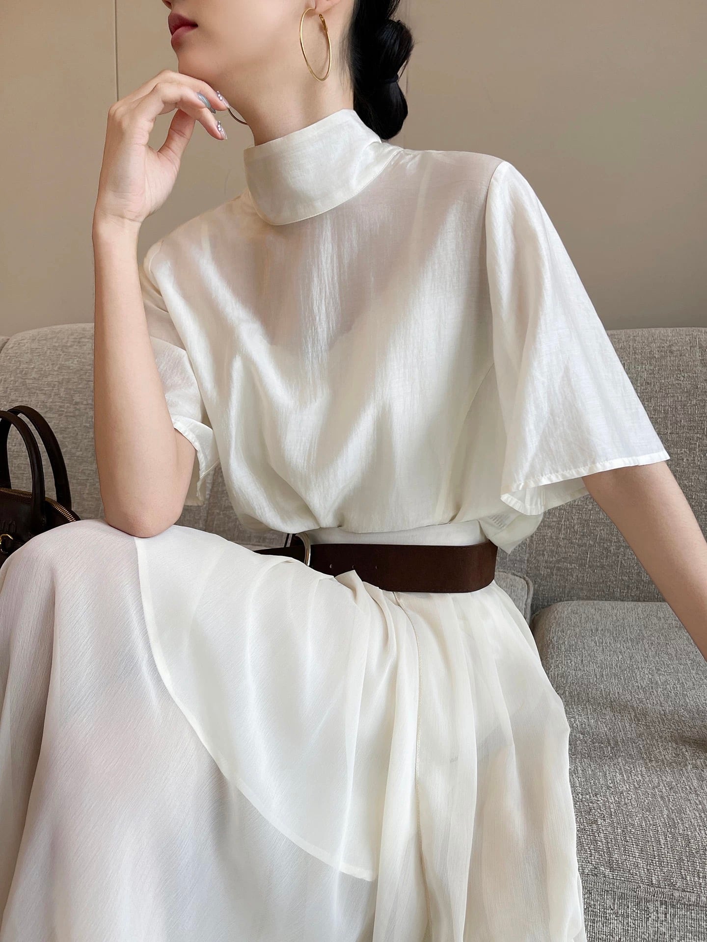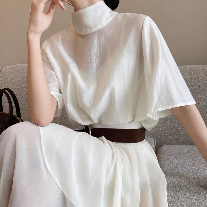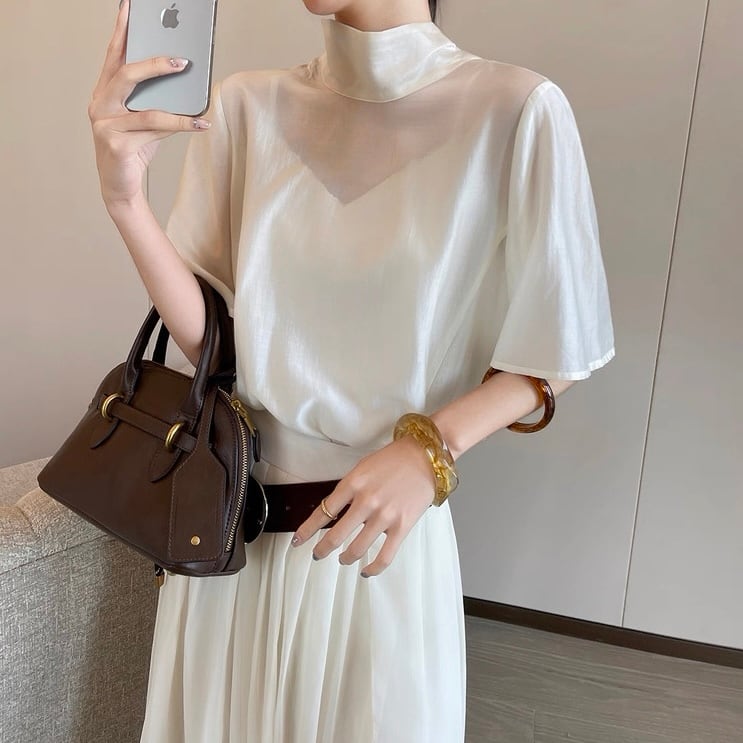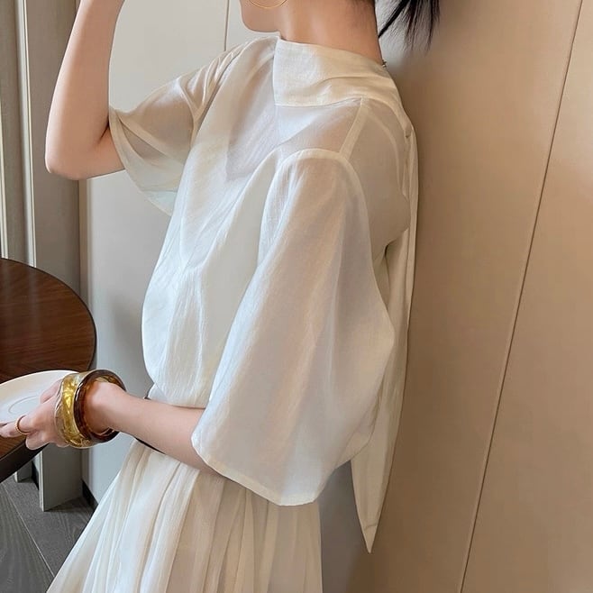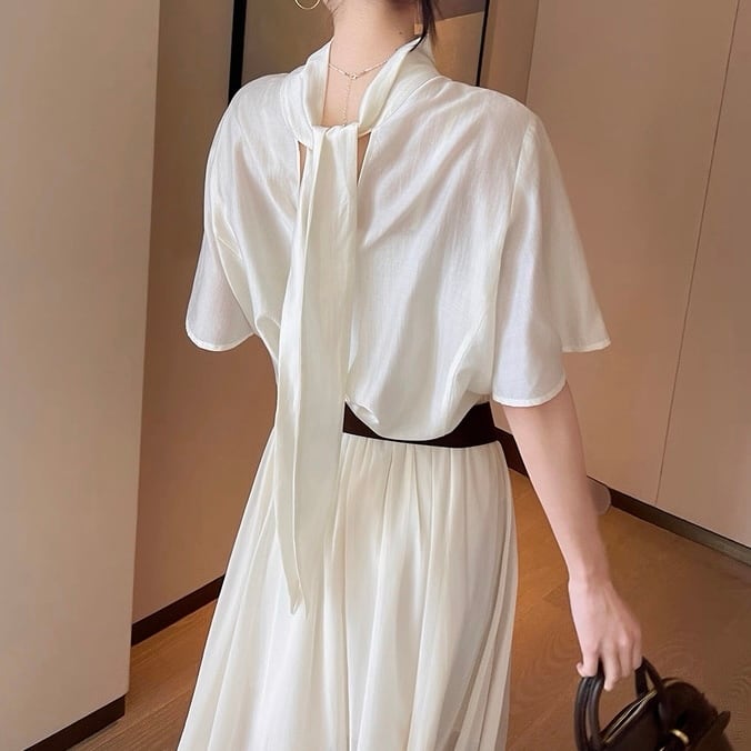 バックボウタイハーフスリーブトップス