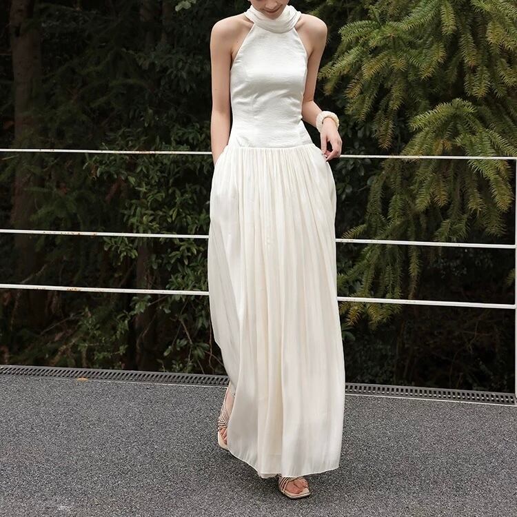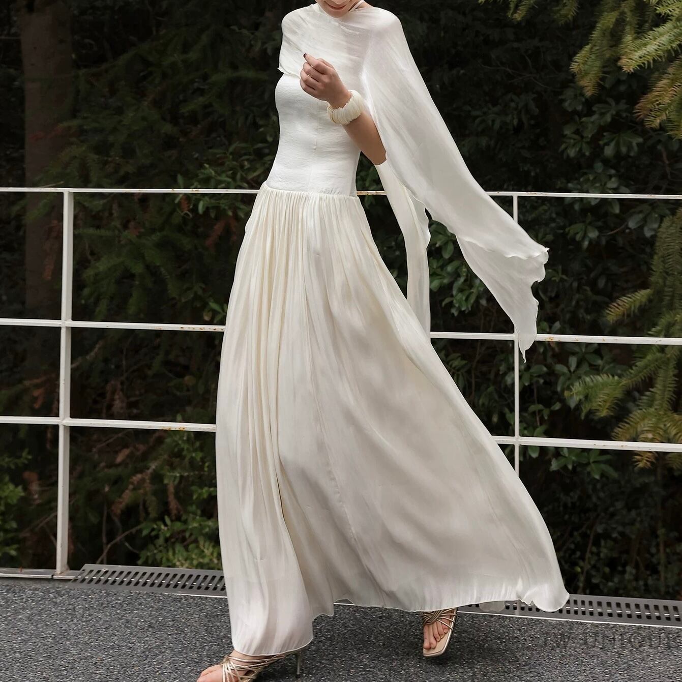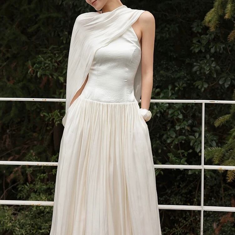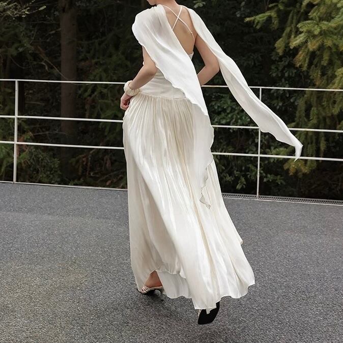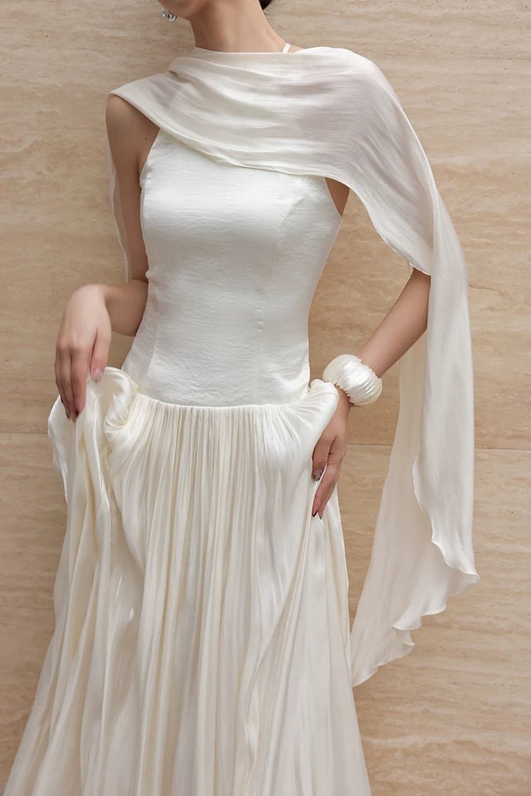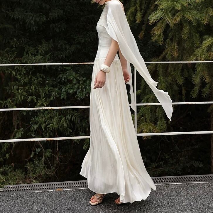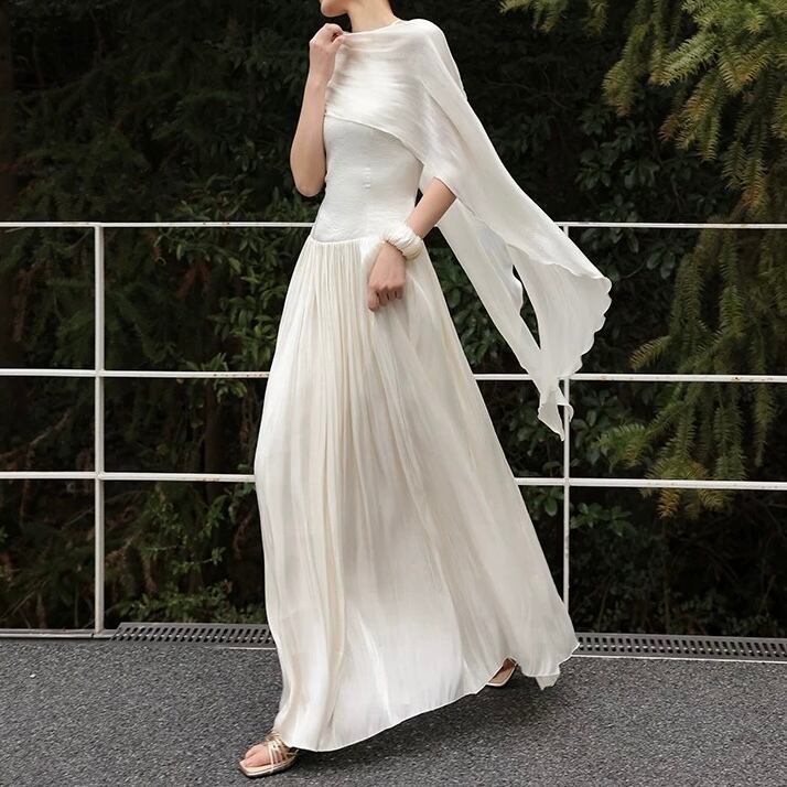 【残りわずか】ドラマティックスカーフドレープロングフレアワンピース