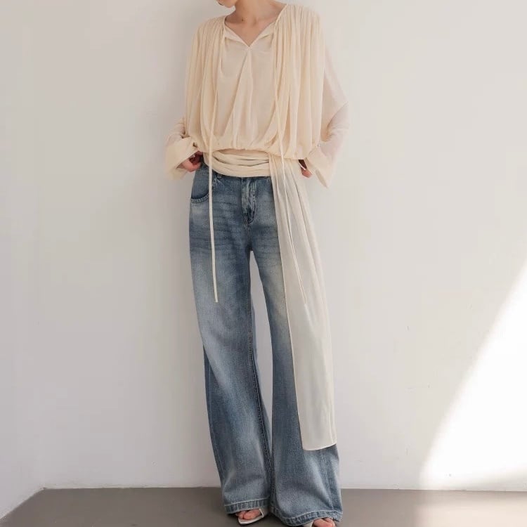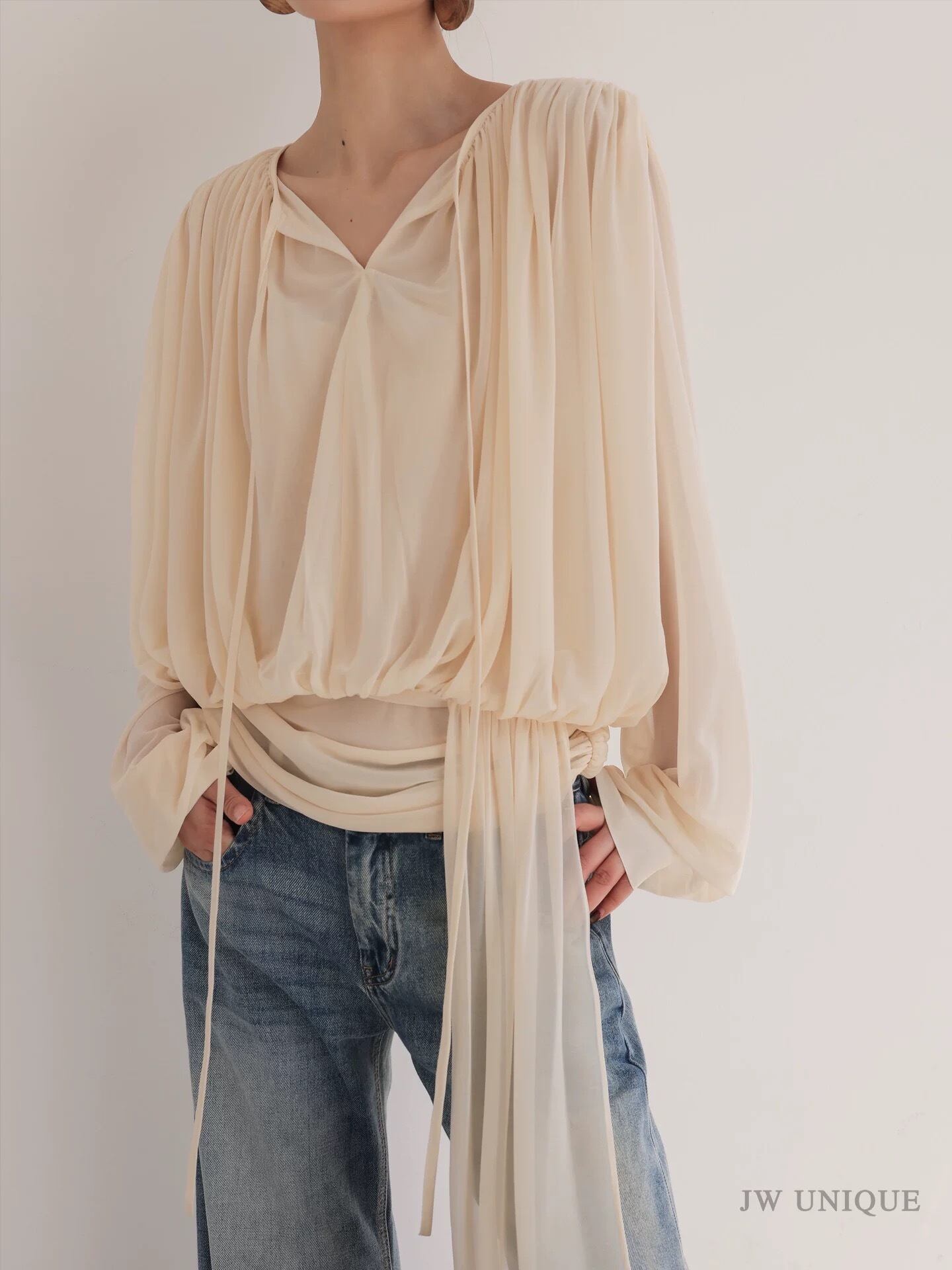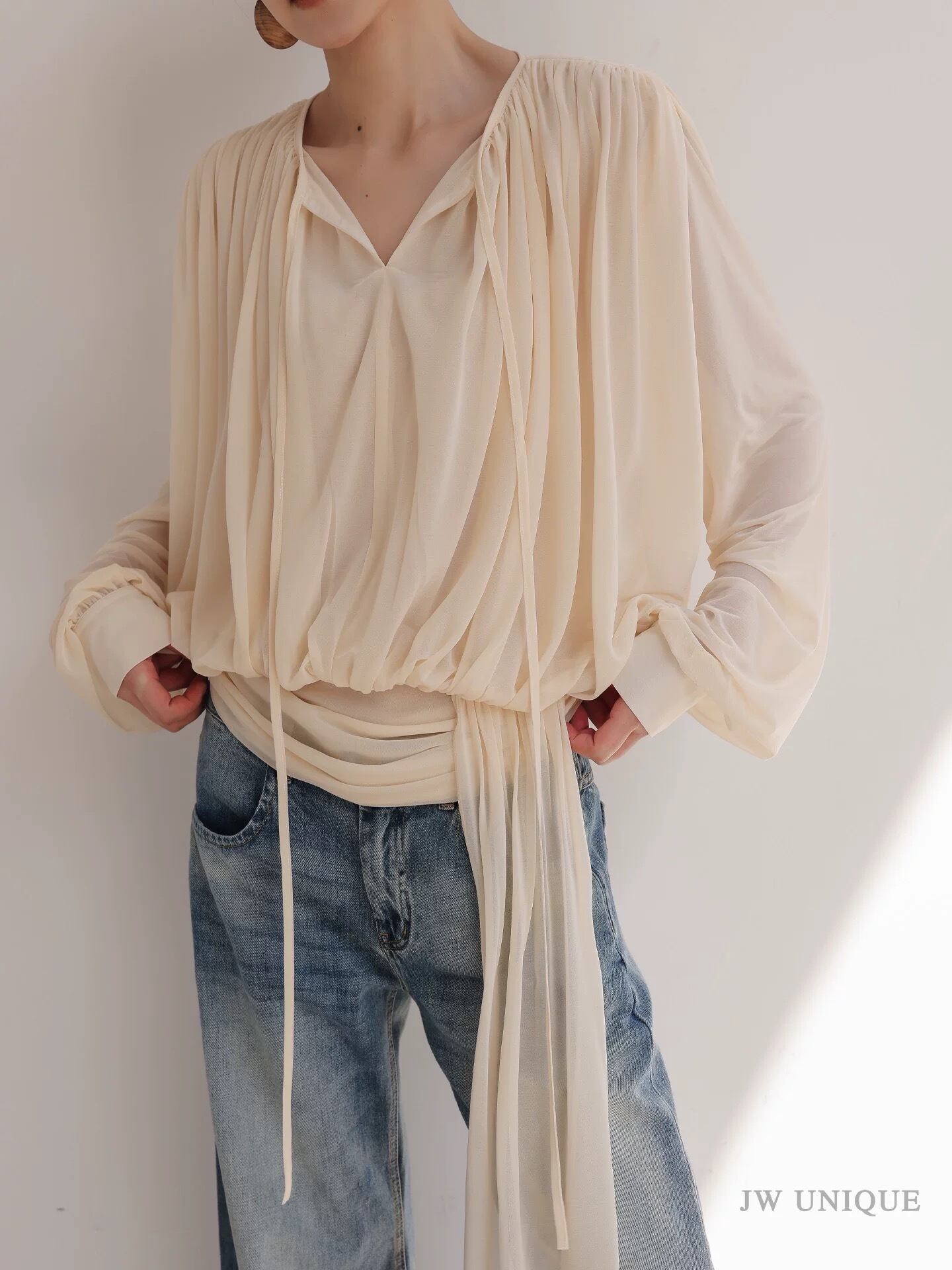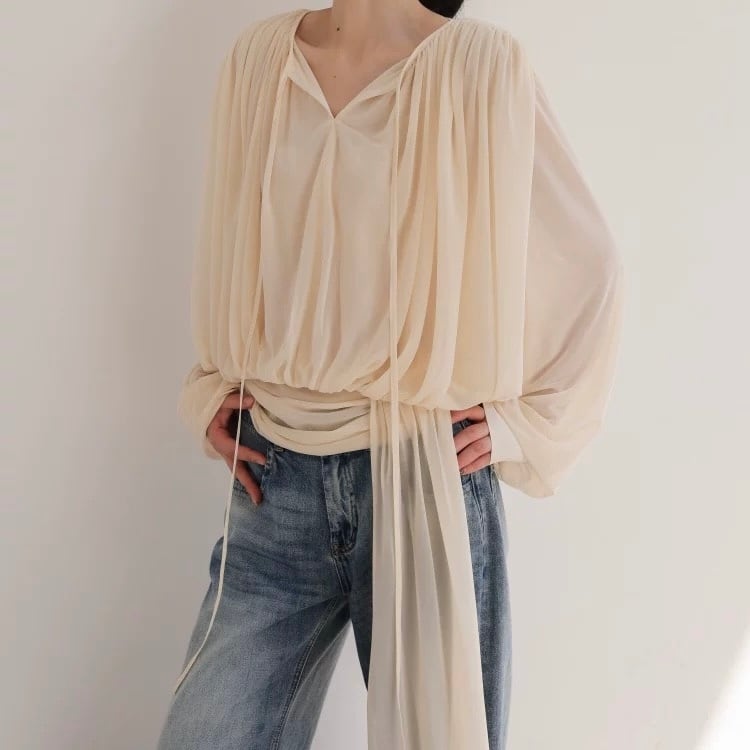 ボウタイドレープブラウス