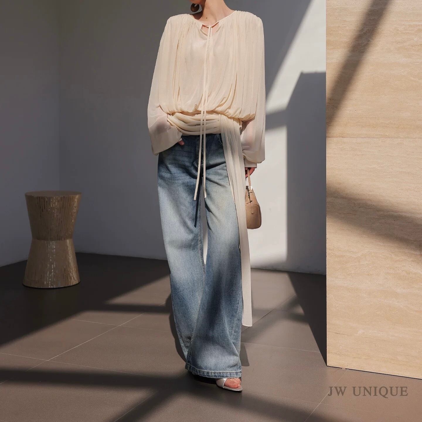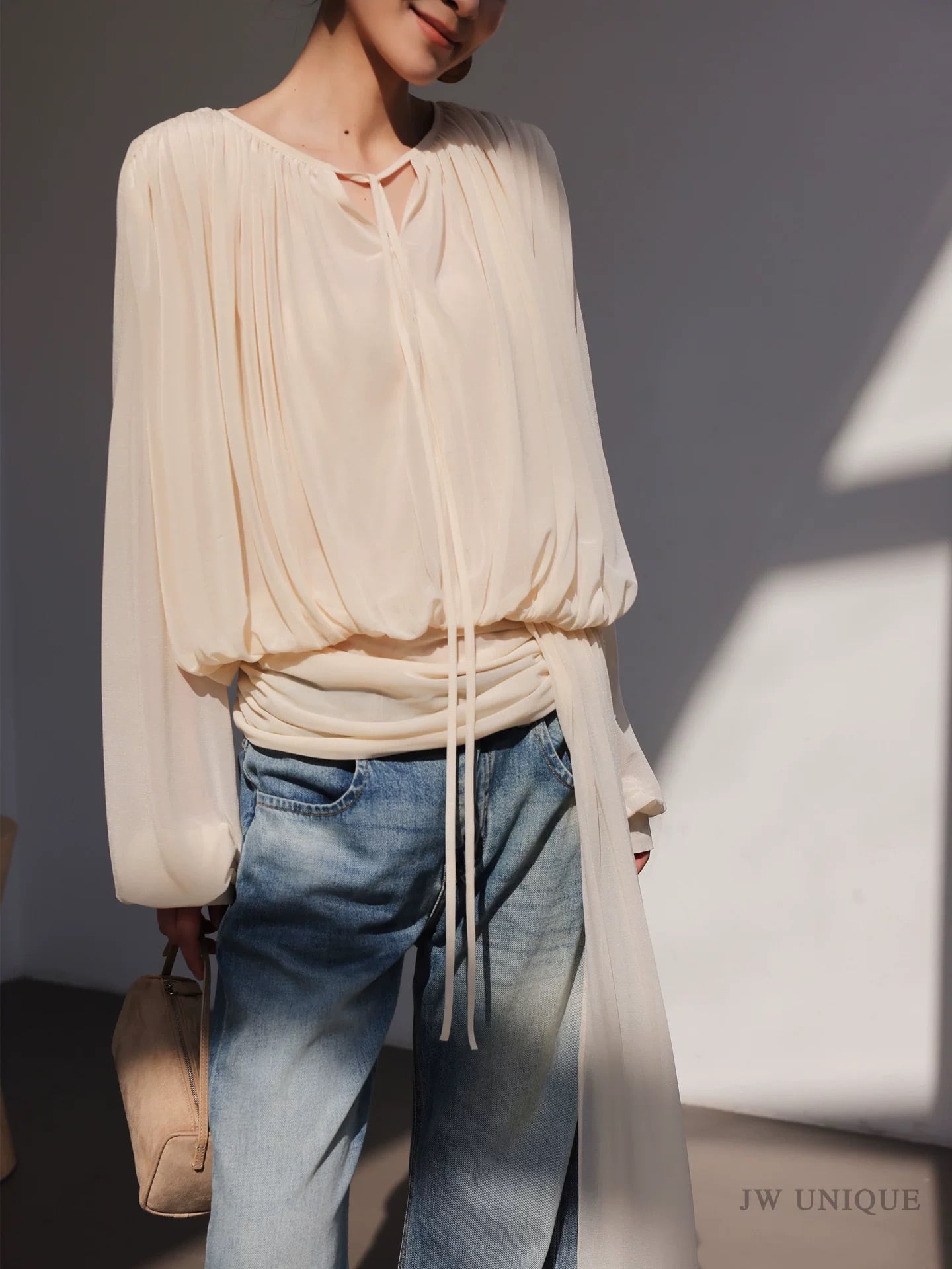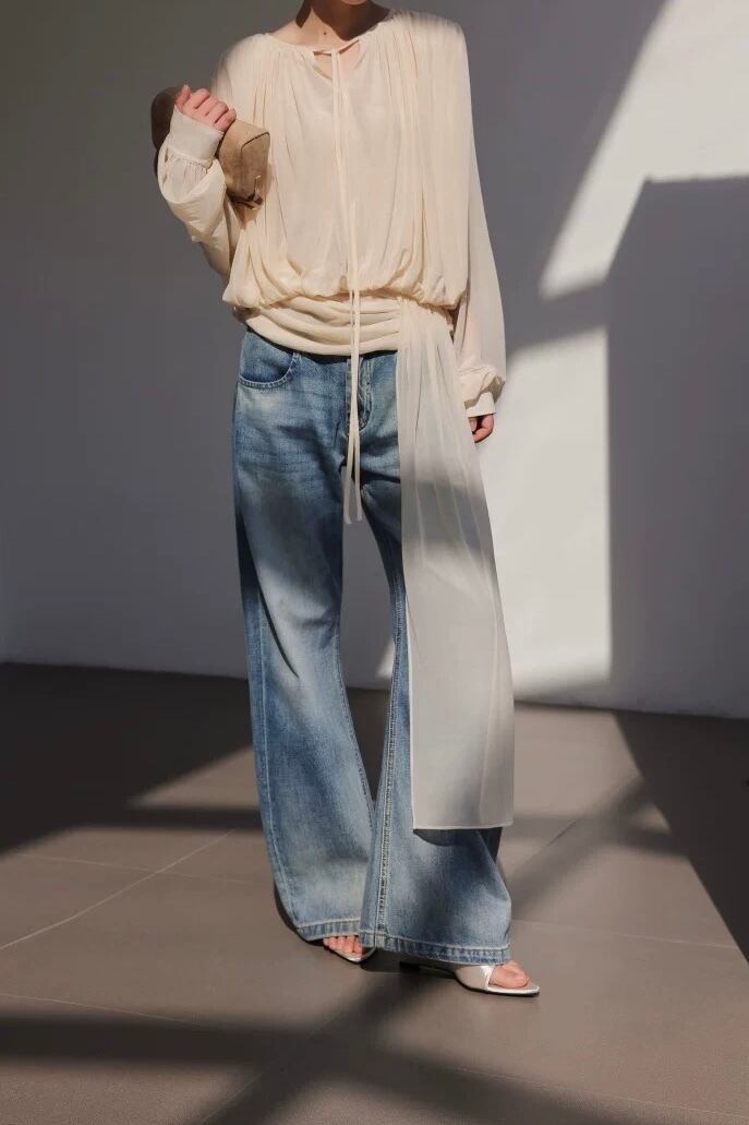 ボウタイドレープブラウス