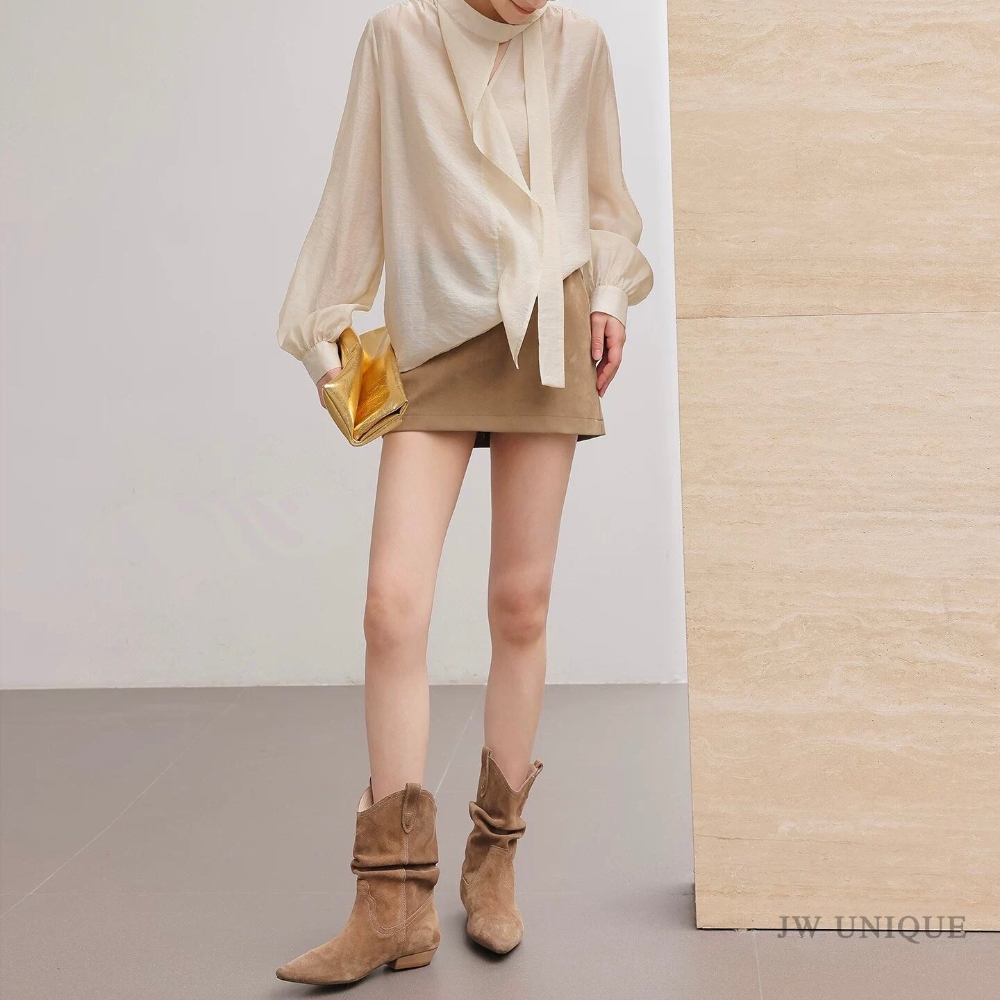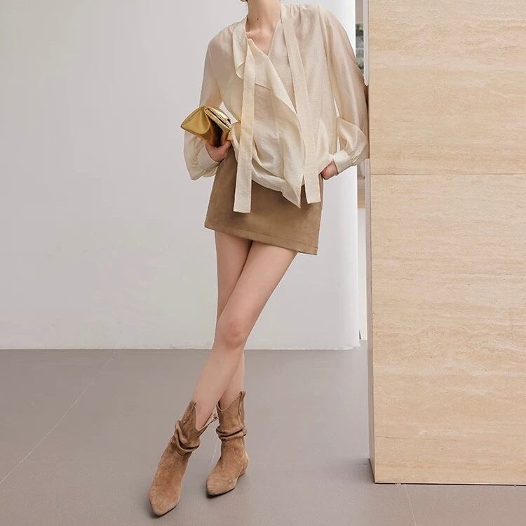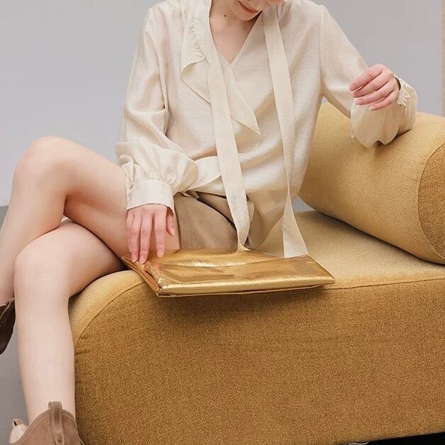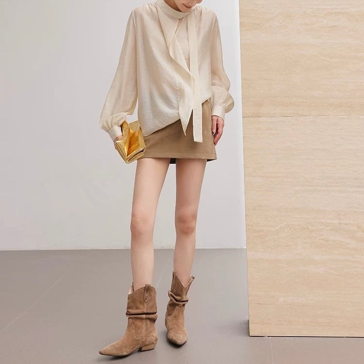 ボウタイシンプルフリルクリームブラウス