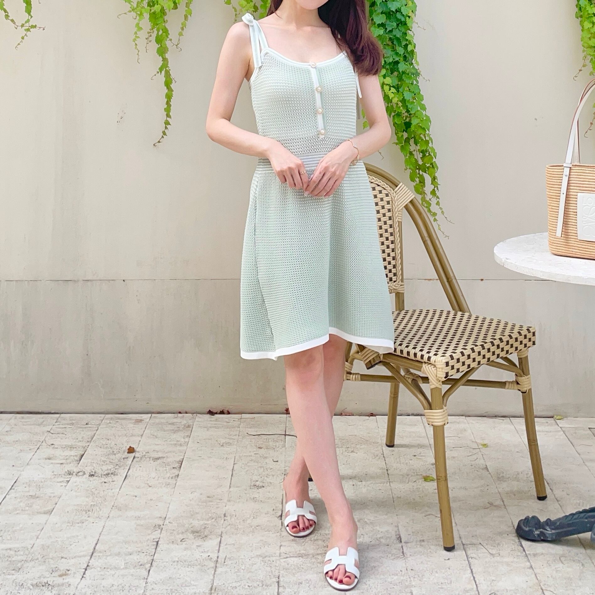 サマーニットグリーンワンピース