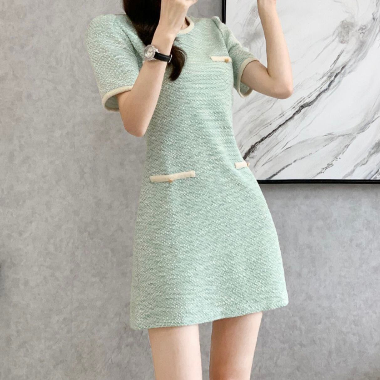 グリーンバイカラーミニワンピース