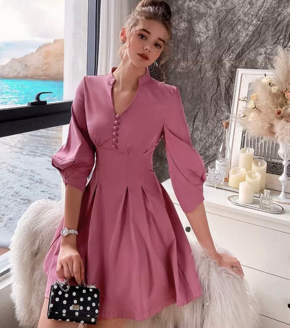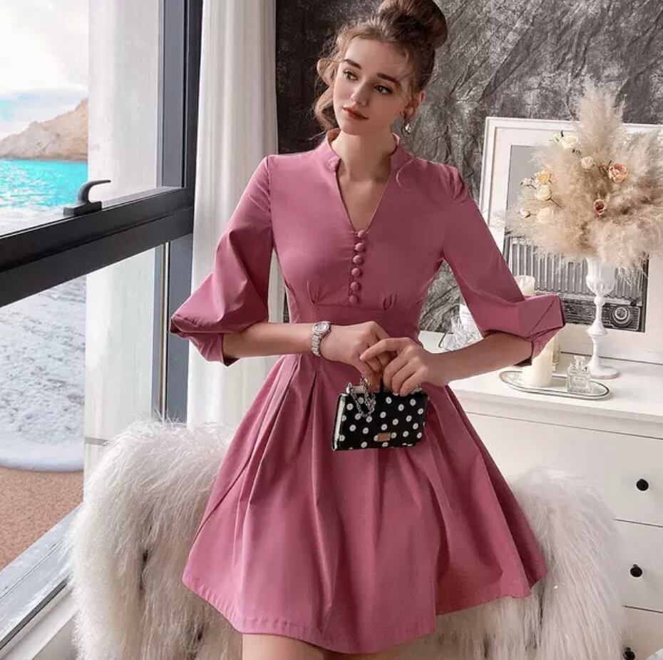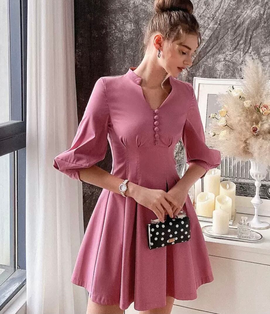 【残りSのみ】バルーンスリーブローズフレアワンピース