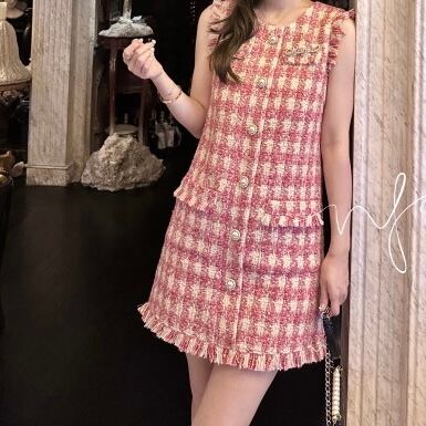 【S完売残りわずか】ノースリーブピンクチェックワンピース
