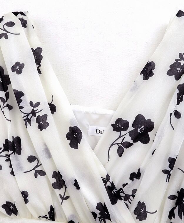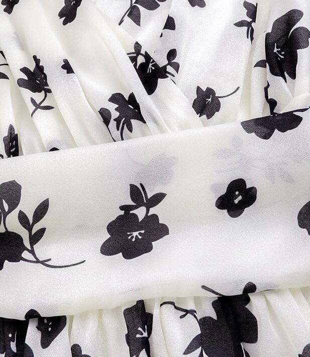 モノトーン フラワー カシュクール フレア ワンピース
