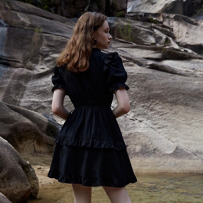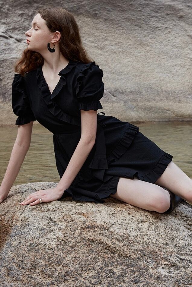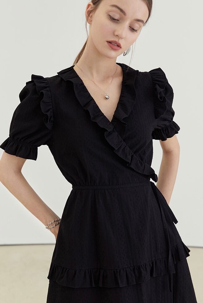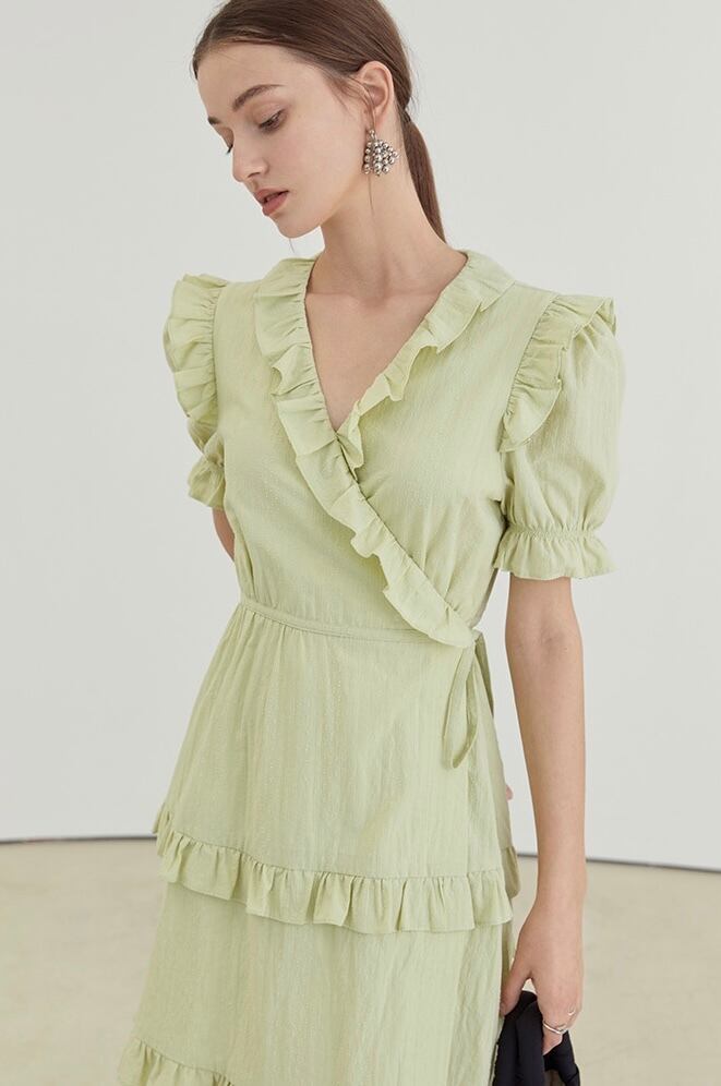 Vネック フリル ラップ ワンピース