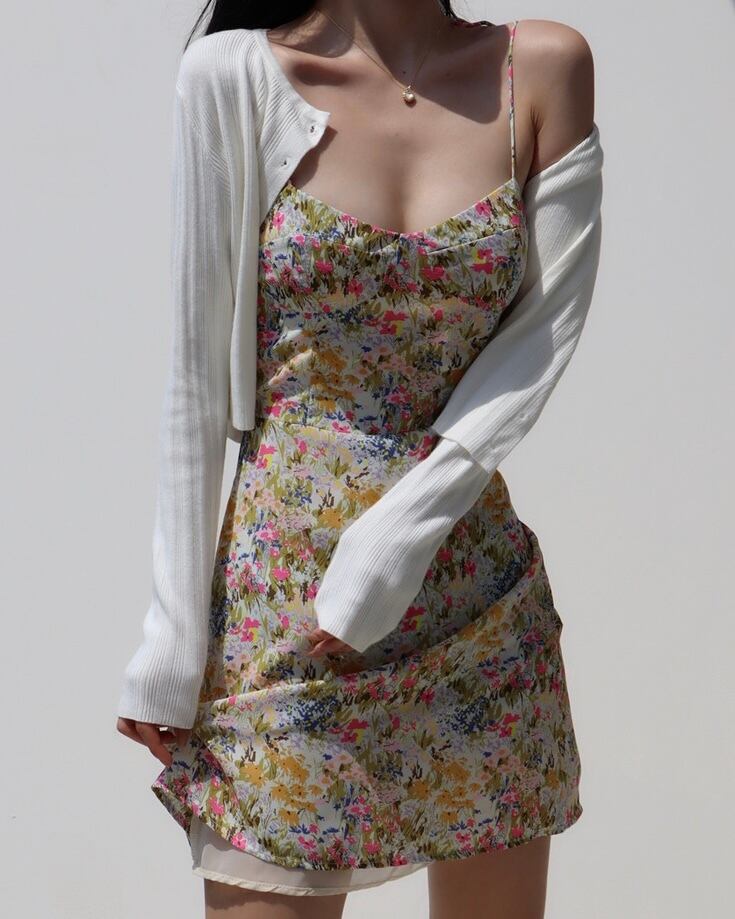 ショルダーリボンボタニカルキャミミニワンピース