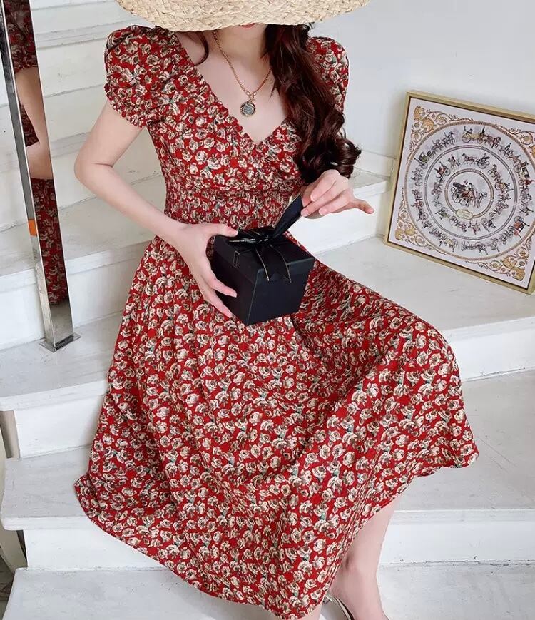 【数量限定】フレンチ ローズ レッド フレア ワンピース