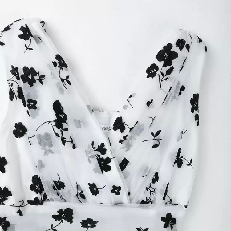 【数量限定】モノトーン フラワー チュール カシュクール ワンピース