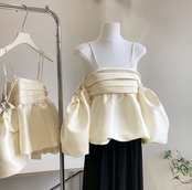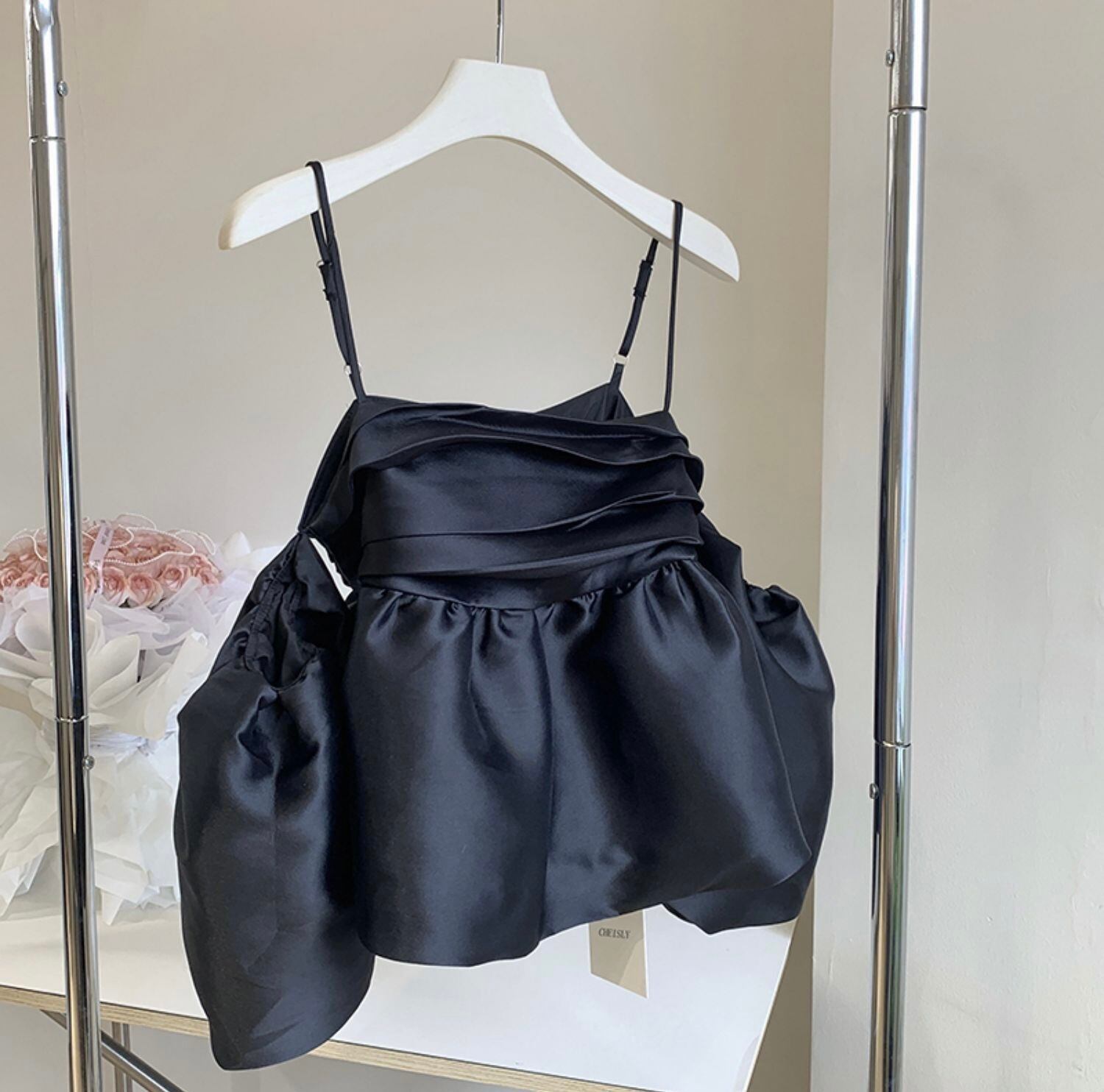 【肩紐調節可】オフショルダーランタンスリーブフレアトップス