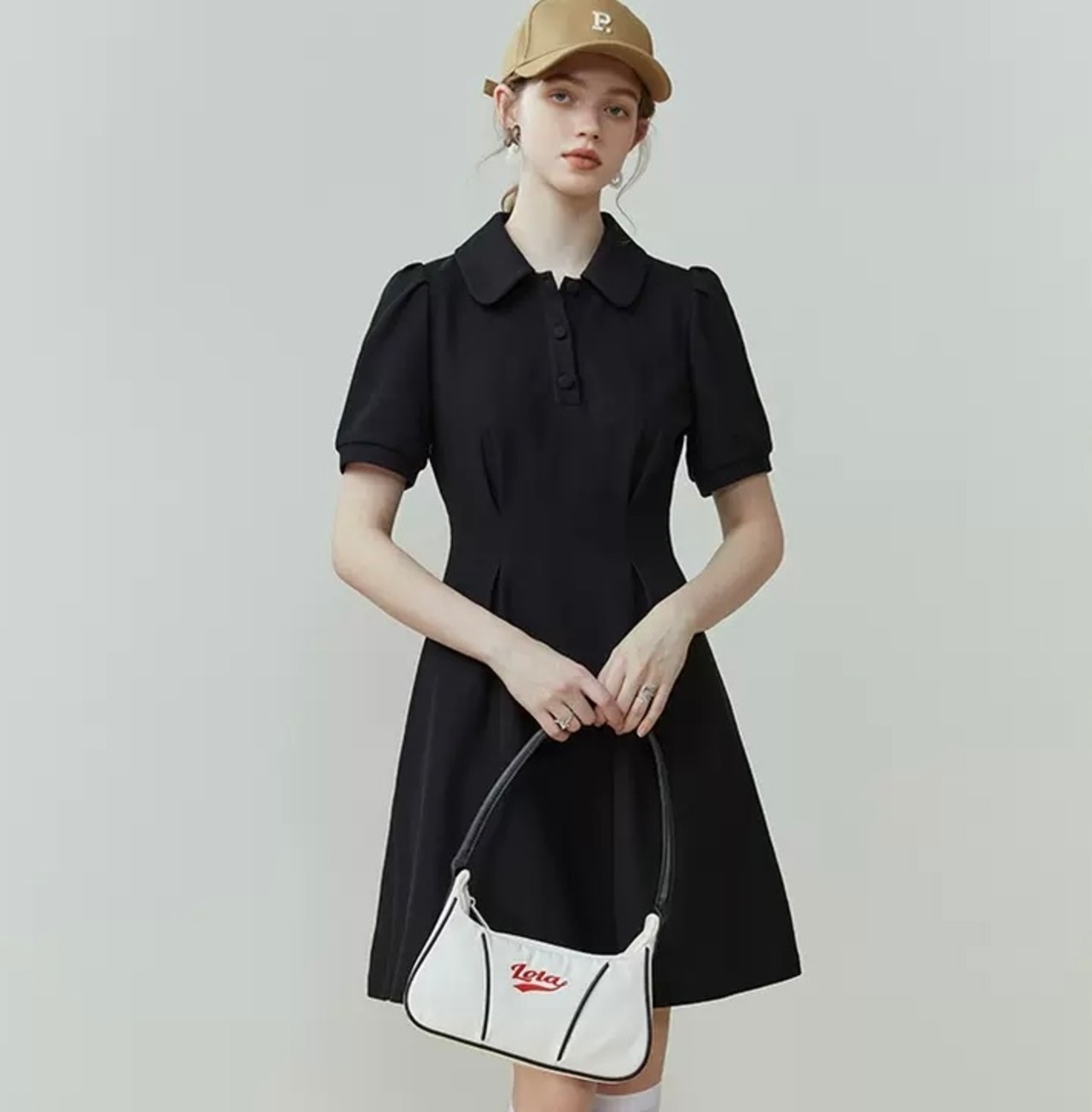 パフスリーブフレンチポロタックワンピース(ミディ/ロング)
