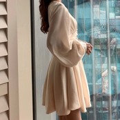 プリーツスカートとエアリーな袖のデザインが女性らしいスタイルを演出し、魅力的な雰囲気を作り出し、周りの人を魅了する一点です。